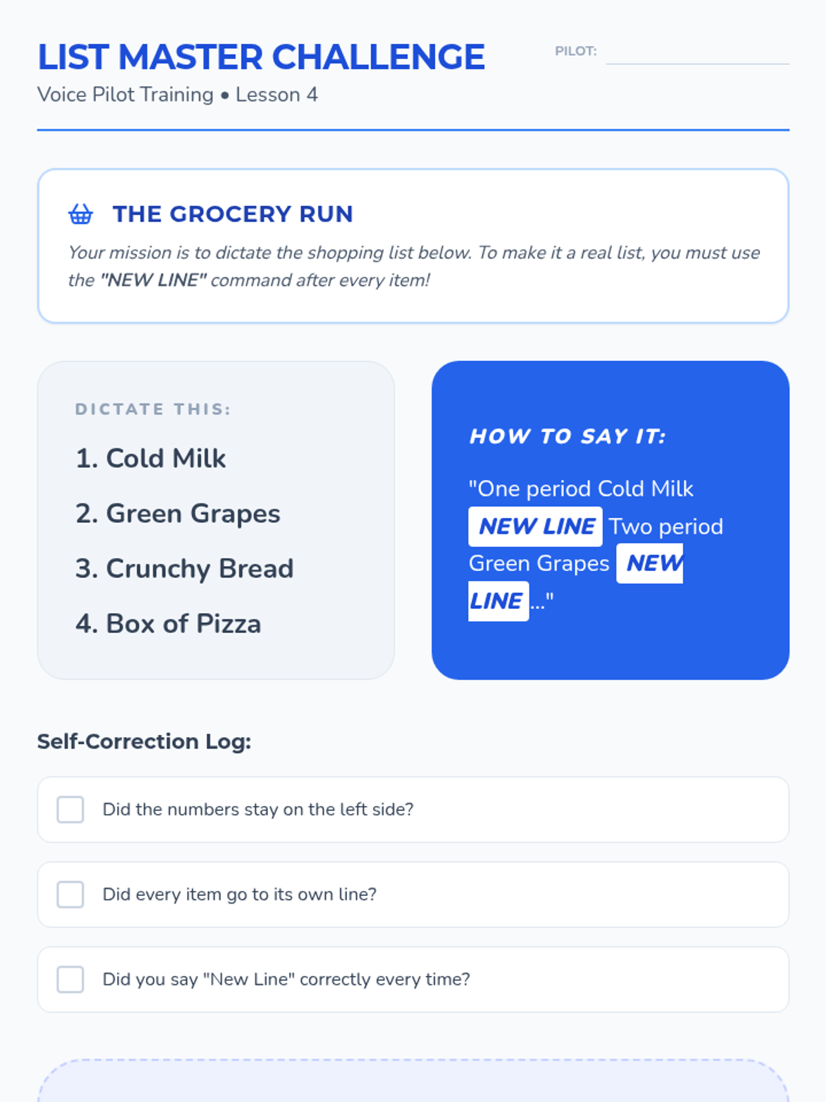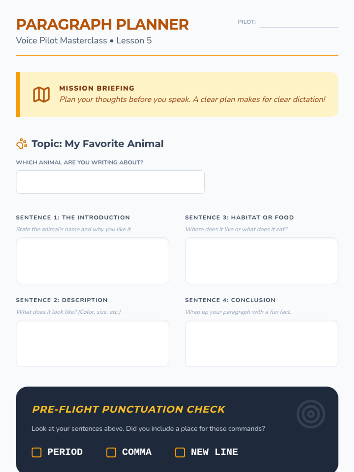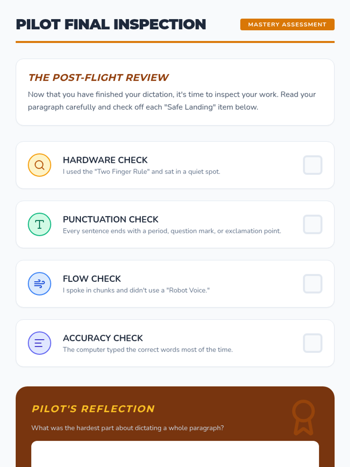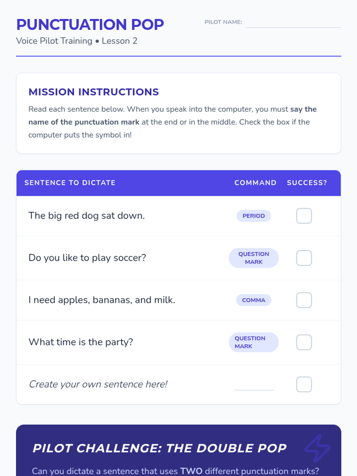 A 4th-grade sequence introducing the fundamental mechanics of speech-to-text technology, focusing on enunciation, punctuation commands, and document formatting. Students progress from basic hardware setup to dictating a complete, formatted paragraph.