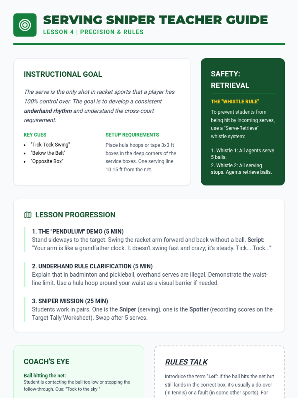 A comprehensive 4th-grade physical education unit focusing on fundamental racket sport mechanics, including grips, forehand and backhand strokes, footwork, and tactical gameplay across tennis, badminton, and pickleball contexts.