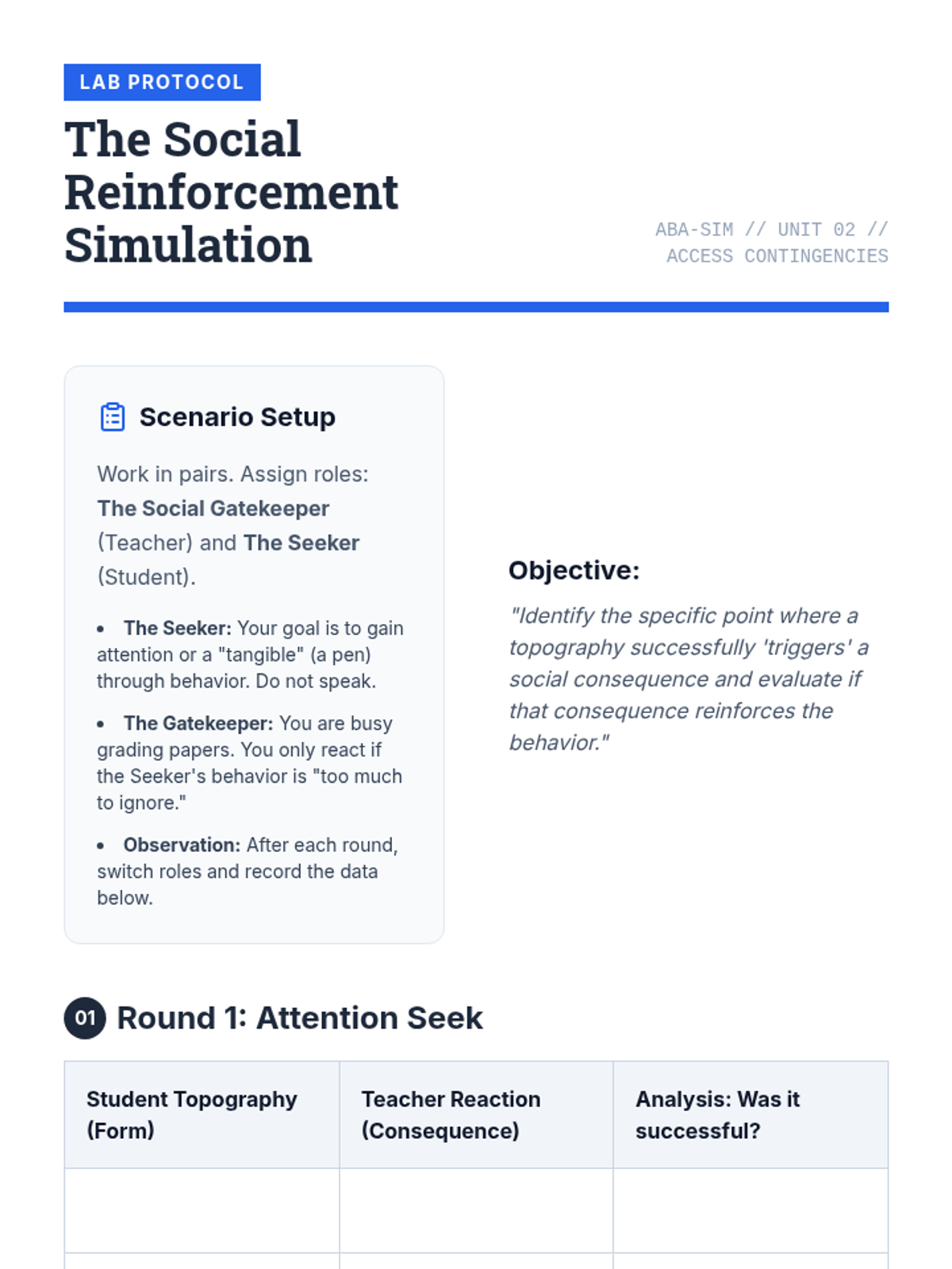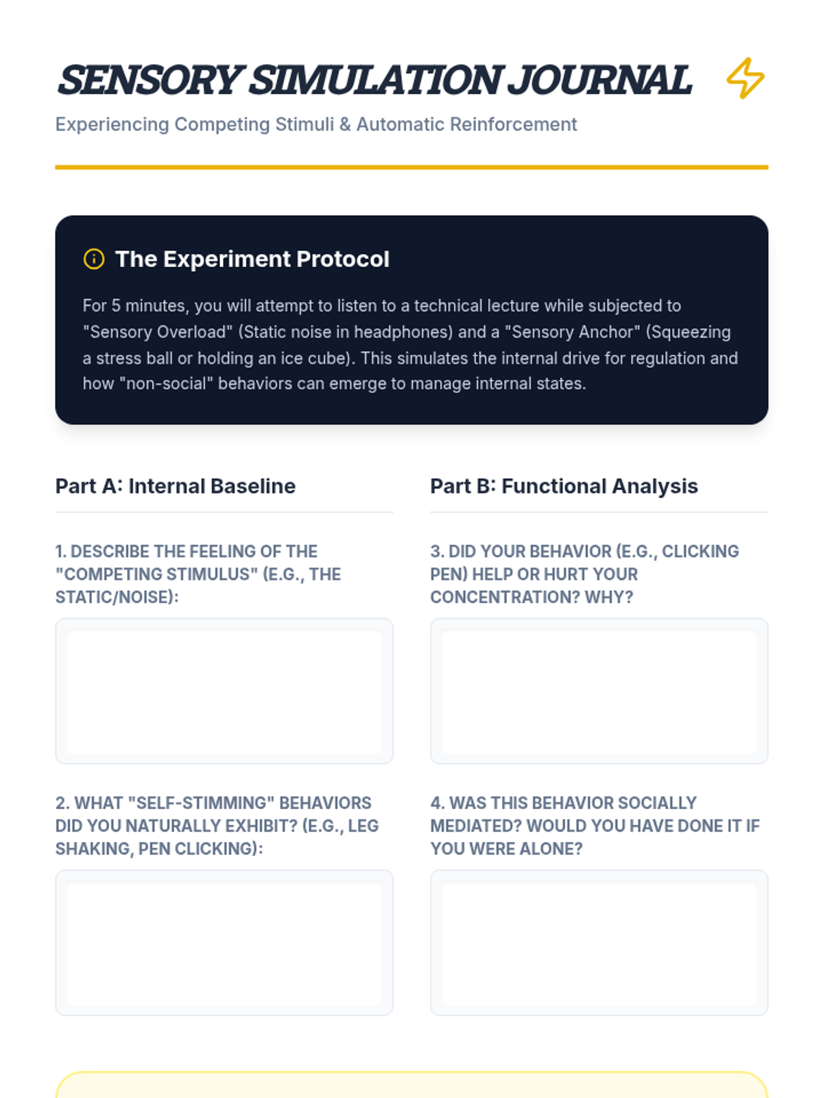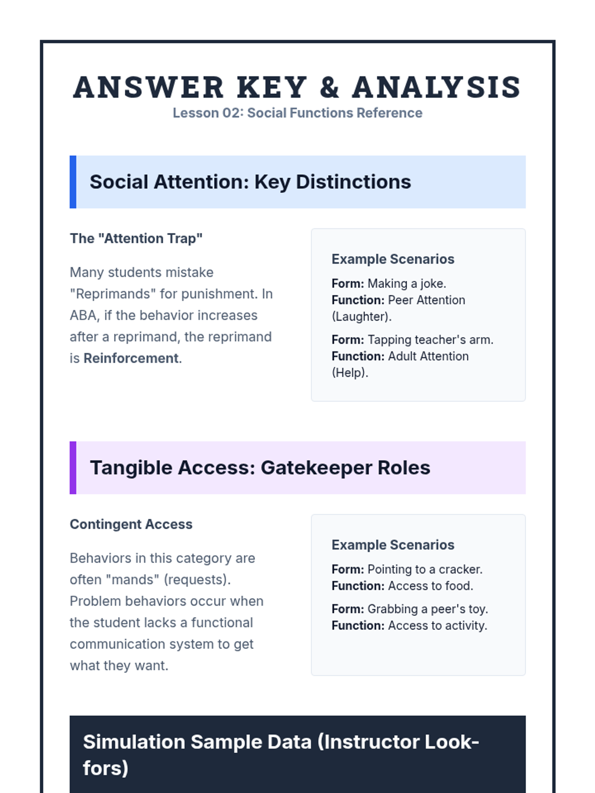 A comprehensive introduction to the four functions of behavior (Sensory, Escape, Attention, Tangible) for undergraduate students, focusing on the distinction between topography and function and the formulation of behavioral hypotheses.