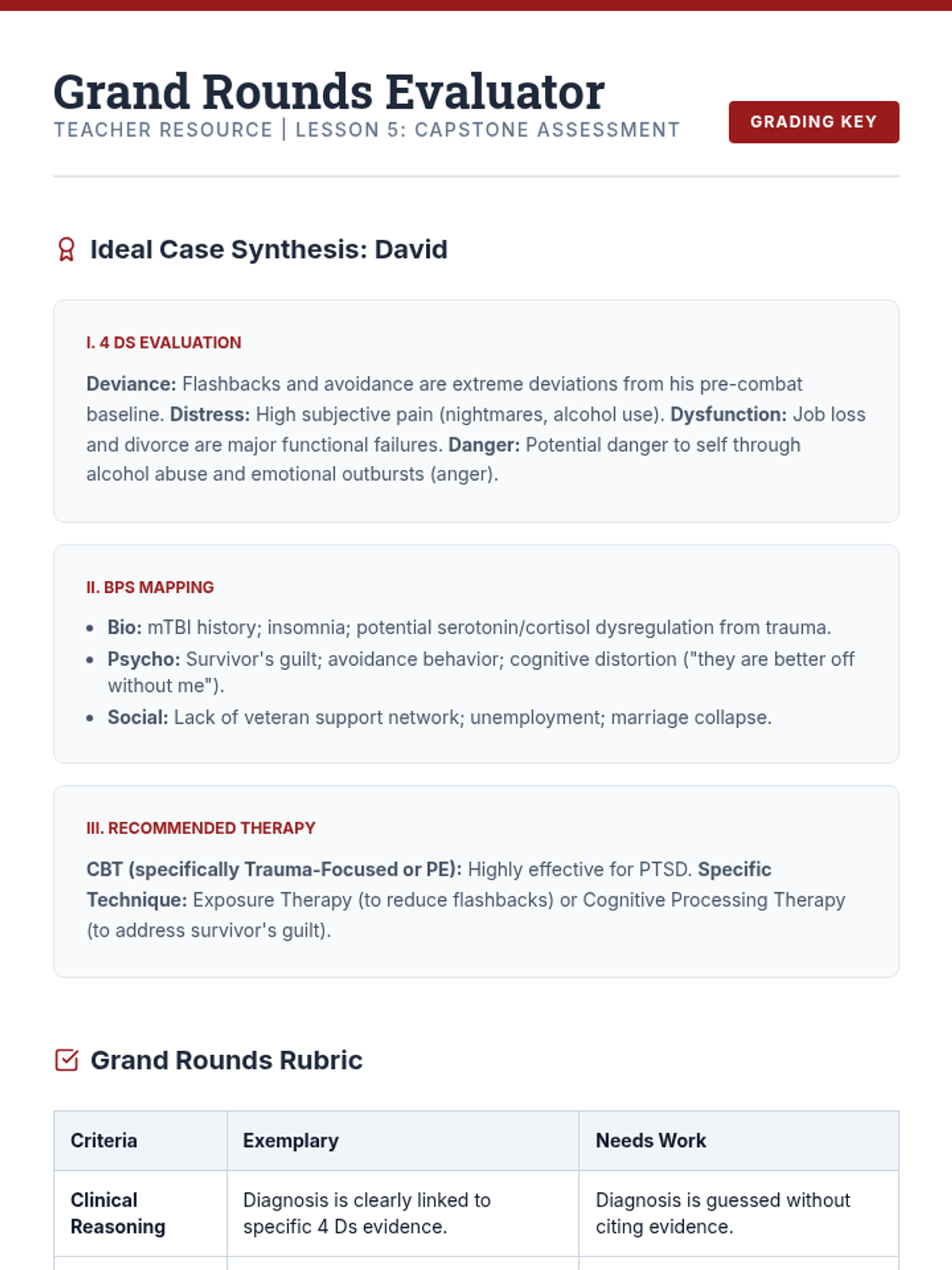 A comprehensive introduction to clinical psychology, guiding 11th-grade students through the diagnostic process, the BioPsychoSocial model of etiology, various therapeutic modalities, and the development of evidence-based treatment plans using complex case studies.