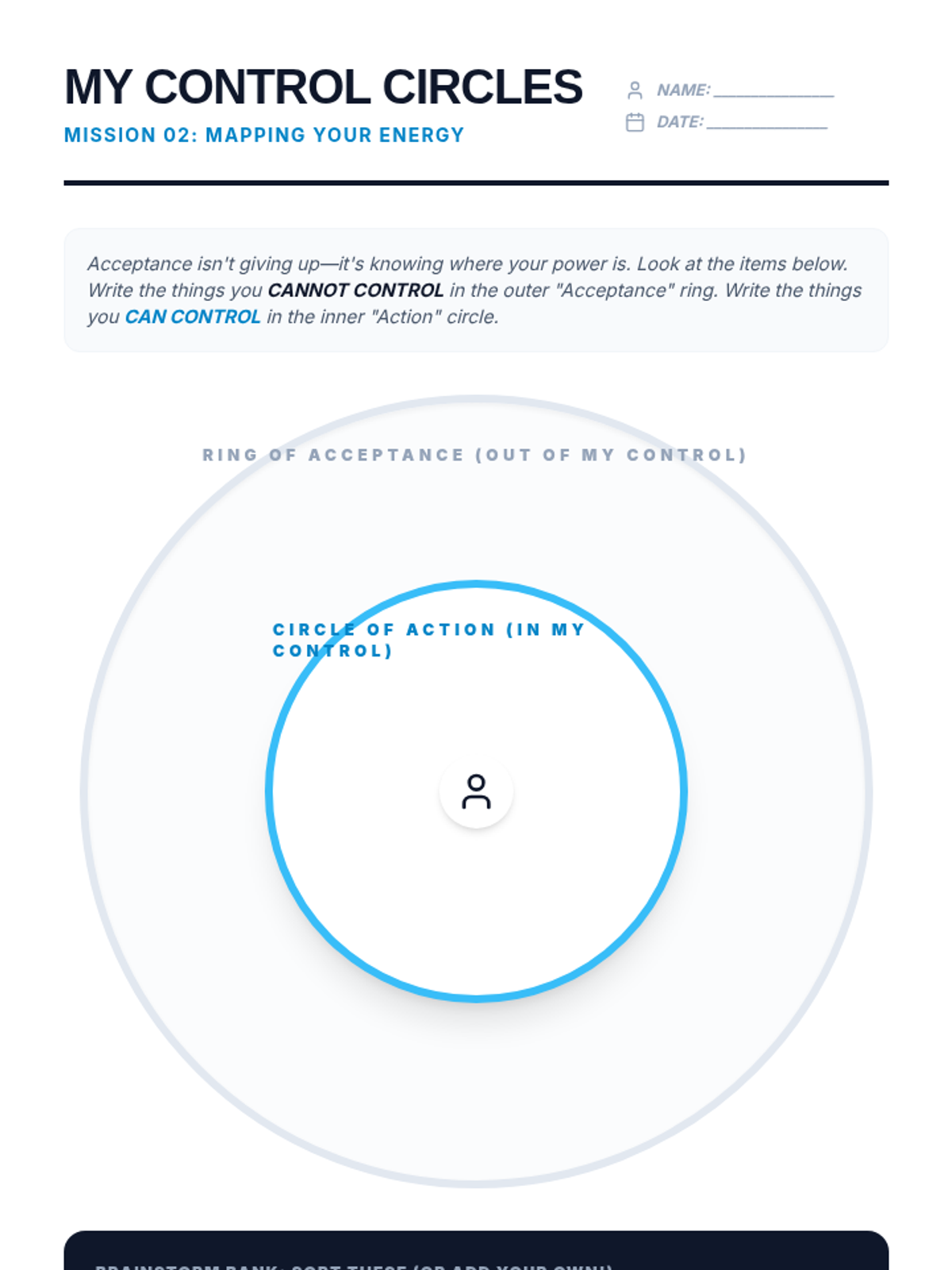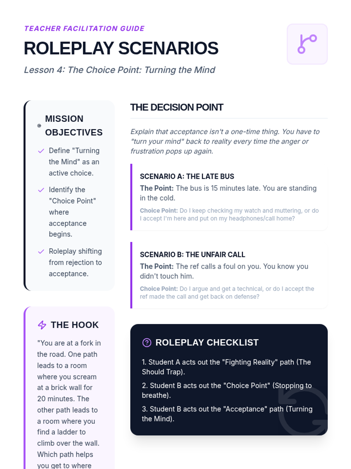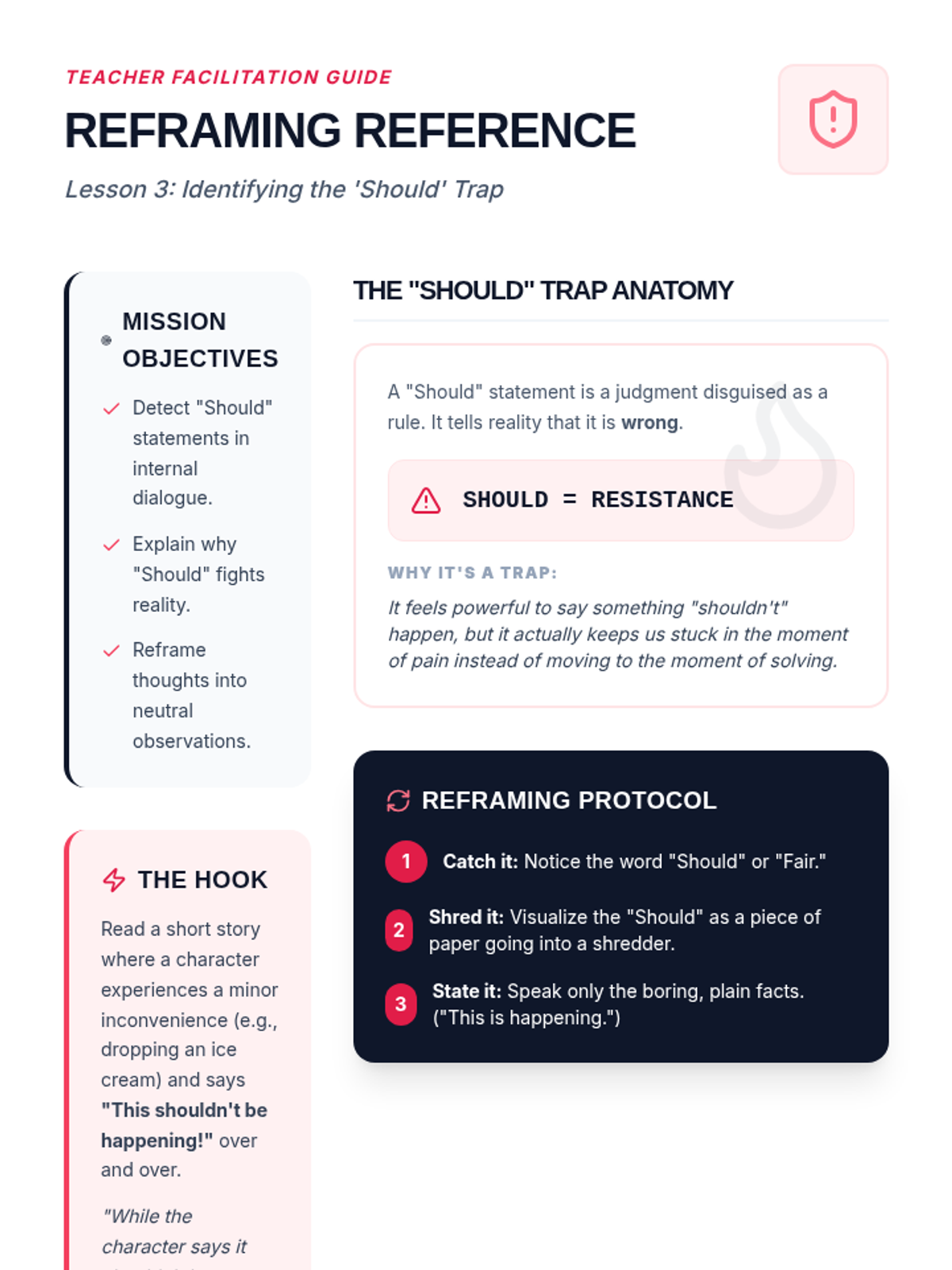 A 5-lesson sequence for 6th graders on radical acceptance, distinguishing control, and building emotional resilience through logic-based tools.