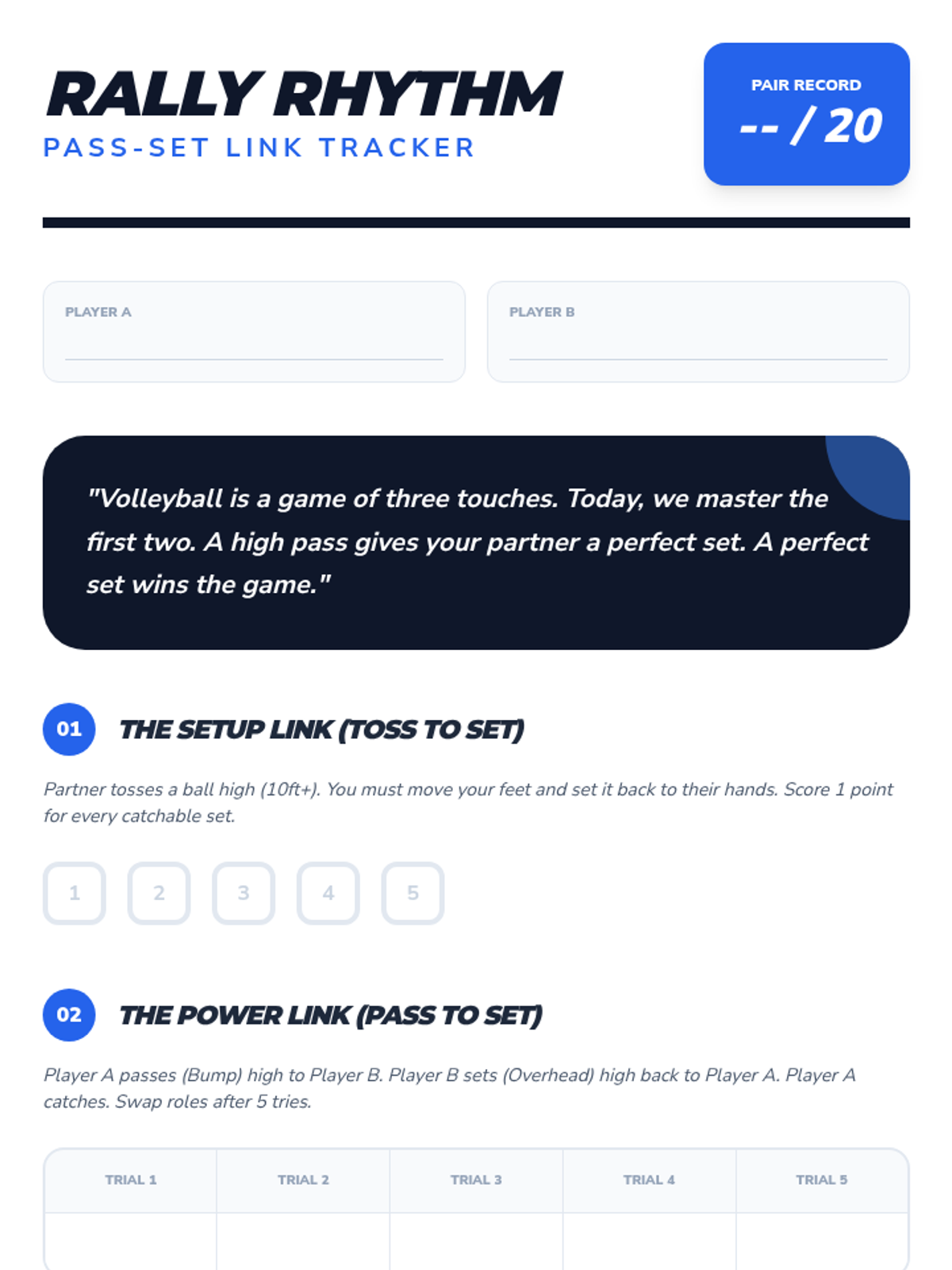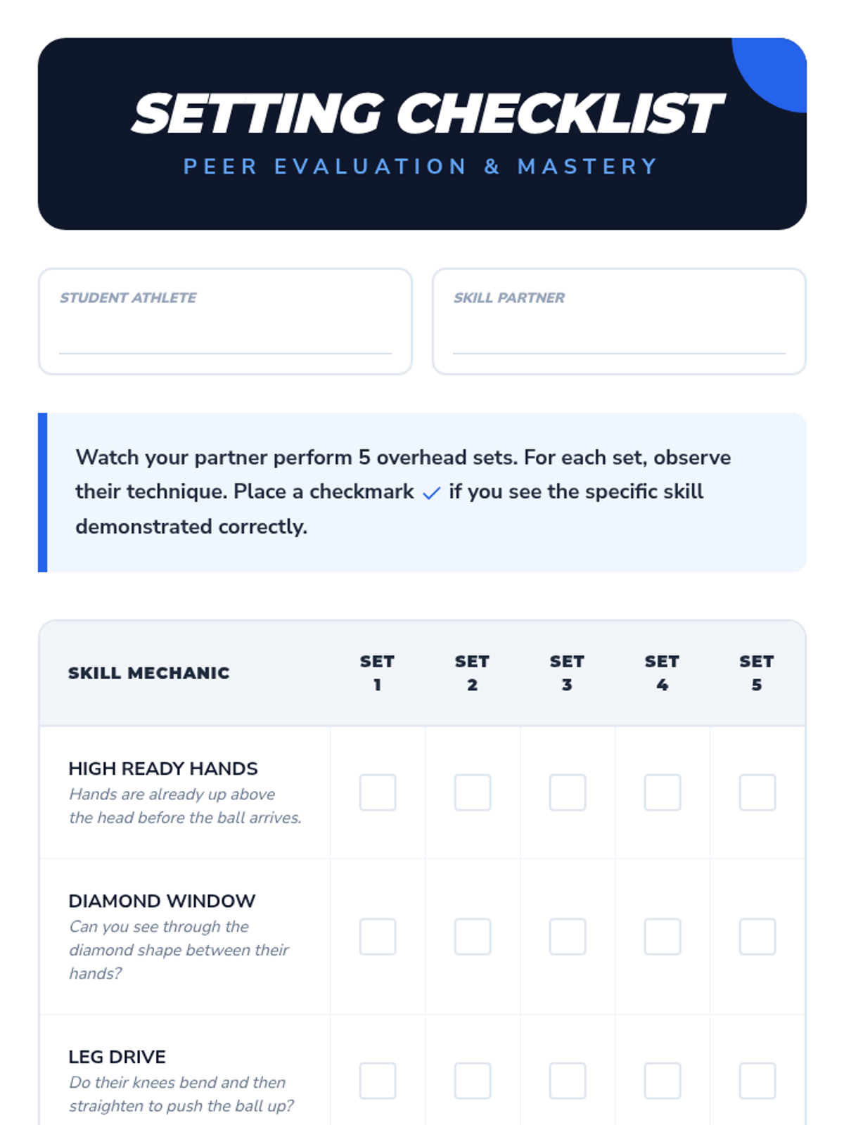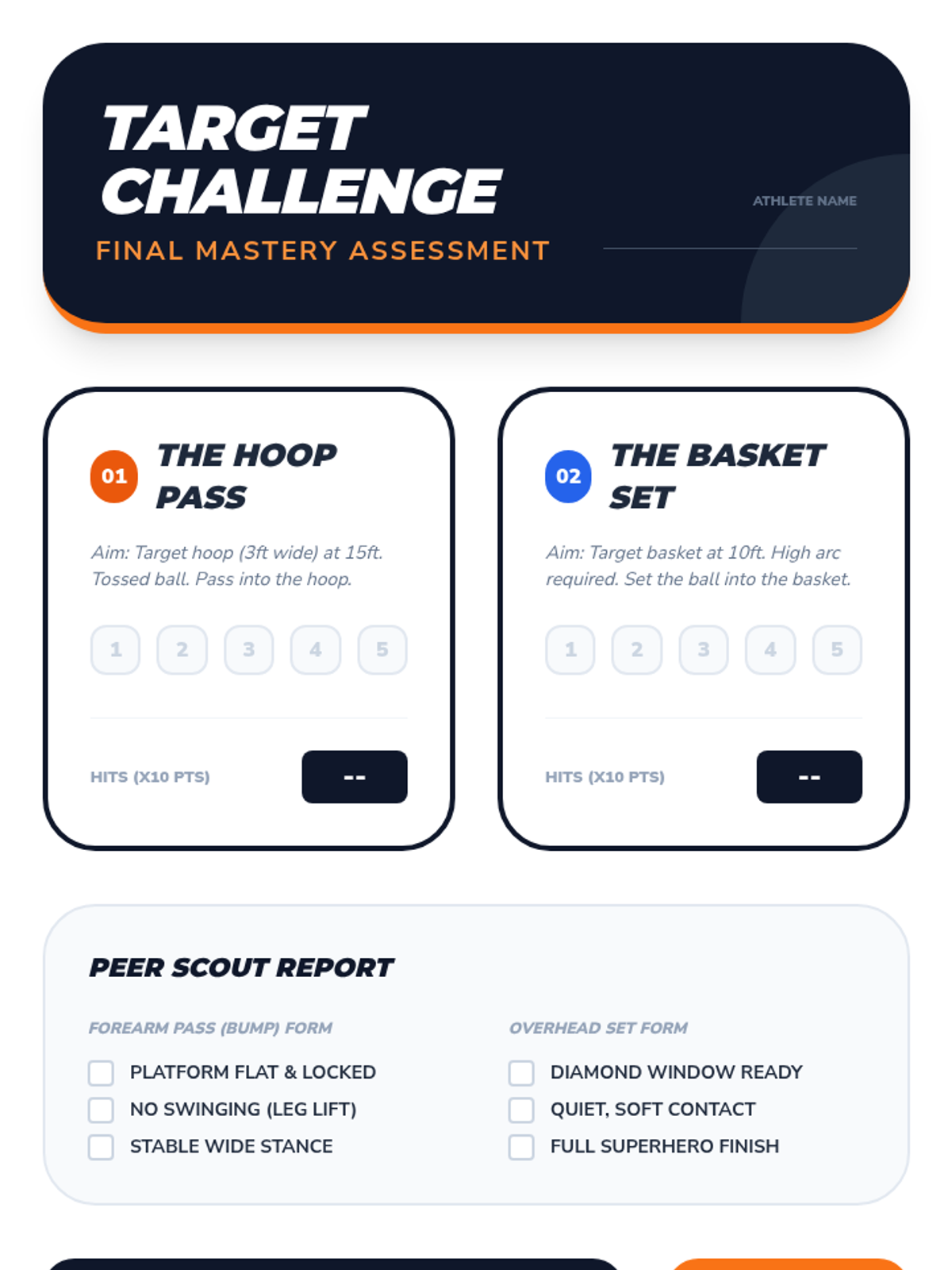 A comprehensive introduction to volleyball biomechanics, focusing on the forearm pass and overhead set. Students progress from basic athletic stance to dynamic partner play, emphasizing ball control, platform stability, and hand positioning.