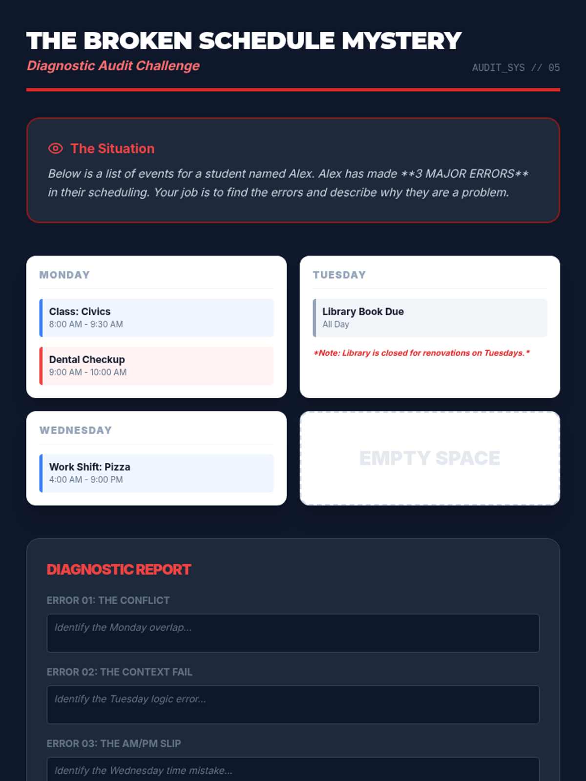 A series of bite-sized mini-lessons designed for High School Academic Support students, focusing on strengthening executive functioning through high-engagement discourse and real-world scenarios.