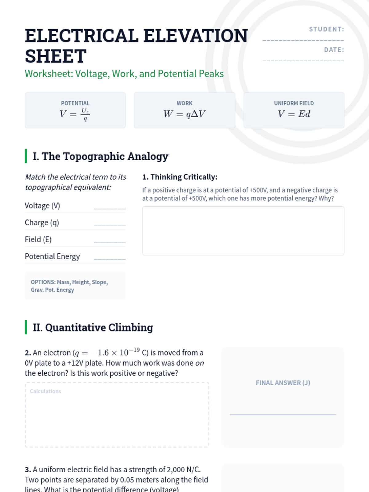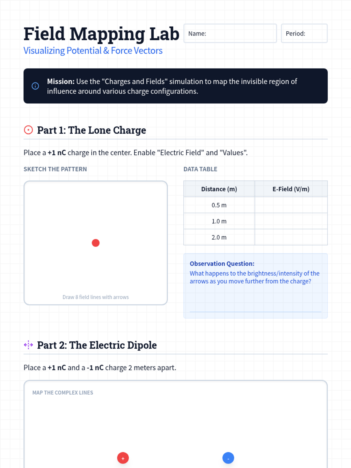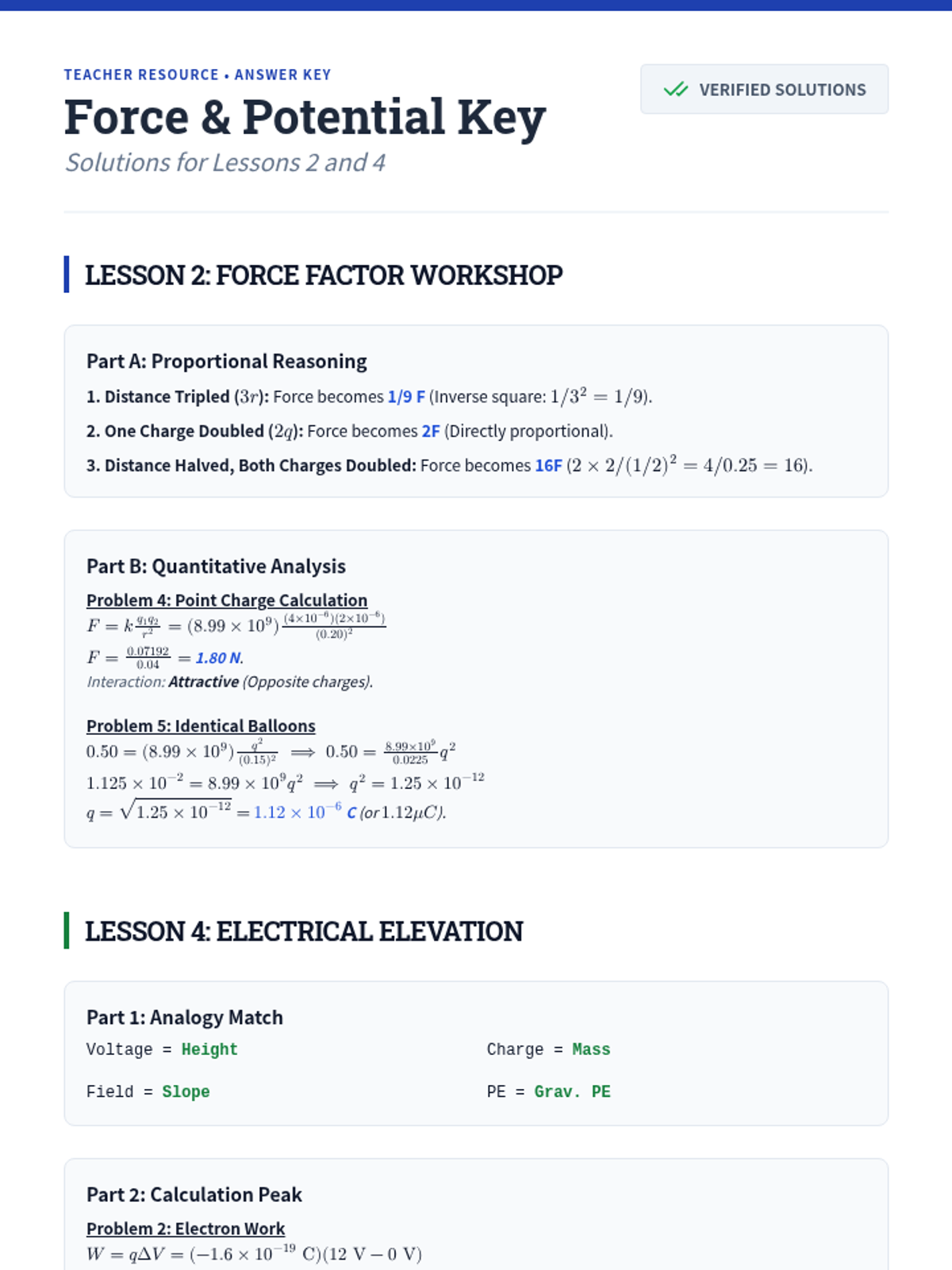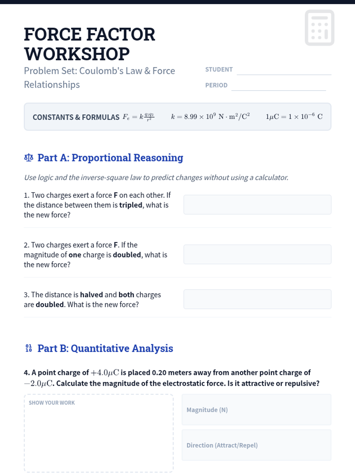 This inquiry-based sequence introduces 10th-grade students to the fundamental properties of electric charge and static electricity, progressing from qualitative observations of attraction and repulsion to mapping electric fields and calculating electric potential. Students will use Coulomb's Law to quantify forces and develop a conceptual model of non-contact interactions.