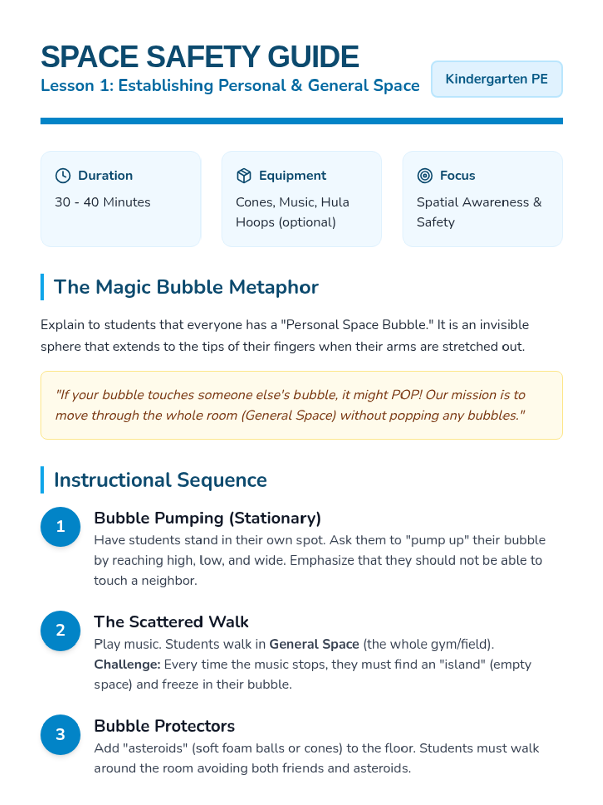 A Kindergarten Physical Education sequence focused on social-emotional skills through team building. Students learn to recognize emotions, offer encouragement, help peers in games, and celebrate together to build a supportive classroom culture.