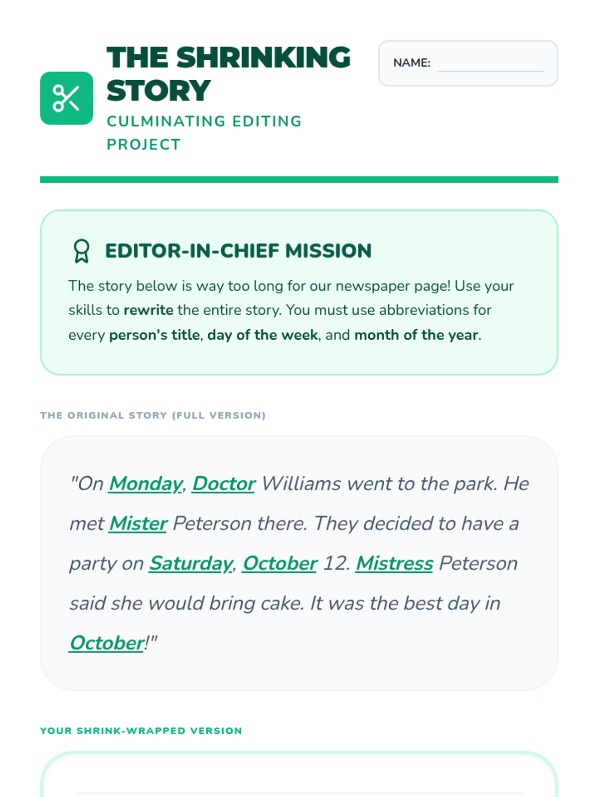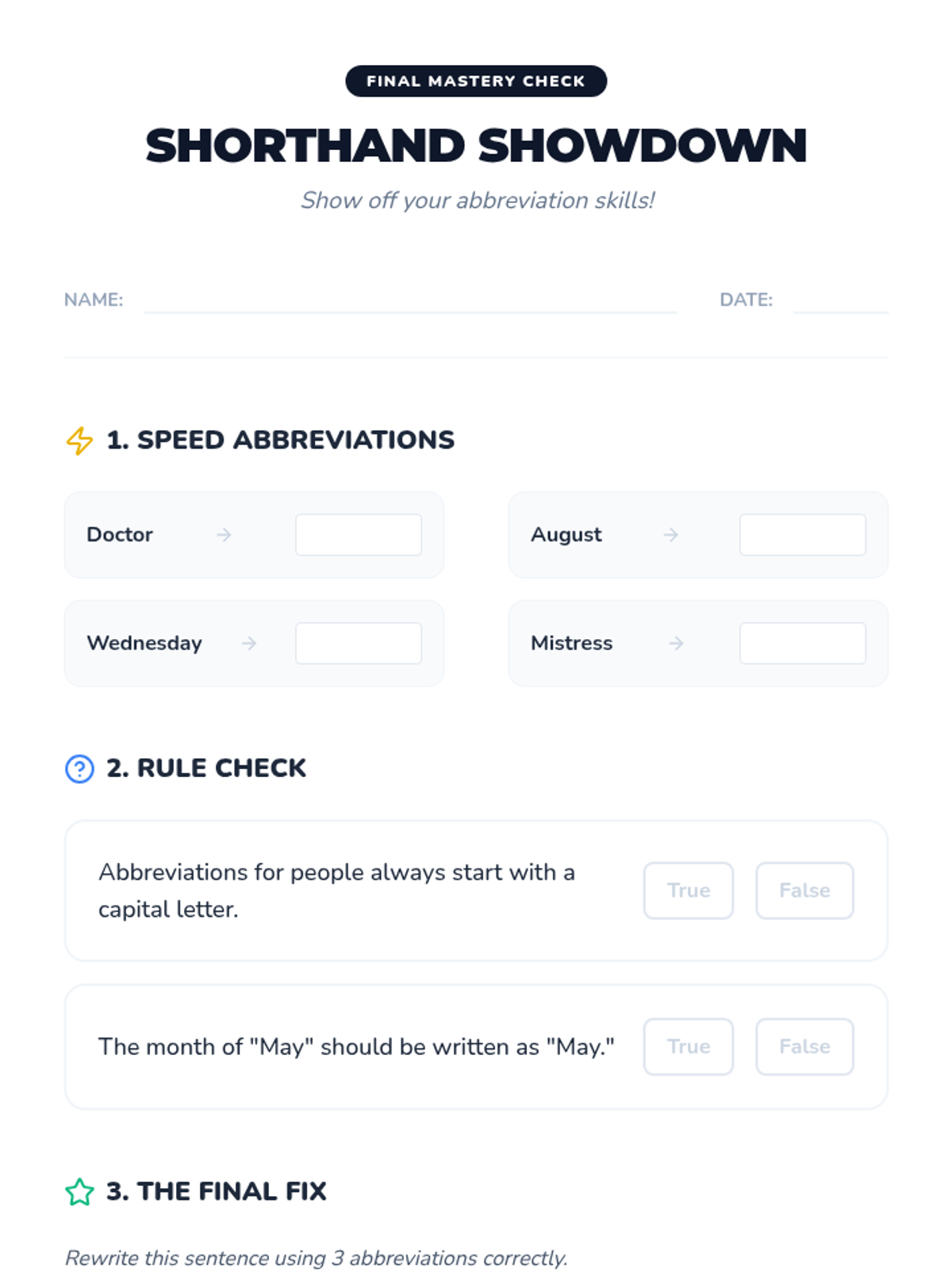 A comprehensive unit on identifying and using the seven primary parts of speech through the lens of sports, hobbies, and school life. Students progress from basic identification to complex sentence construction.