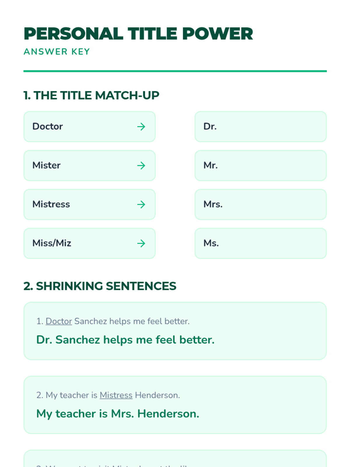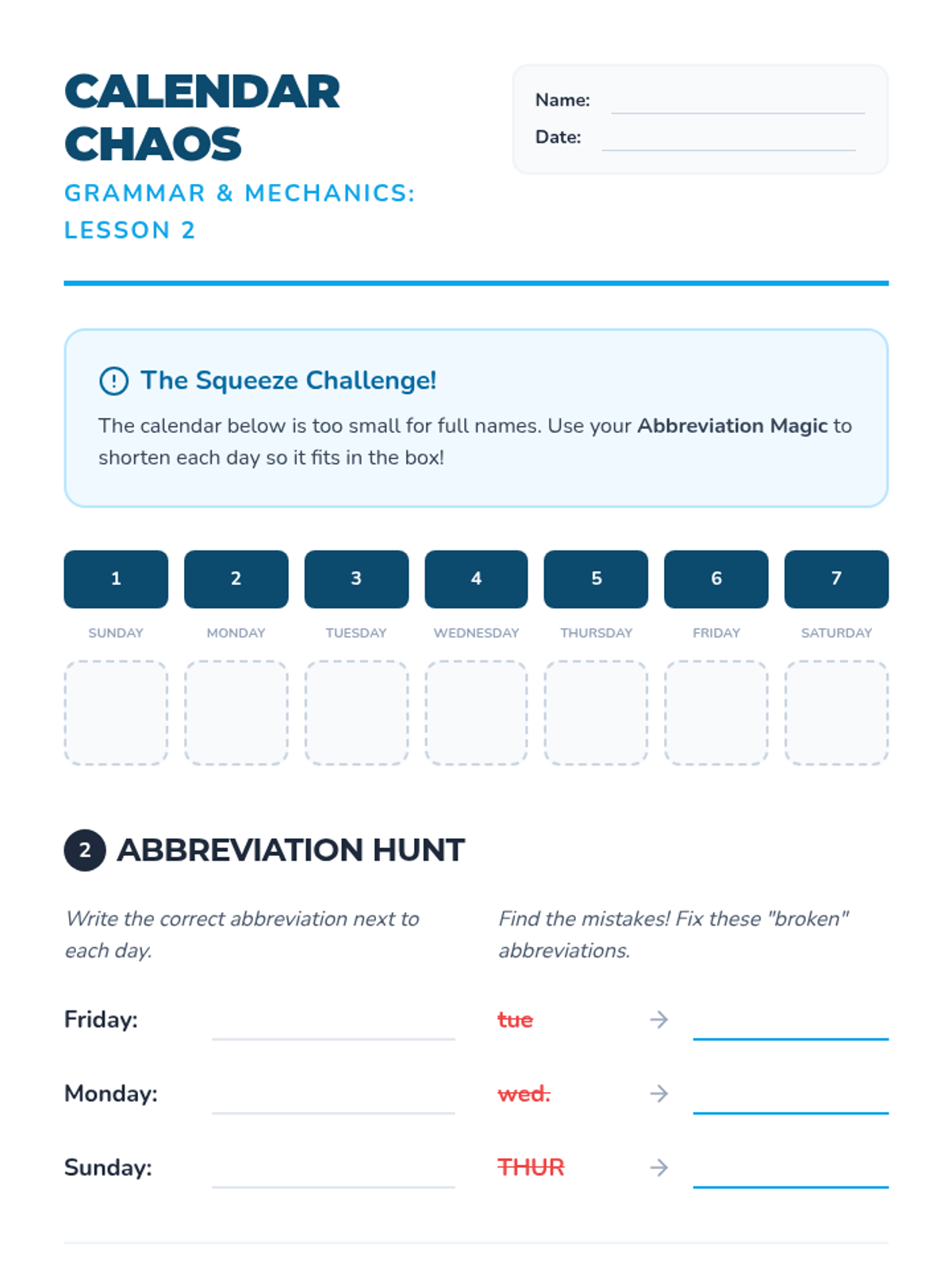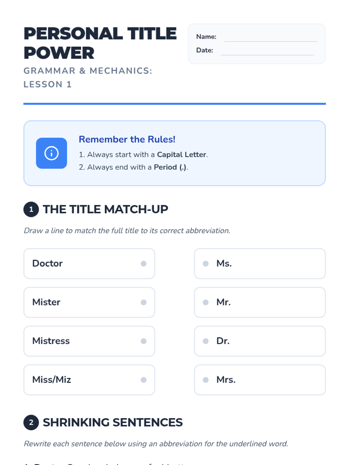 A 5-lesson sequence for 3rd graders on abbreviating personal titles, days of the week, and months of the year, focusing on capitalization and period placement.