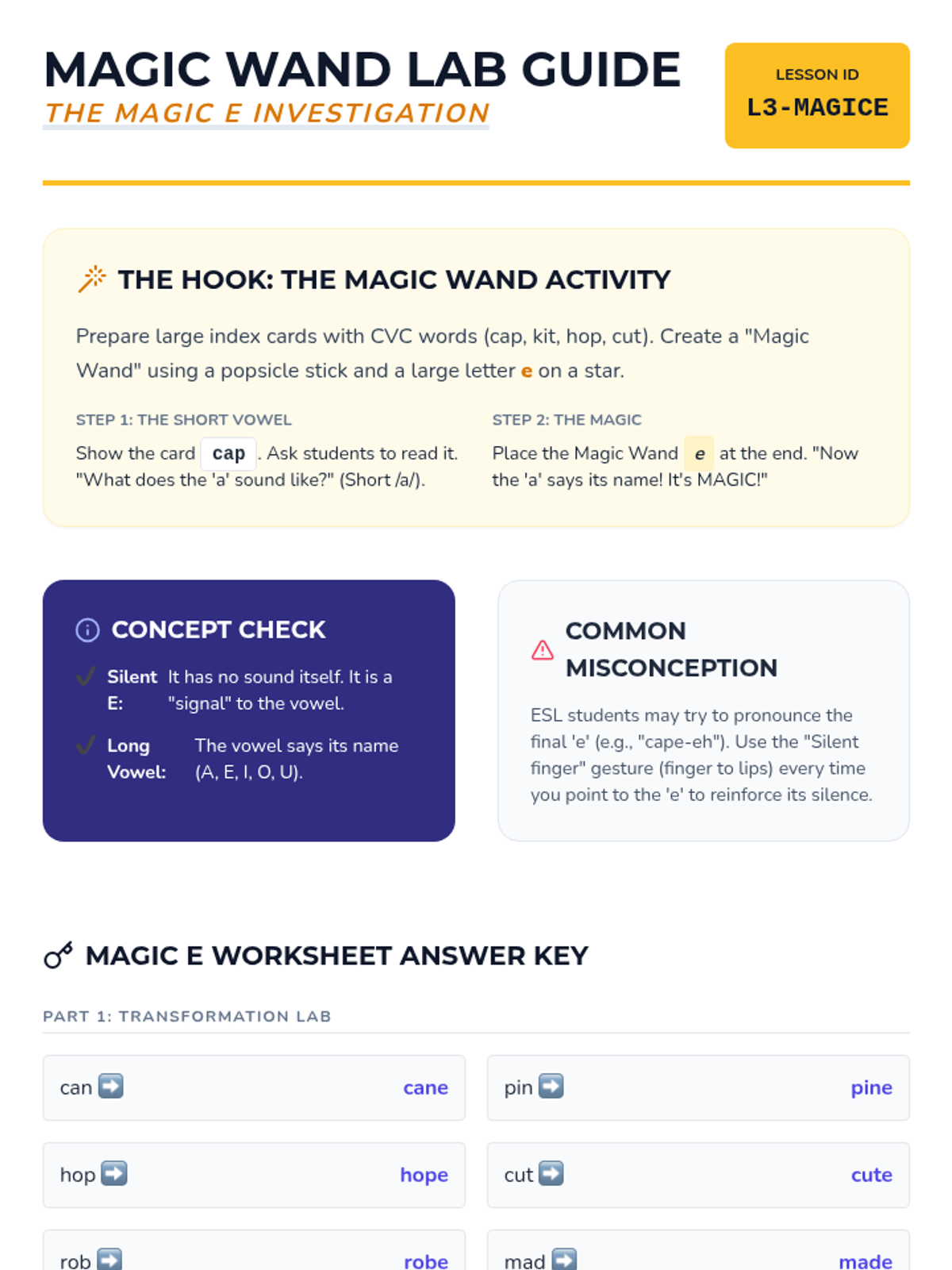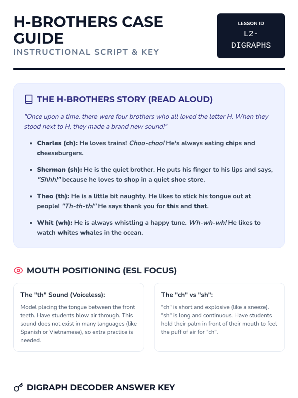 This sequence systematically builds foundational decoding skills for 3rd-grade ESL learners, covering consonant clusters, digraphs, silent 'e', vowel teams, and multisyllabic word decoding through a 'Sound Detectives' theme.