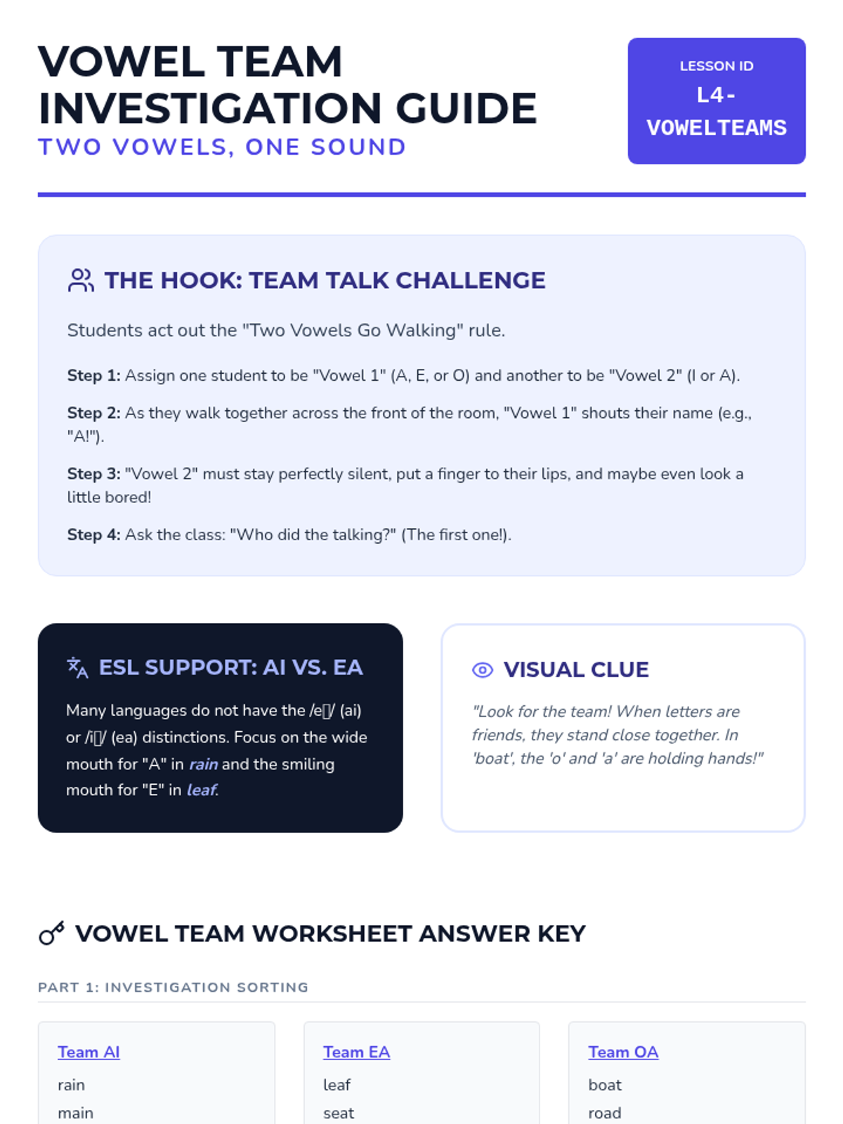 A comprehensive sequence for 4th Grade ESL students to master test-taking logic. Students learn the Process of Elimination (POE), identify extreme language red flags, categorize common distractor types, and evaluate the 'best' vs. 'correct' answers, culminating in a creative workshop where they design their own distractors.