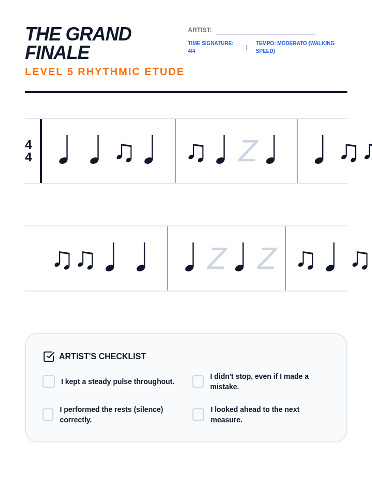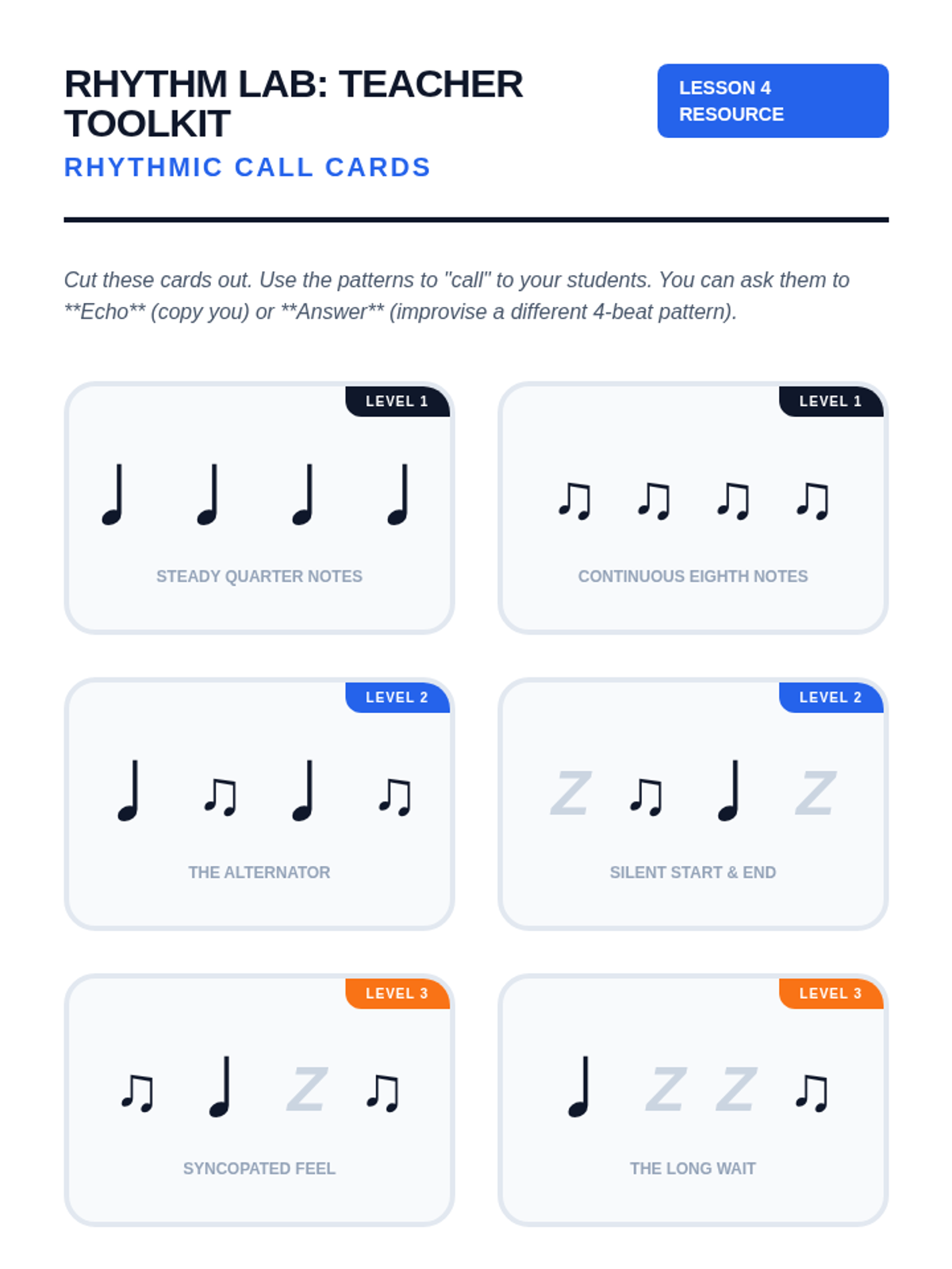 A high-energy, interactive unit focused on mastering rhythm and tempo through digital gameplay and body percussion, designed specifically for paperless classrooms.