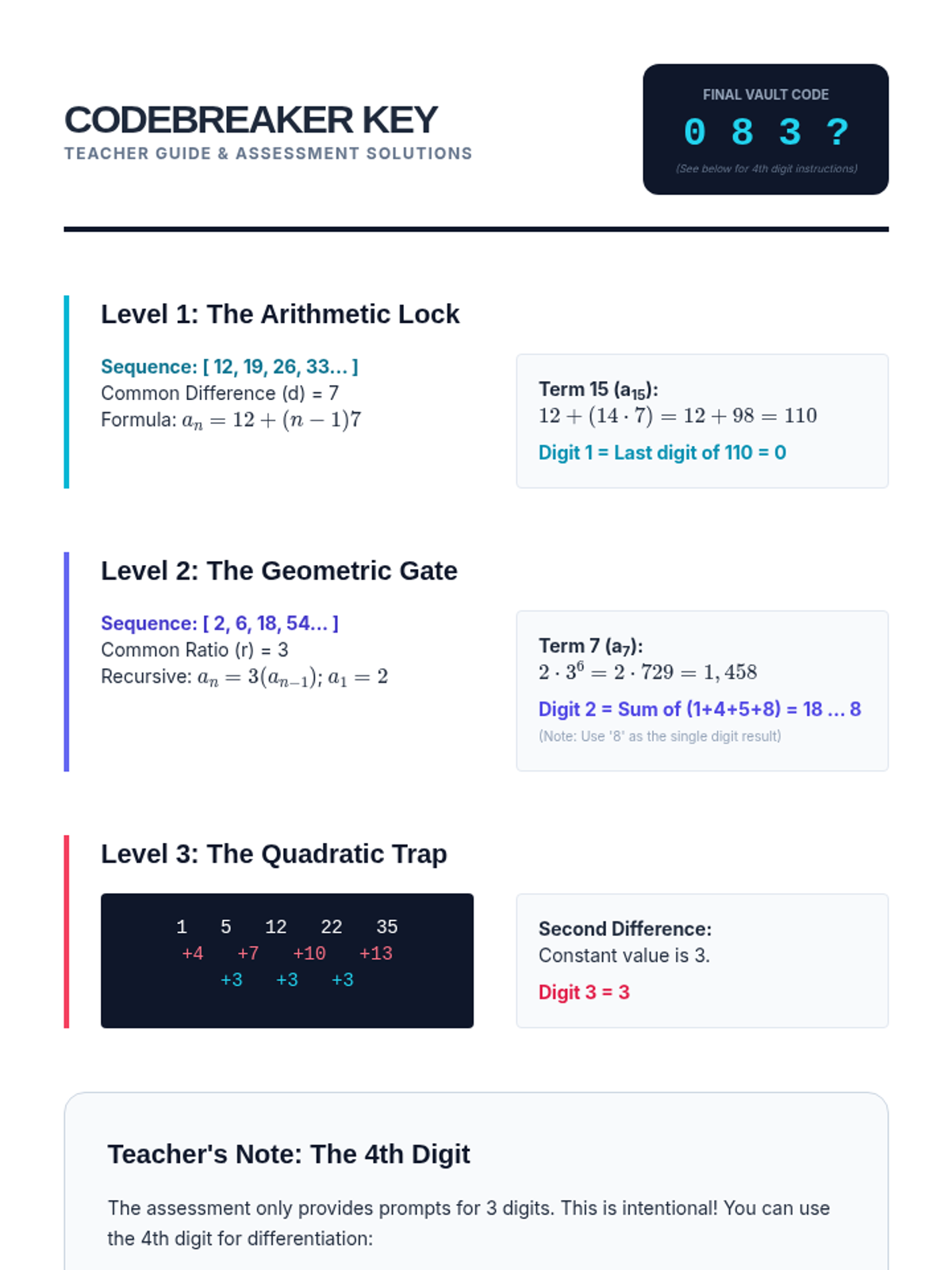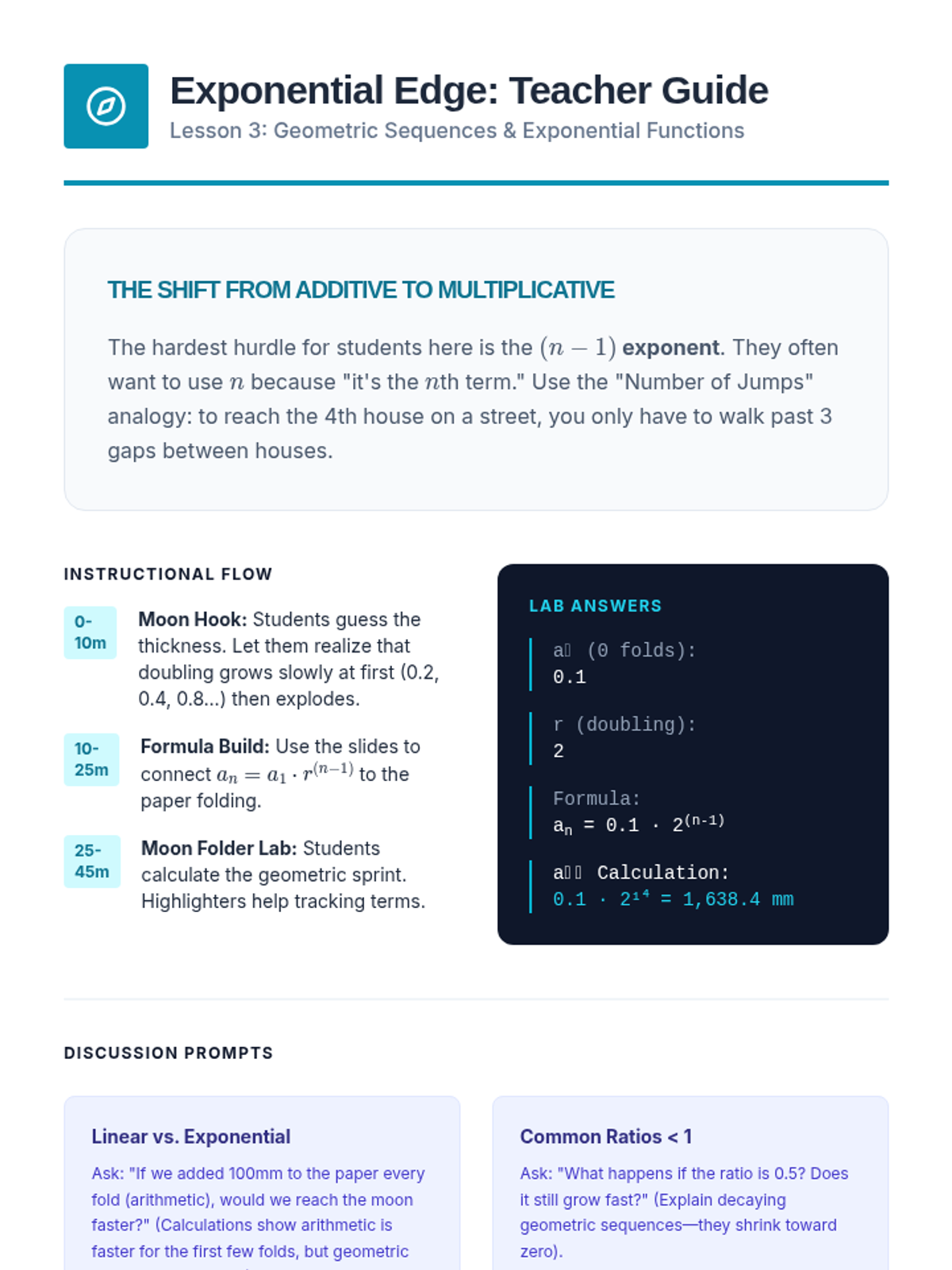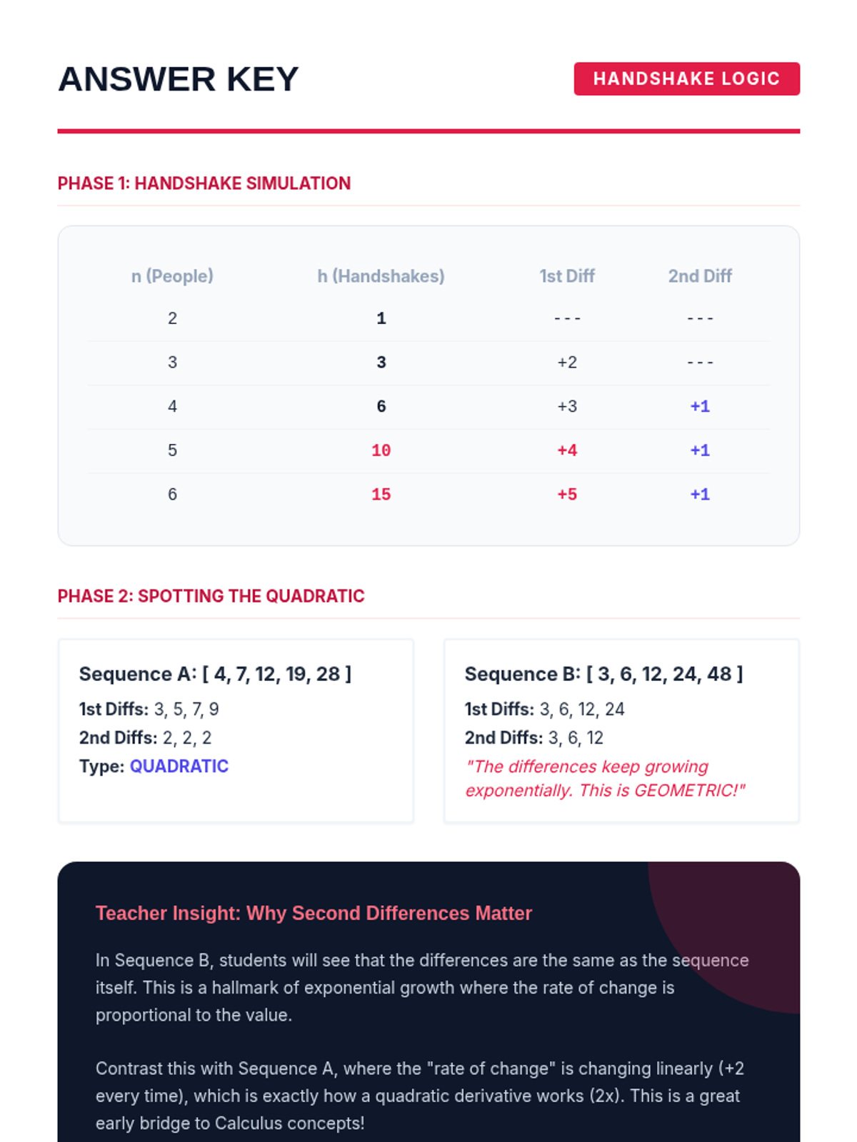 This sequence introduces students to arithmetic and geometric sequences, moving from visual patterns to formal algebraic formulas. Students explore the connections between sequences and linear or exponential functions, analyze complex non-standard patterns, and apply their knowledge in a culminating mastery assessment.