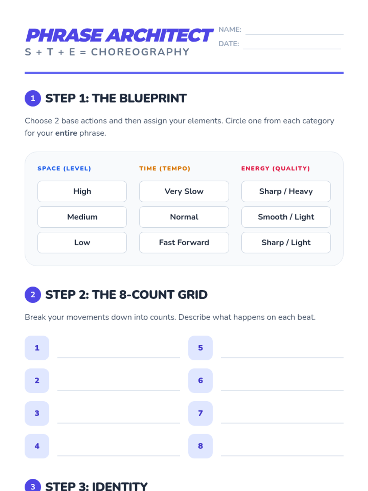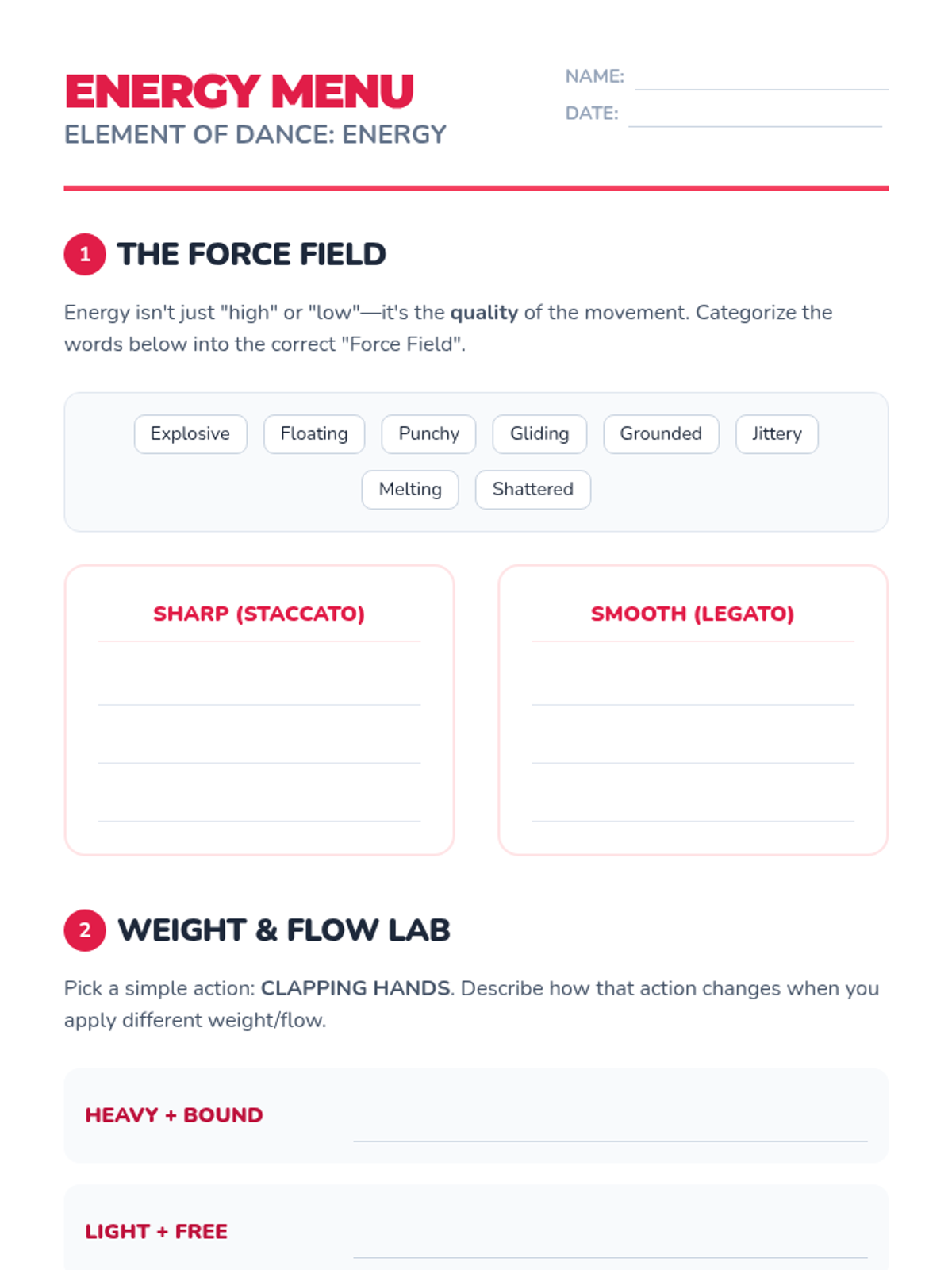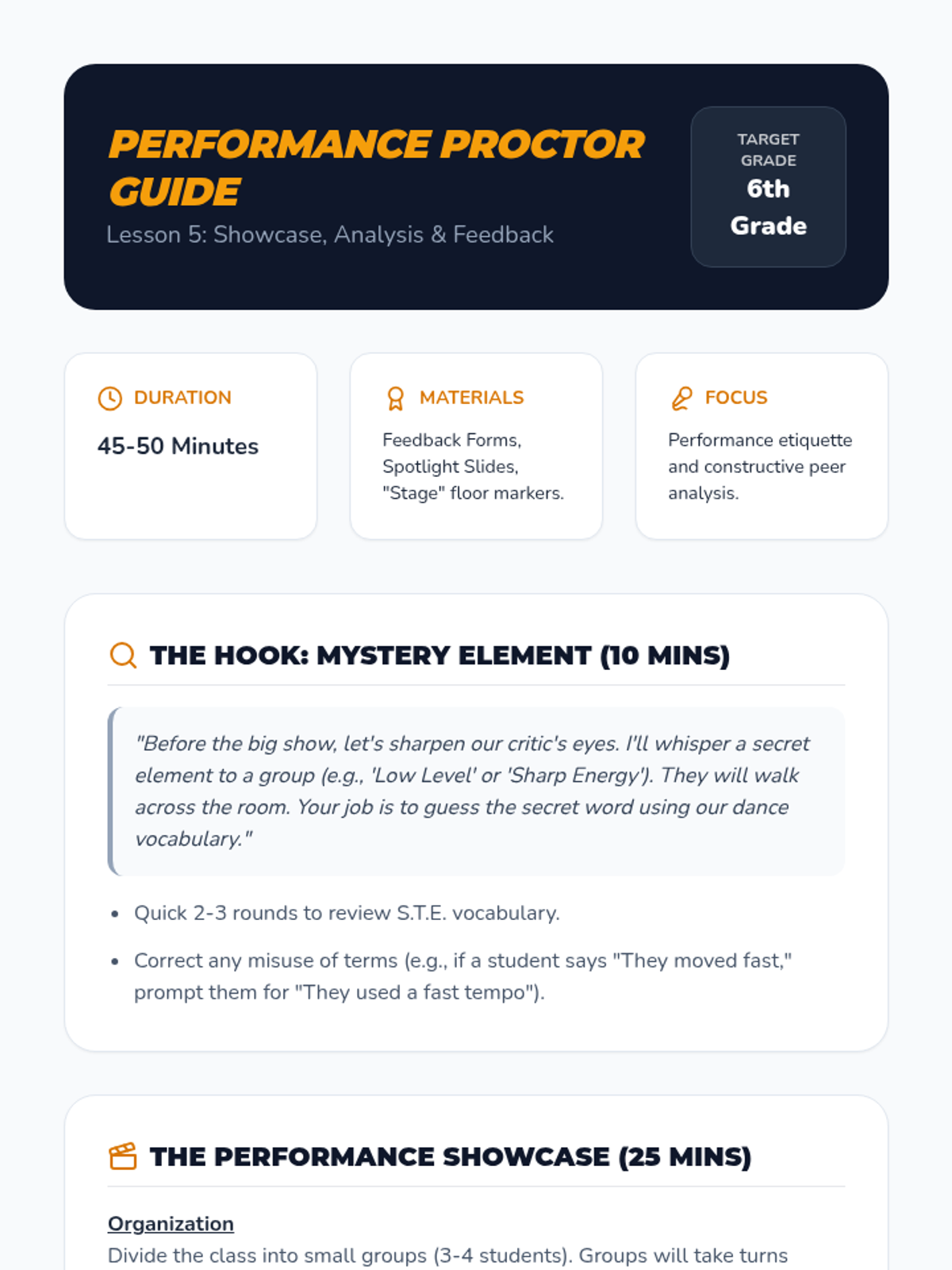 This sequence introduces students to the core building blocks of dance: Space, Time, and Energy. Students explore levels, pathways, tempo, rhythm, and dynamics to understand how movement conveys meaning and impact.
