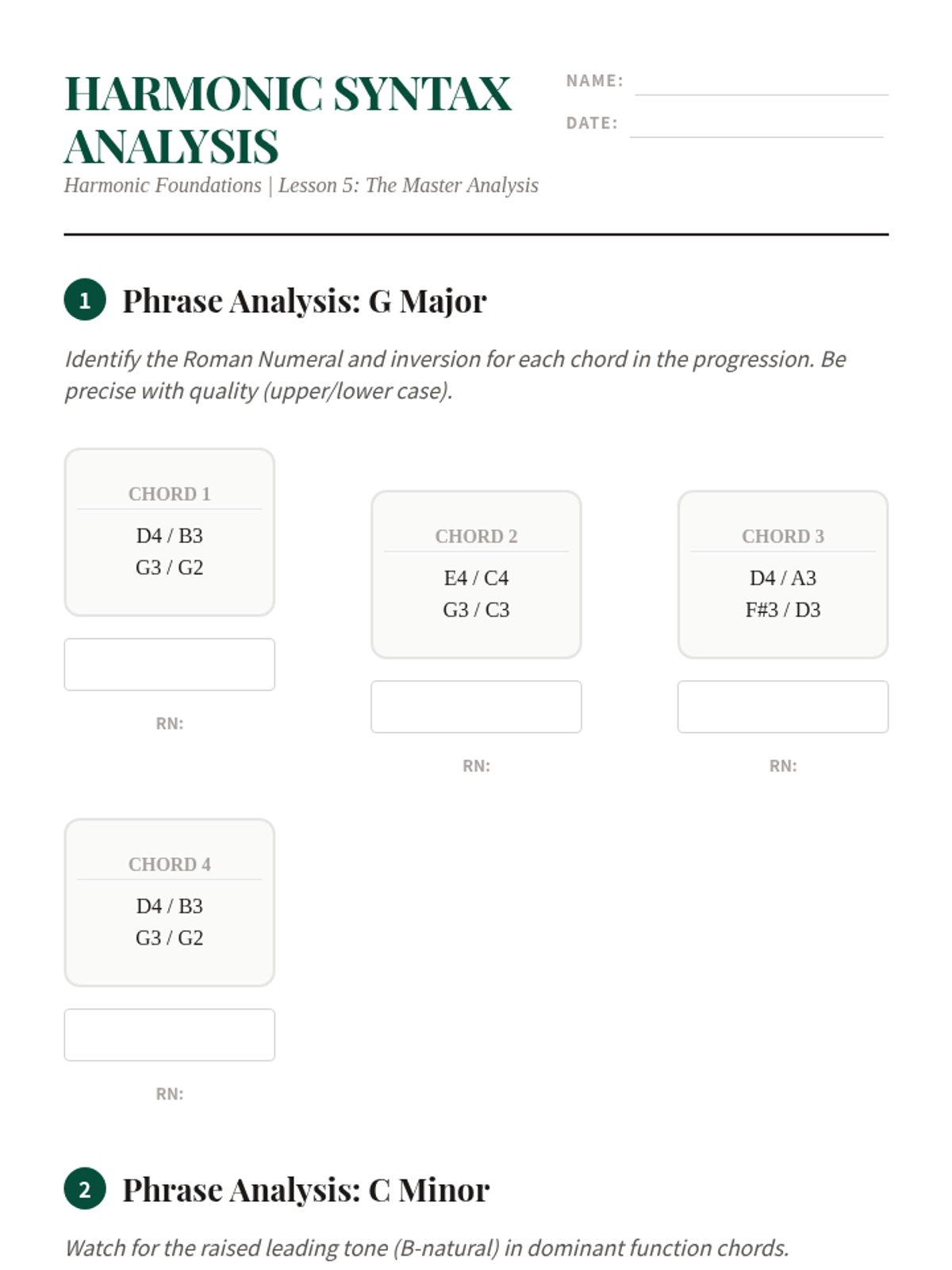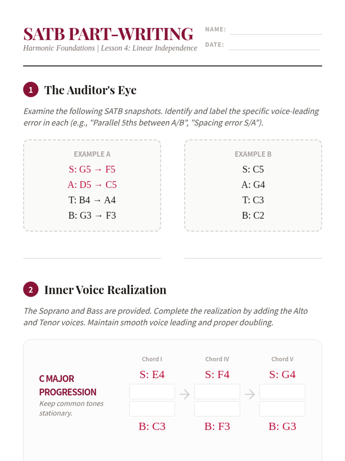 A comprehensive graduate-level bridge between basic music fundamentals and advanced harmonic theory, focusing on the construction of triads and seventh chords, figured bass realization, and the rigorous principles of SATB voice leading.