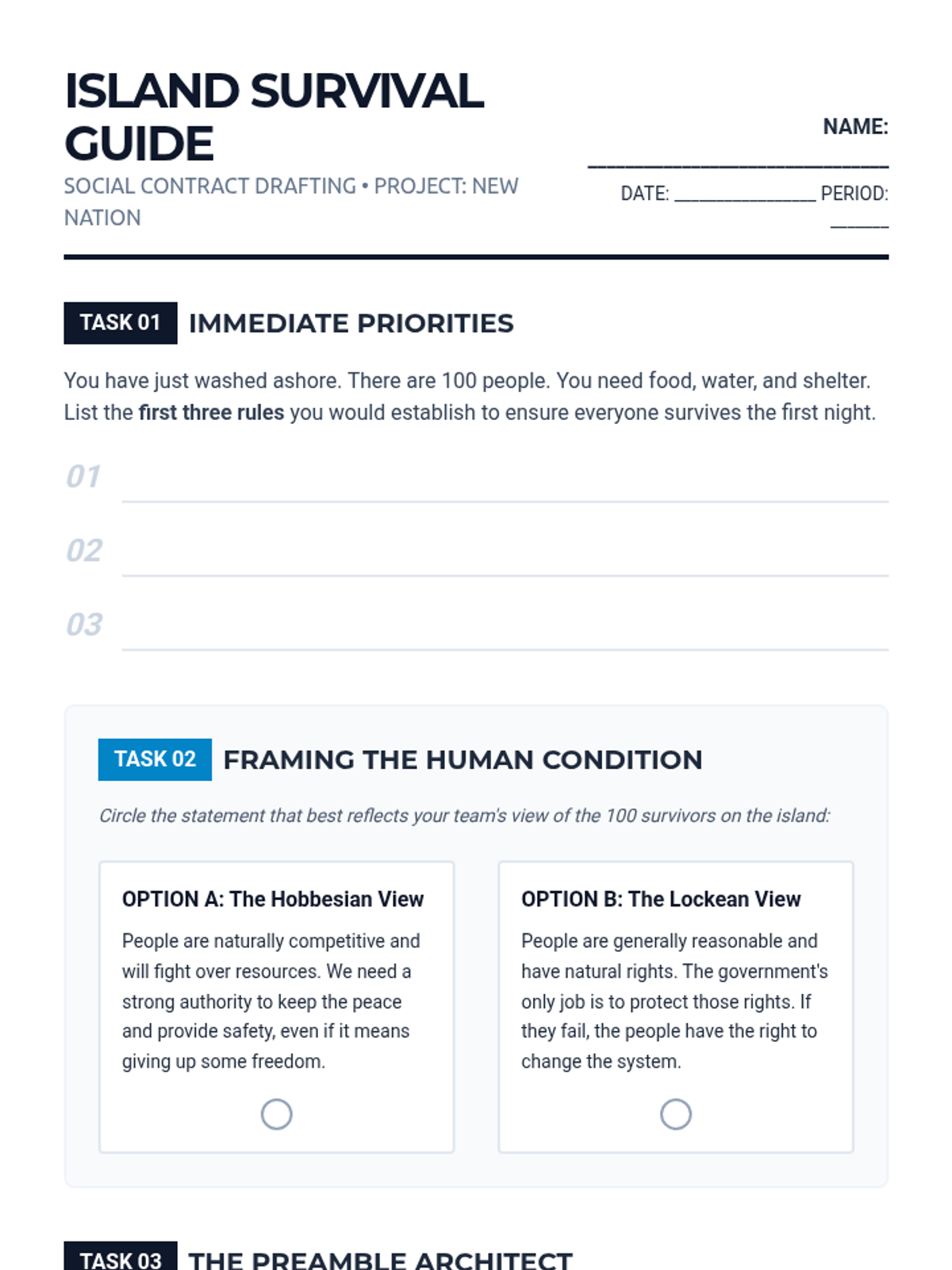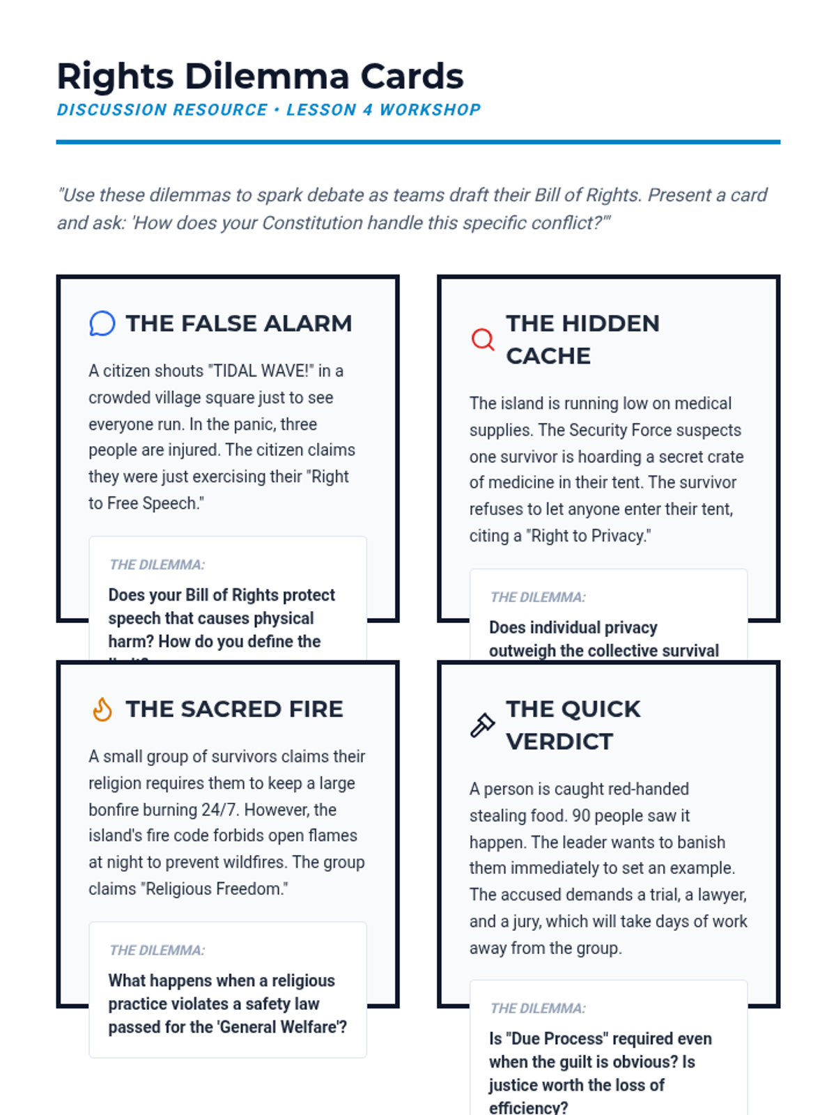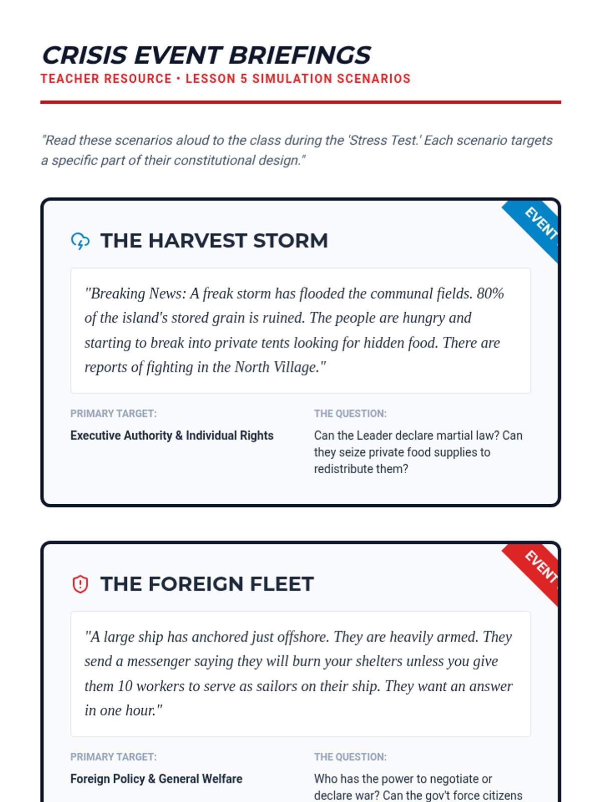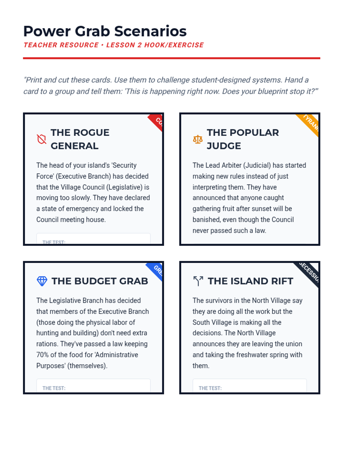An immersive 8th-grade civics sequence where students act as 'Founding Framers' to design a fictional nation's constitutional framework, exploring power distribution, leadership, and rights.