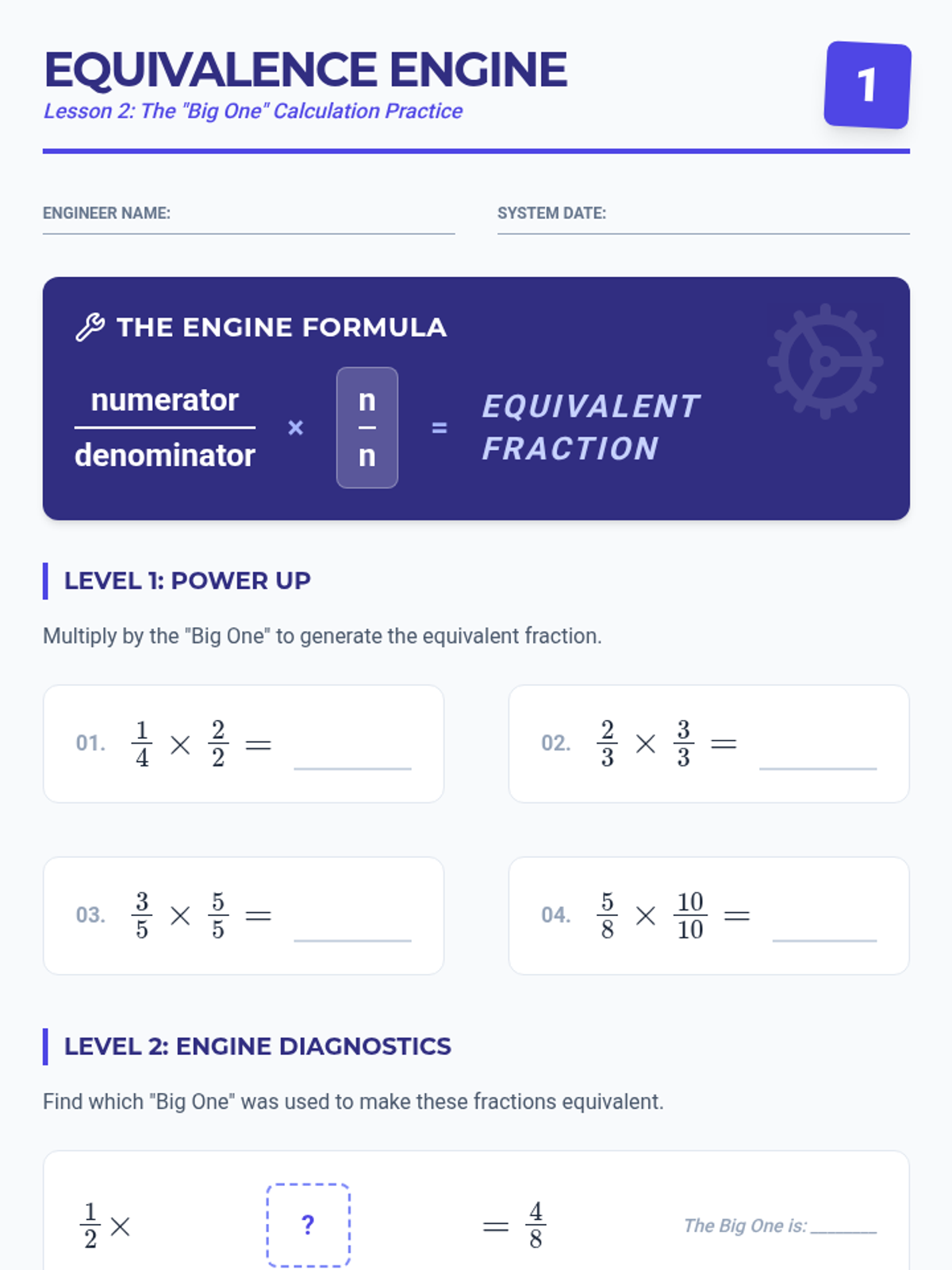 A comprehensive unit on fractions covering identification, decomposition with tape diagrams, equivalent fractions, and representing fractions on a number line. Students act as 'Factory Engineers' to build and analyze numerical parts.