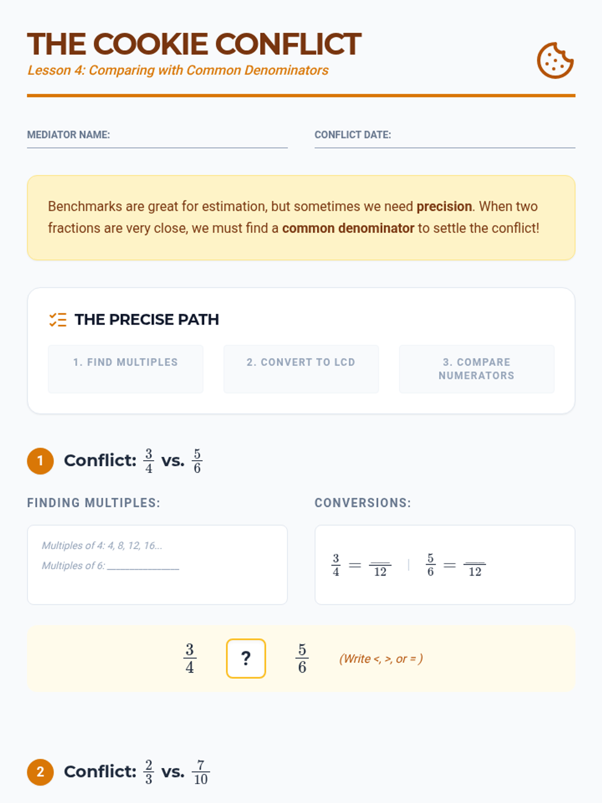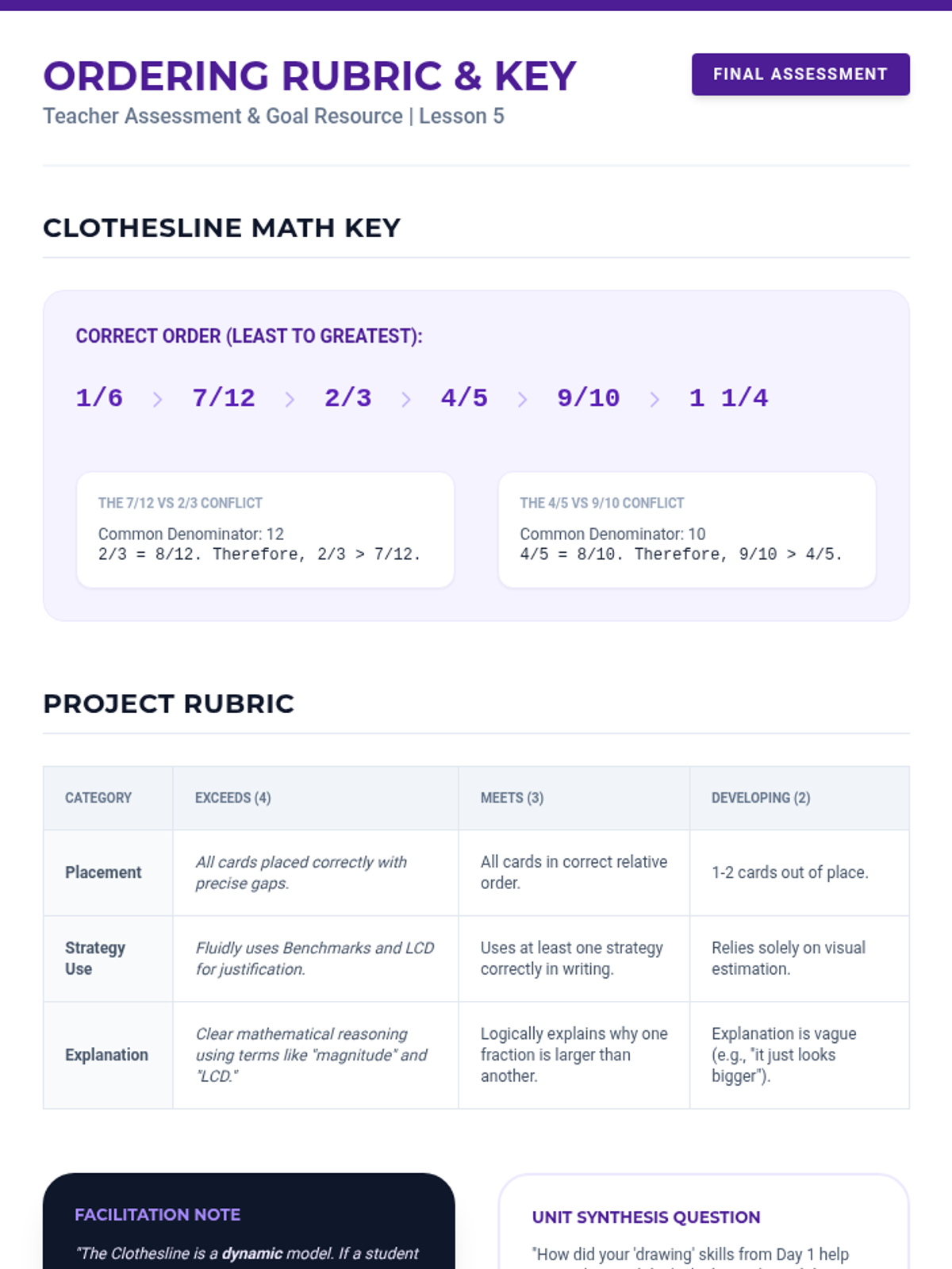 A comprehensive 5th-grade unit on fraction equivalence and ordering, moving from visual area models to abstract computational strategies using common denominators and benchmarks.