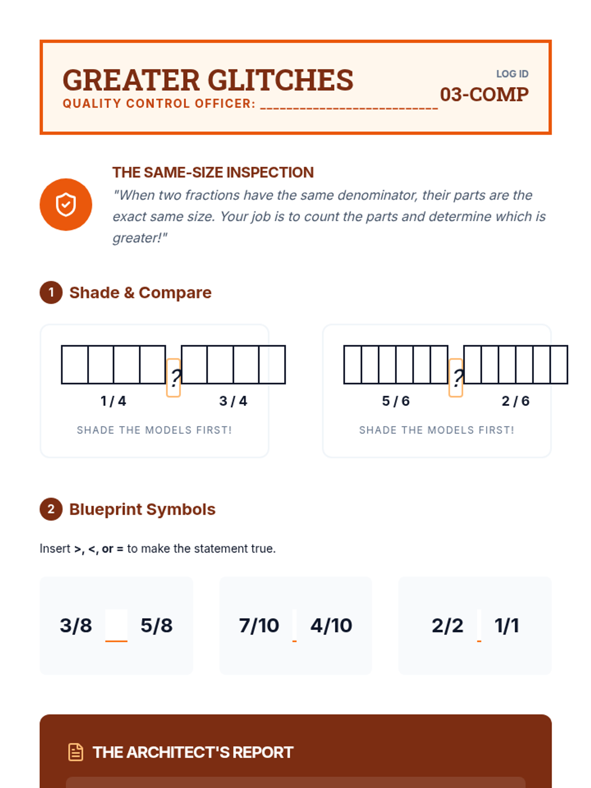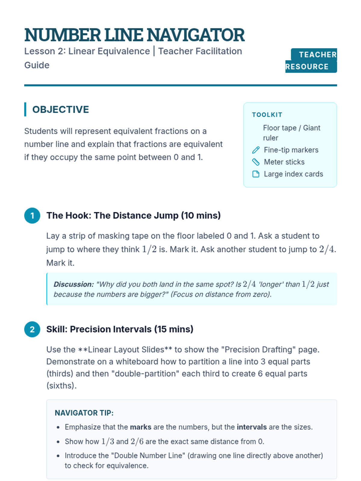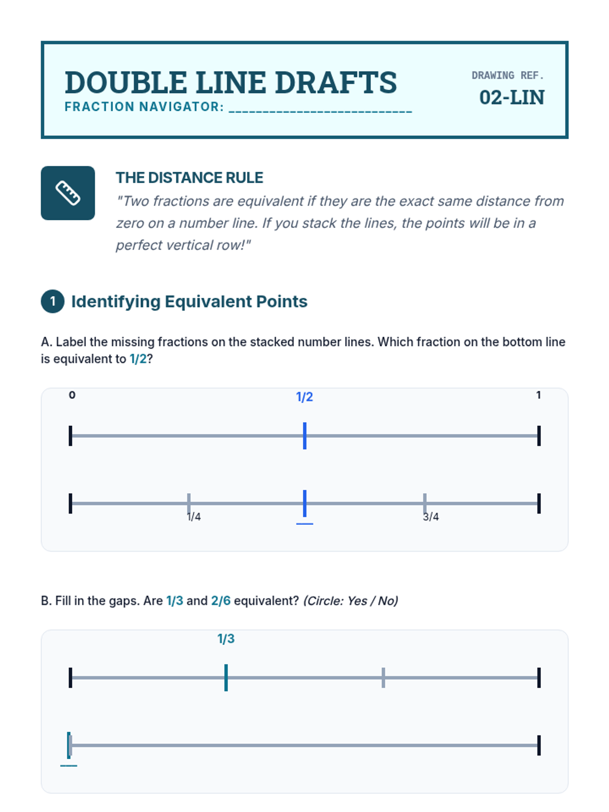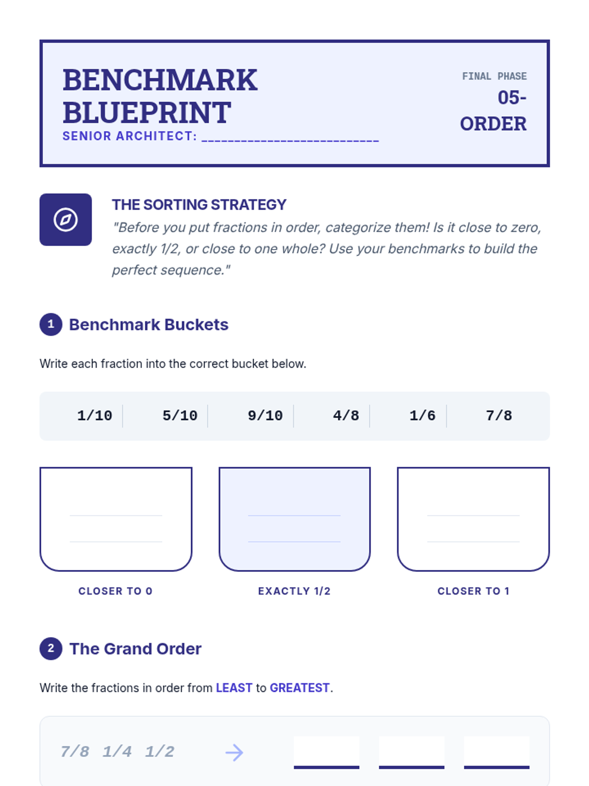 A comprehensive 3rd-grade sequence exploring fraction equivalence and ordering through area models, number lines, and conceptual reasoning about part sizes. Students move from concrete partitioning to abstract comparison using benchmarks and visual models.