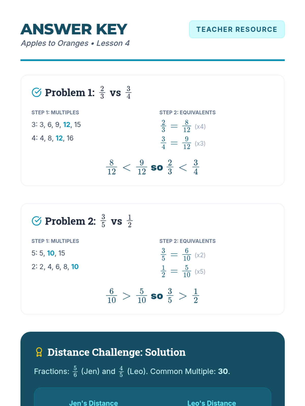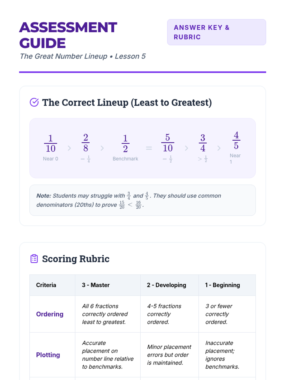 A comprehensive 5-lesson unit for 4th Grade students to master fraction equivalence and ordering through visual models, multiplicative reasoning, benchmark strategies, and common denominators.