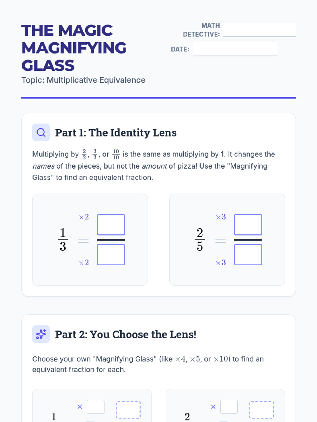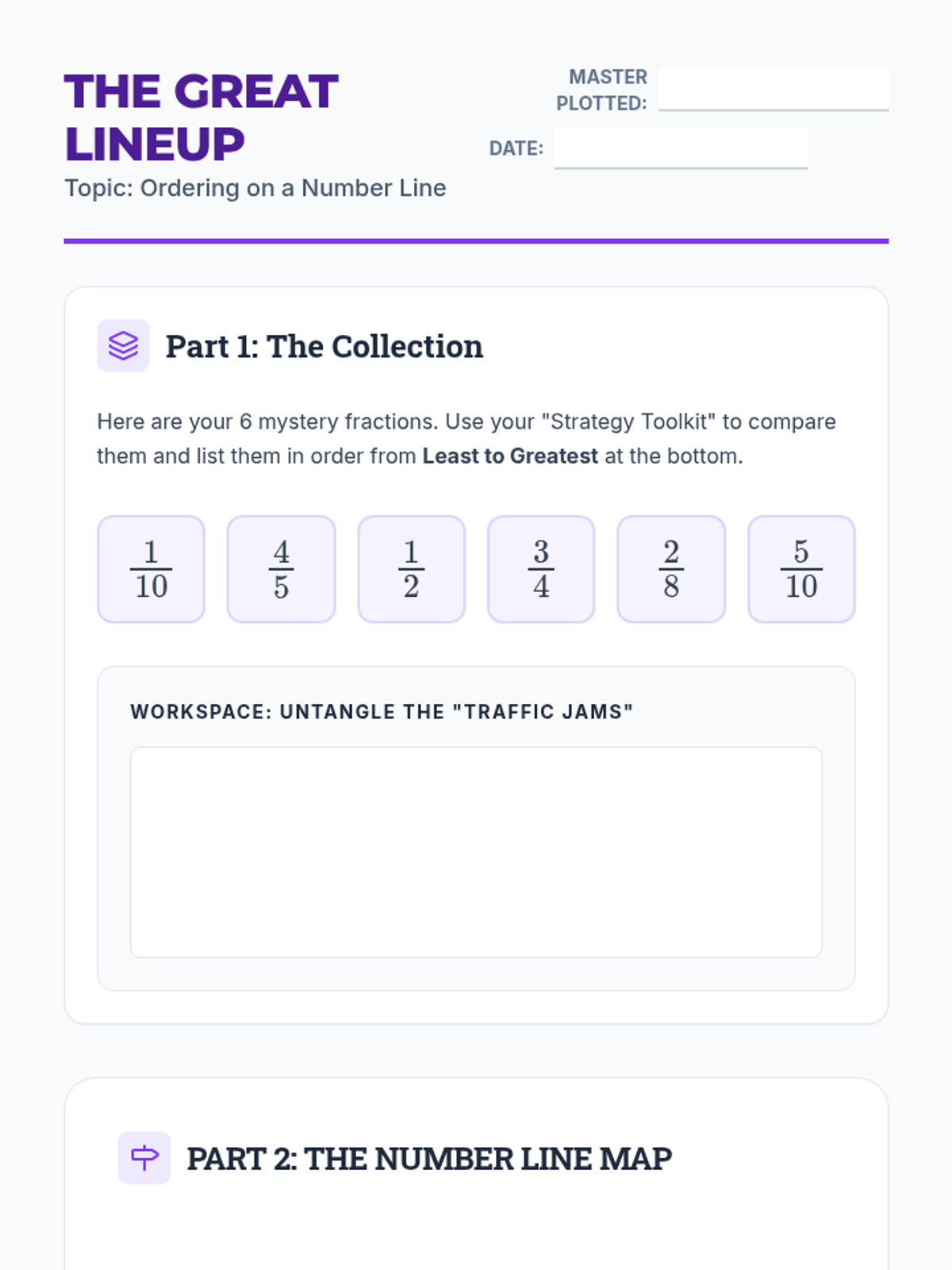 A comprehensive unit on fractions covering identification, decomposition with tape diagrams, equivalent fractions, and representing fractions on a number line. Students act as 'Factory Engineers' to build and analyze numerical parts.