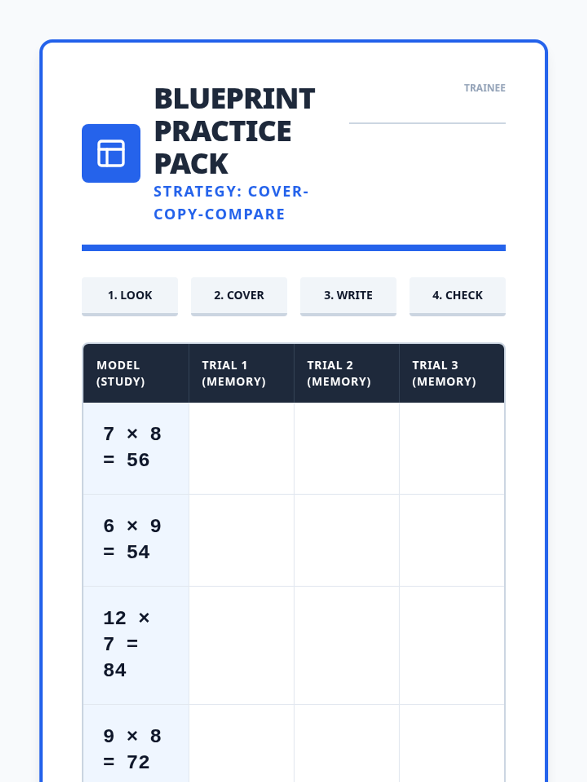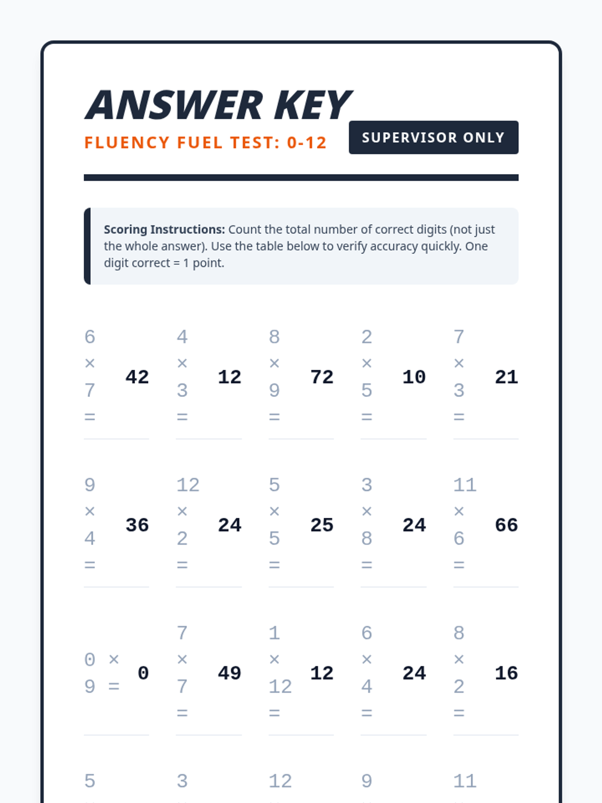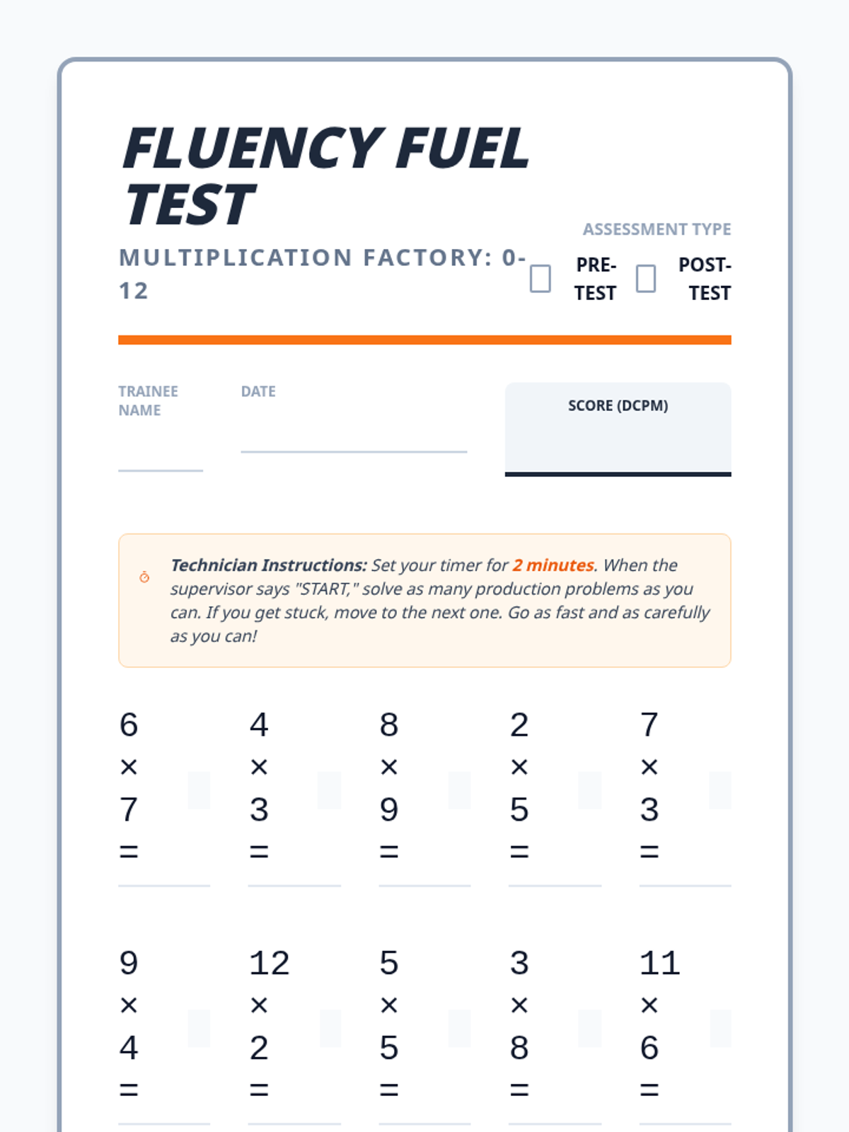 A comprehensive set of multiplication fact fluency quizzes covering facts from 0 to 12, including individual fact sprints and mixed reviews. Each material is designed as a half-page "sprint" to save paper and allow for quick daily practice.