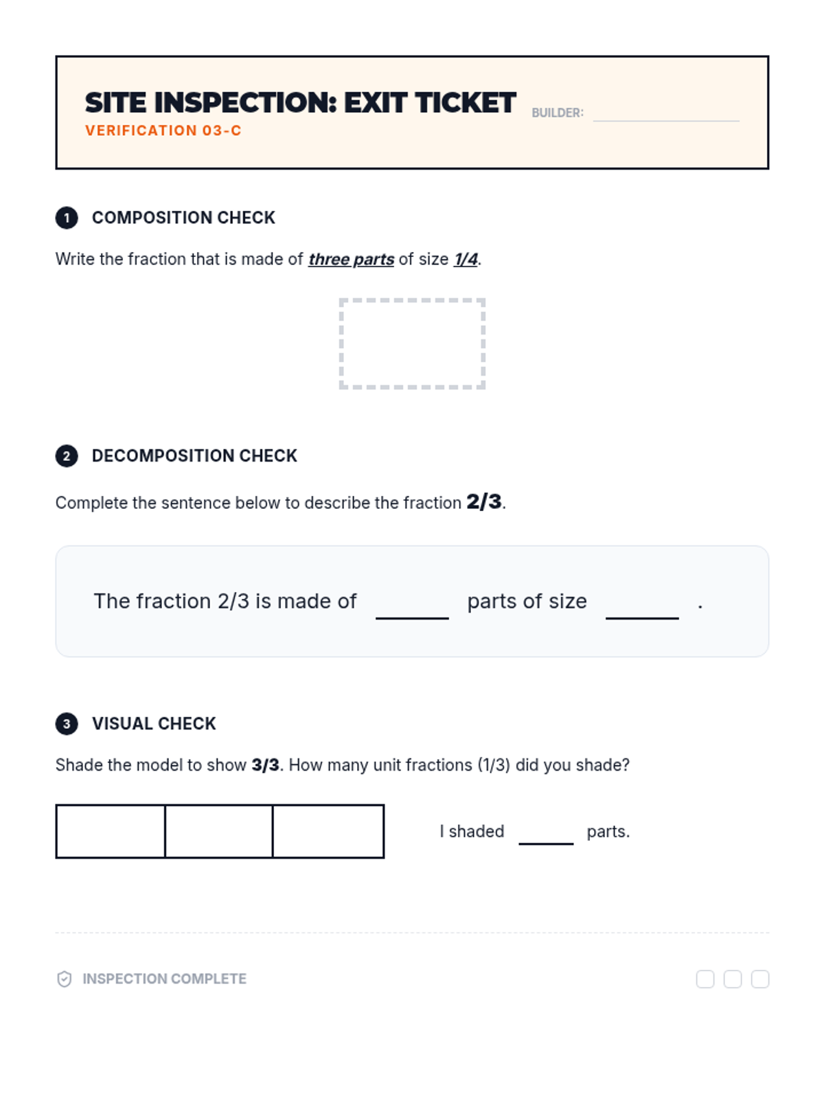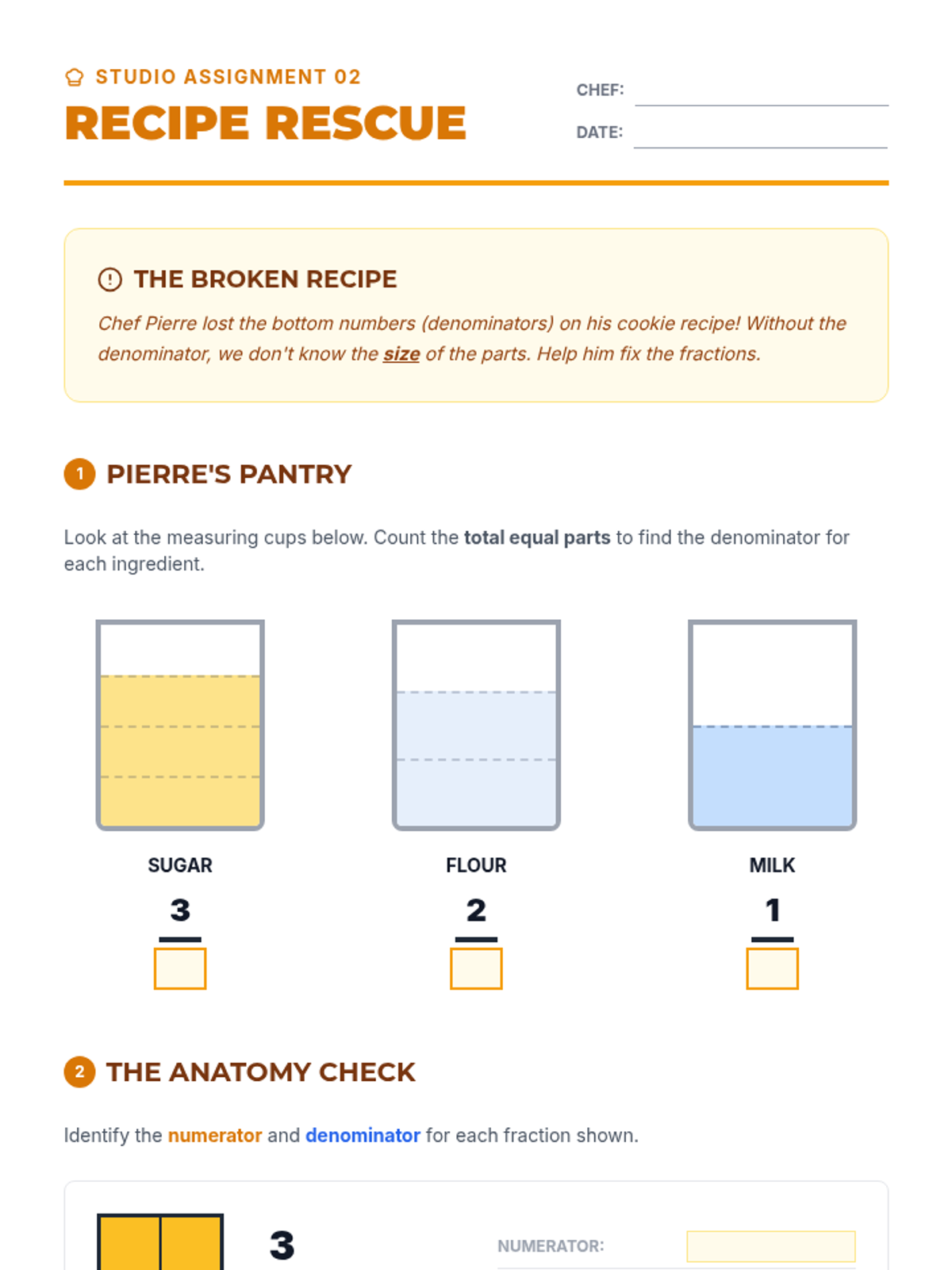 This sequence introduces 3rd-grade students to fractions as numbers. It covers partitioning shapes into equal shares, identifying numerators and denominators, composing non-unit fractions from unit fractions, and comparing fractions of a whole versus fractions of a set.