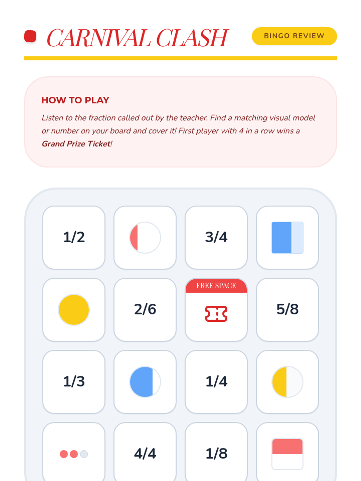 An engaging, fair-themed unit where students explore fractions through interactive games, visual models, and hands-on activities. Students will learn to identify, represent, and compare fractions like halves, thirds, and fourths.
