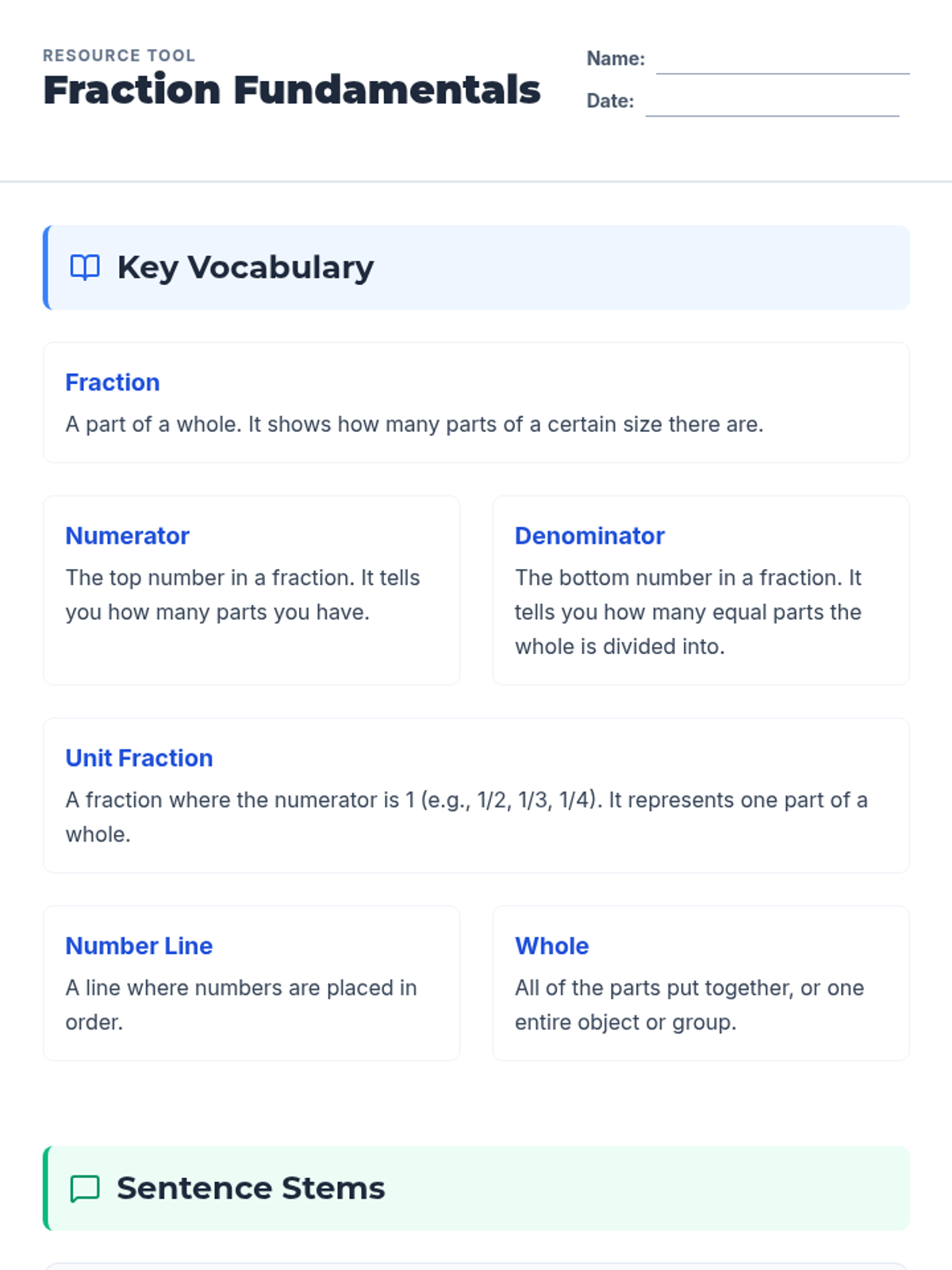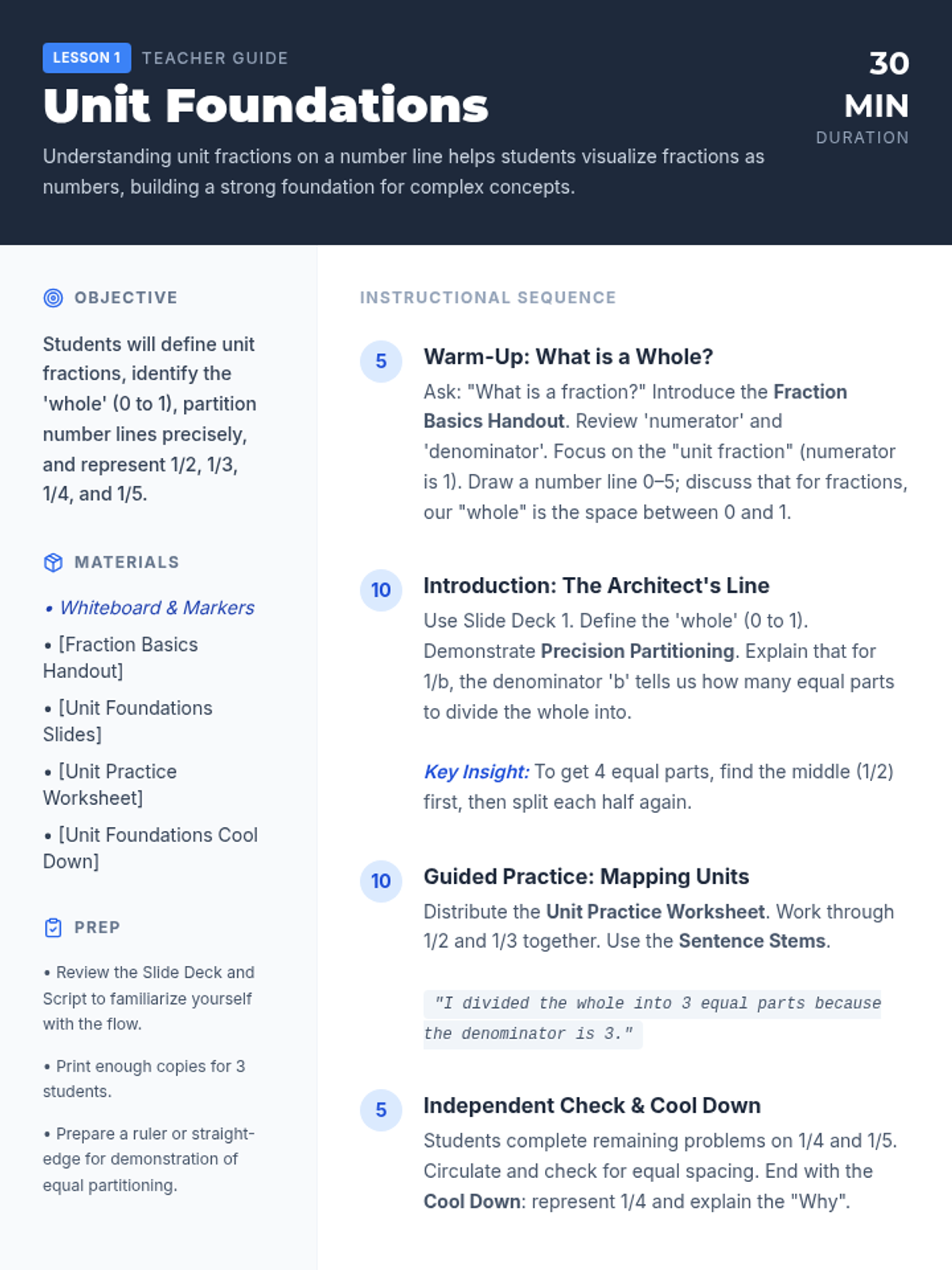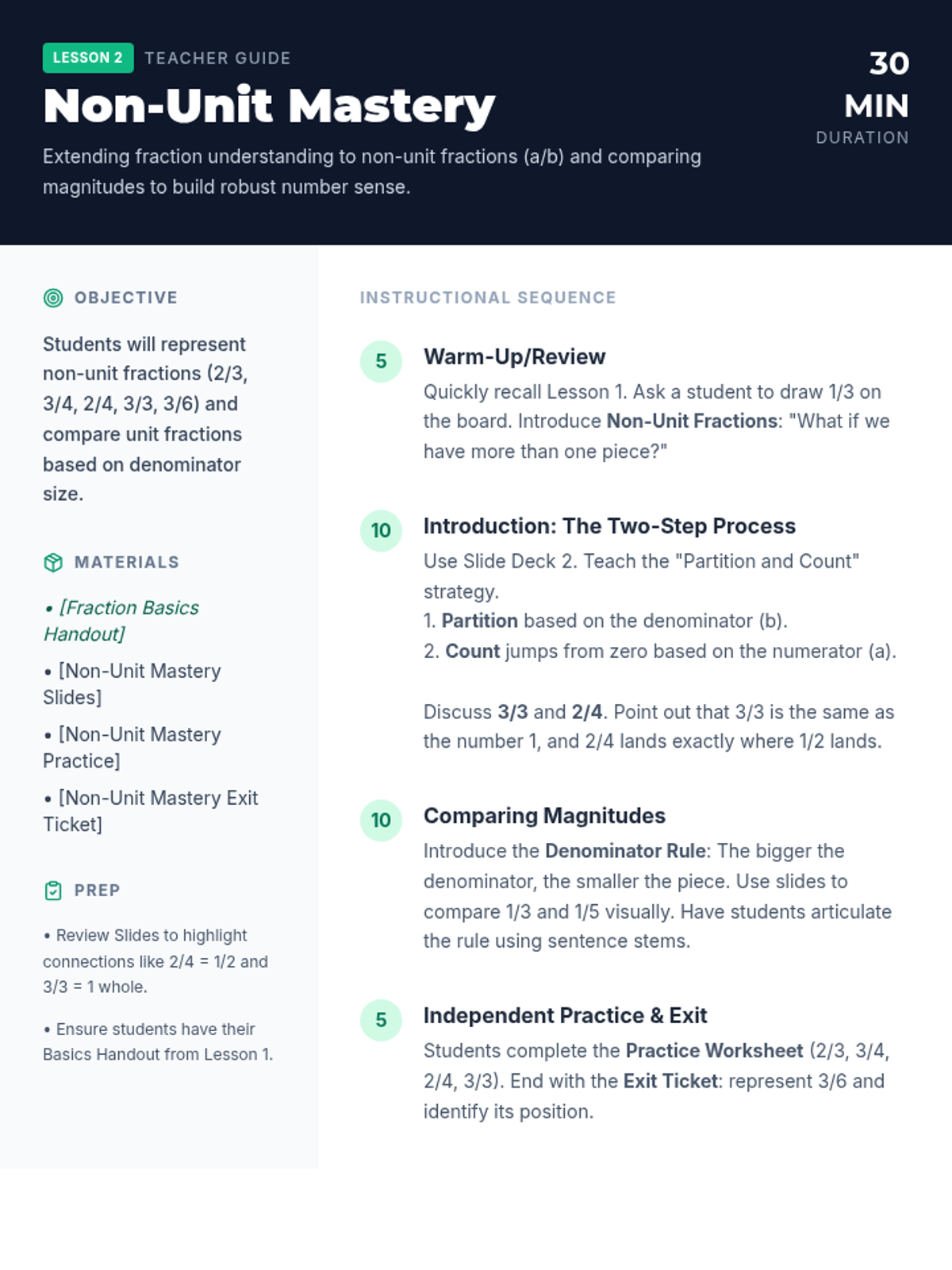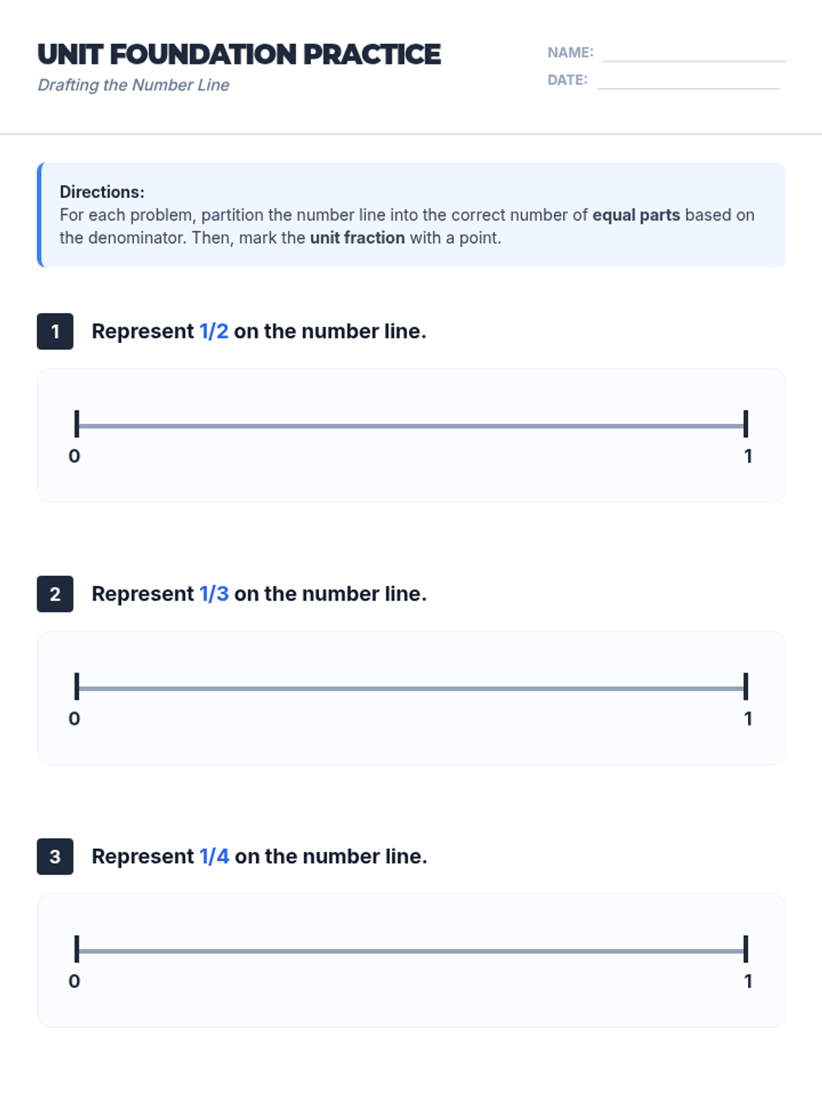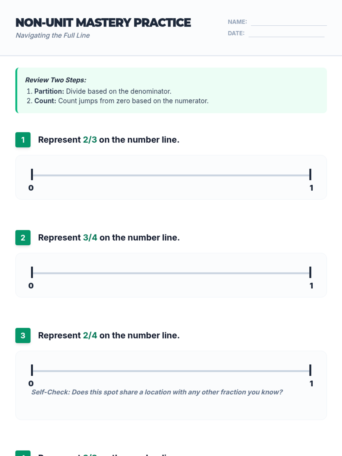 A comprehensive two-part lesson sequence designed for Grade 4 Tier 2 small group instruction to master representing unit and non-unit fractions on a number line. Students progress from defining the fractional 'whole' and practicing precision partitioning to locating and comparing complex fractions.