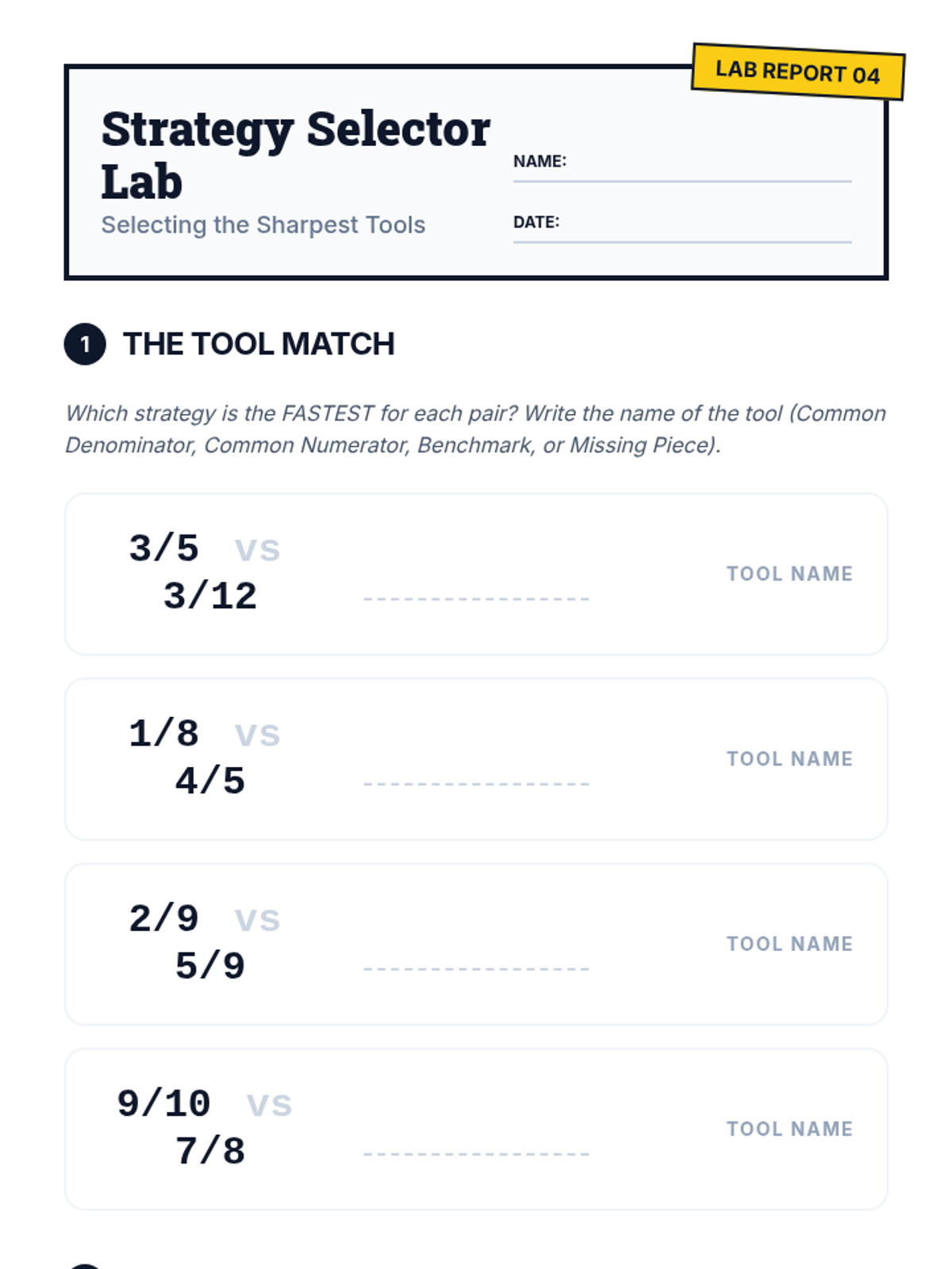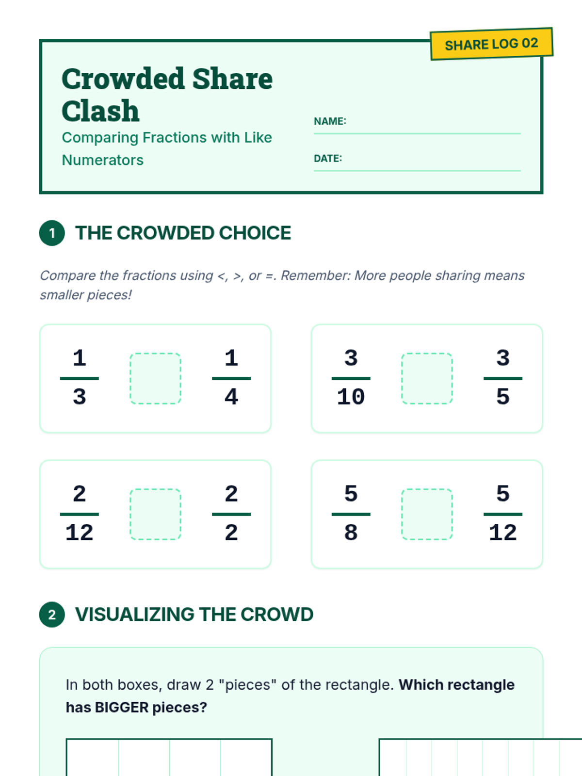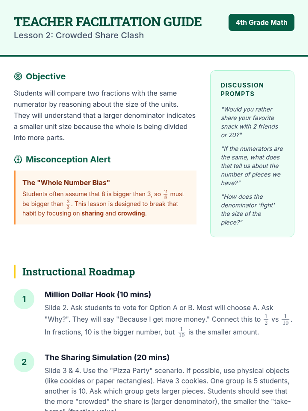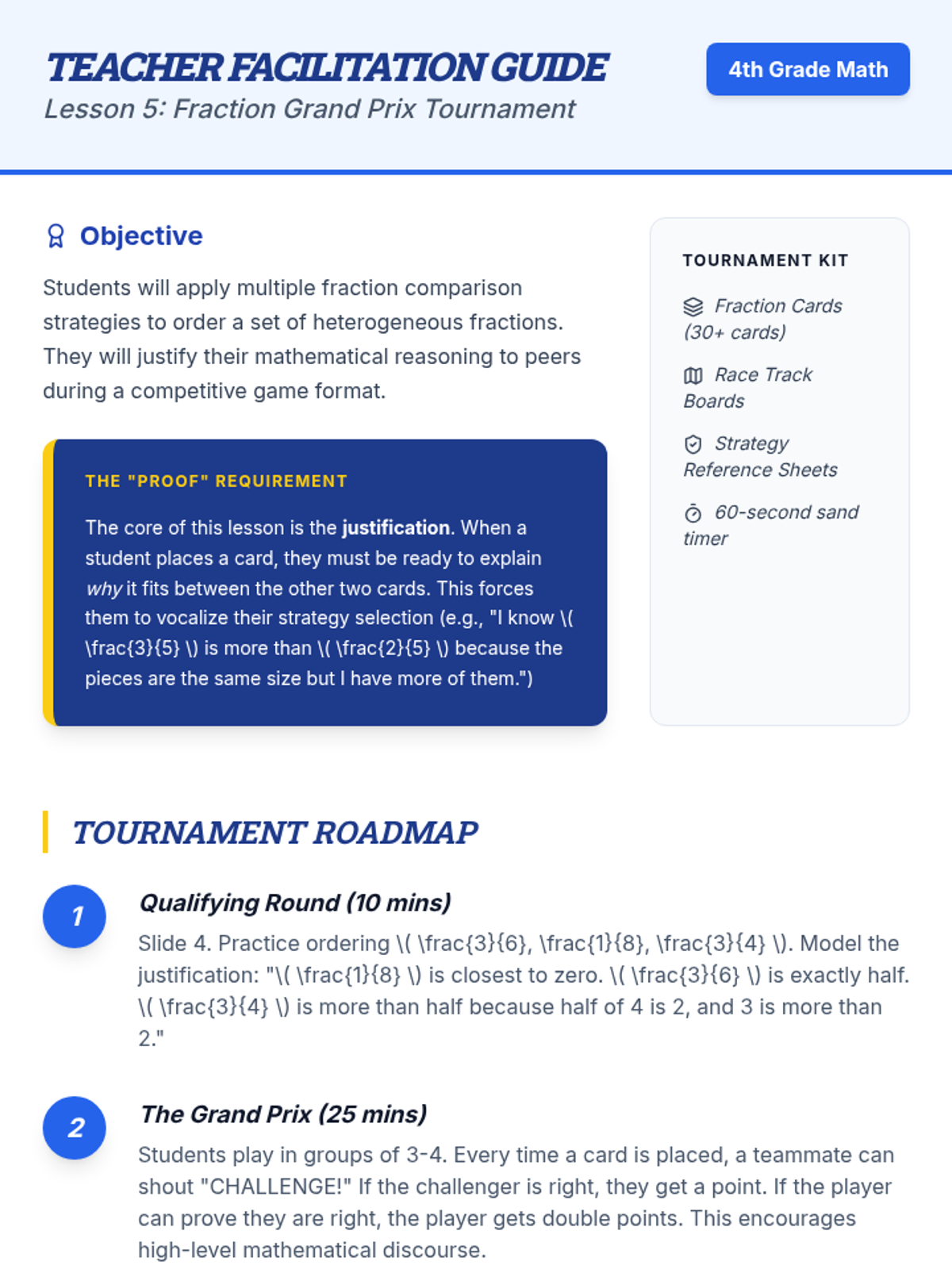 A comprehensive sequence for 4th graders to master comparing and ordering fractions using reasoning strategies like common denominators, common numerators, and benchmark fractions. Students move from basic like-denominator comparisons to complex heterogeneous fraction ordering.
