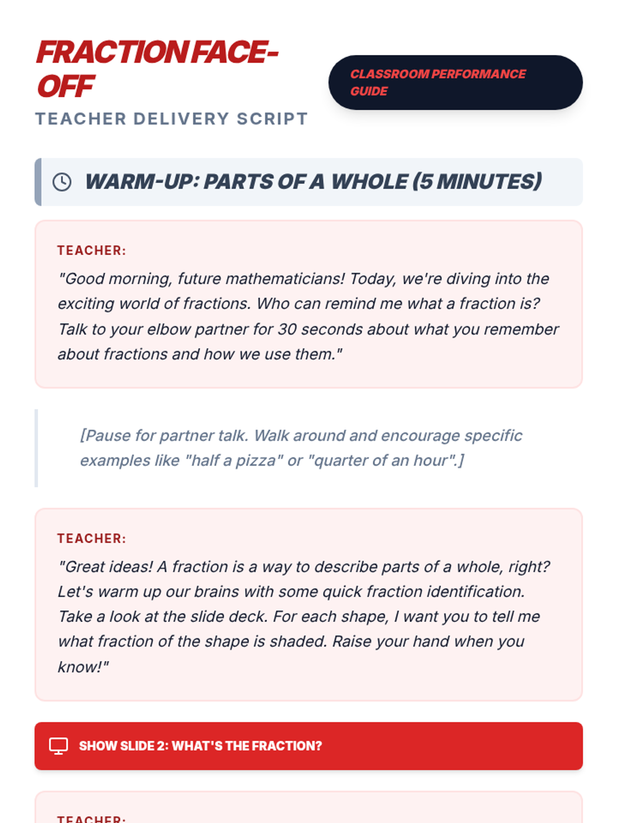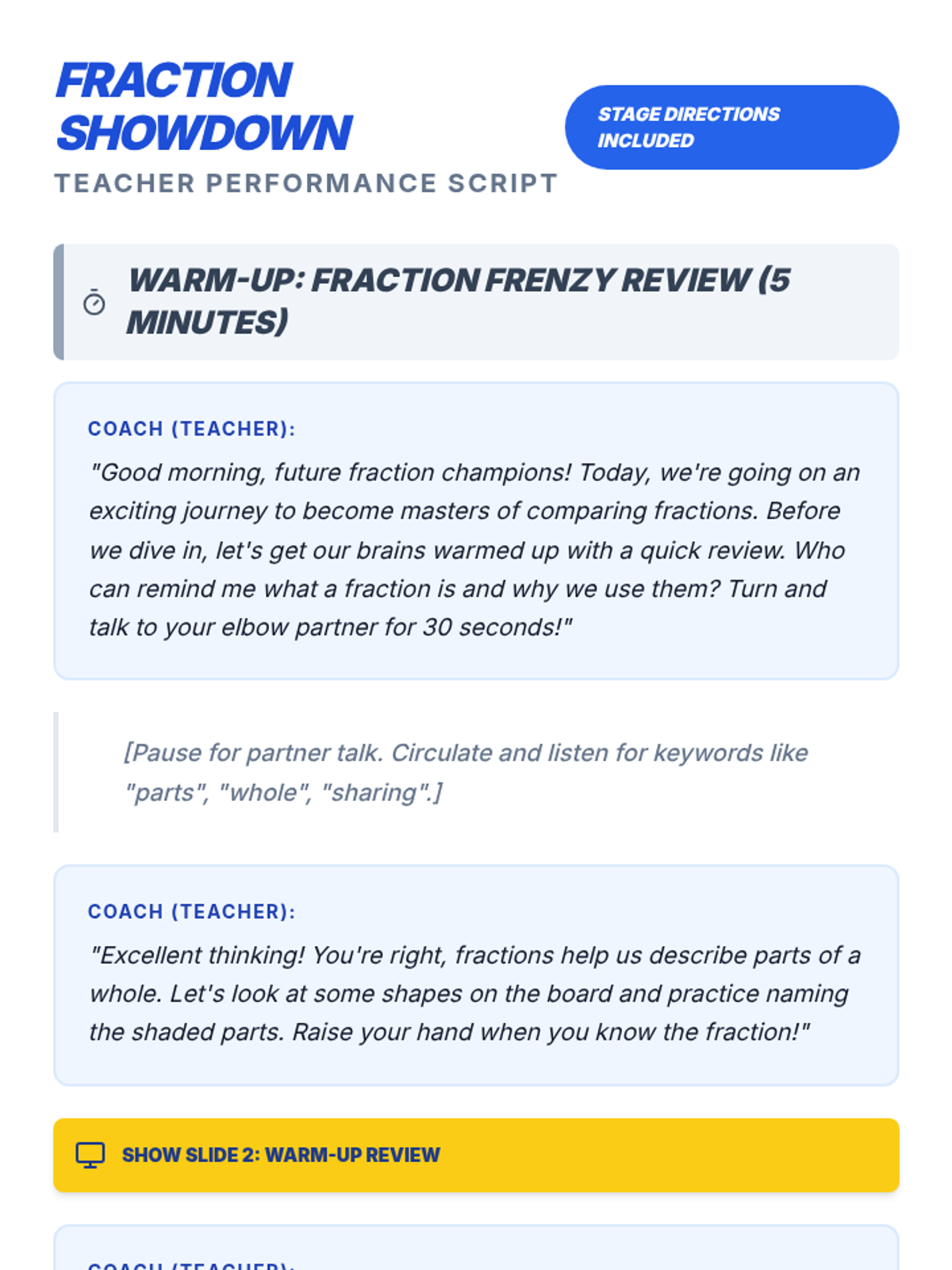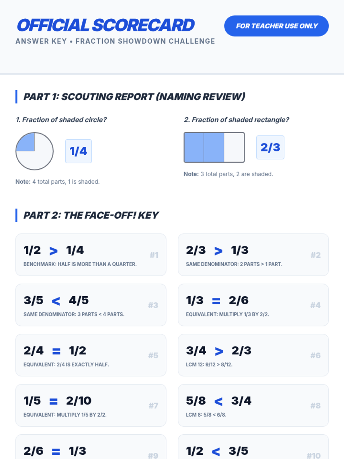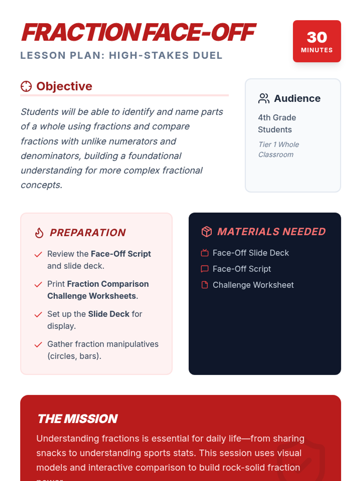 A comprehensive two-part sequence for 4th-grade students to master naming and comparing fractions with unlike denominators through modeling, guided practice, and high-energy showdown activities.