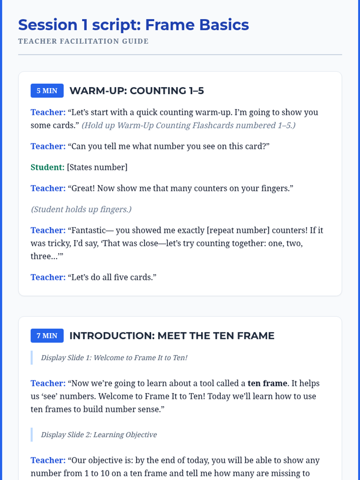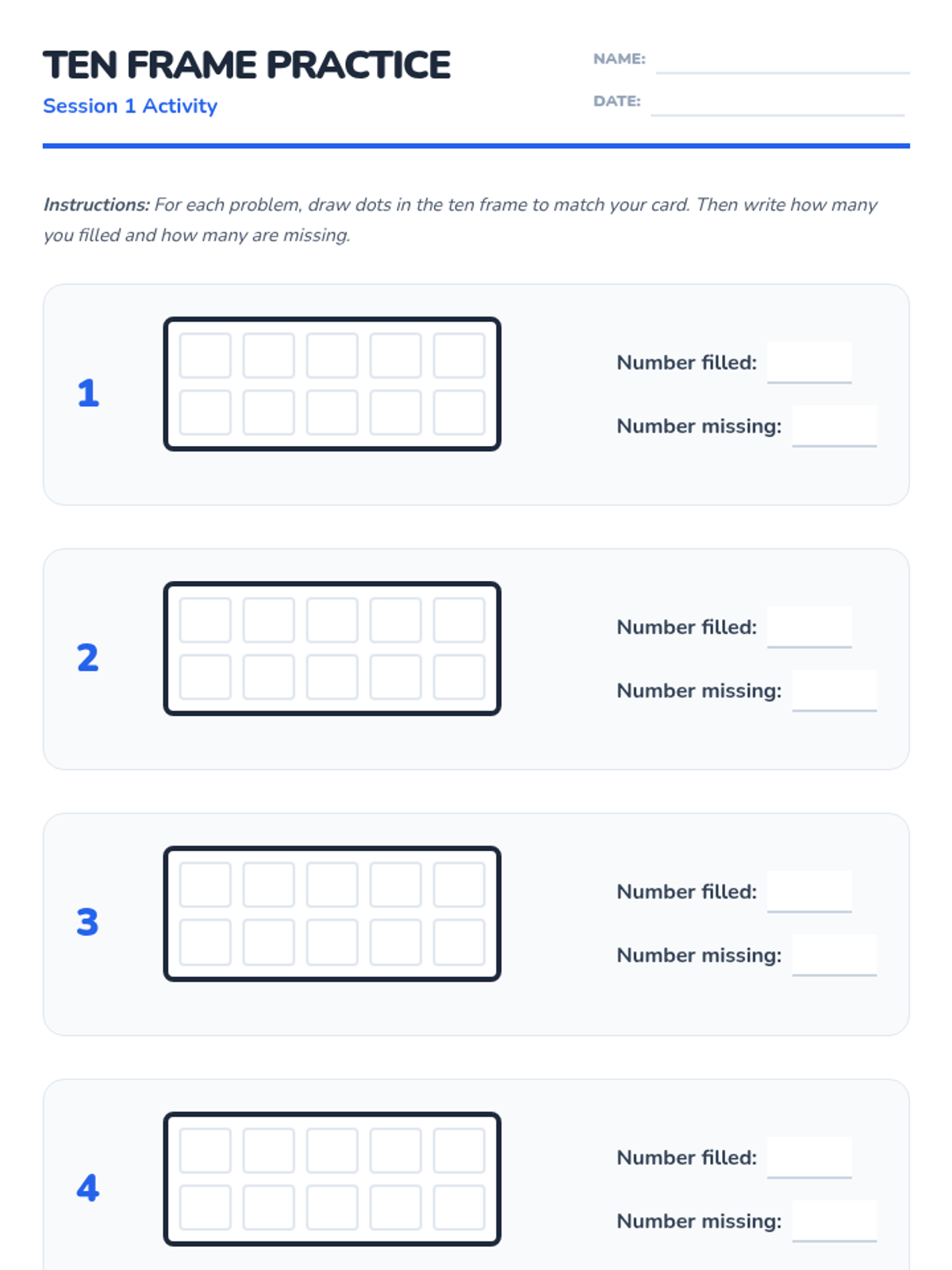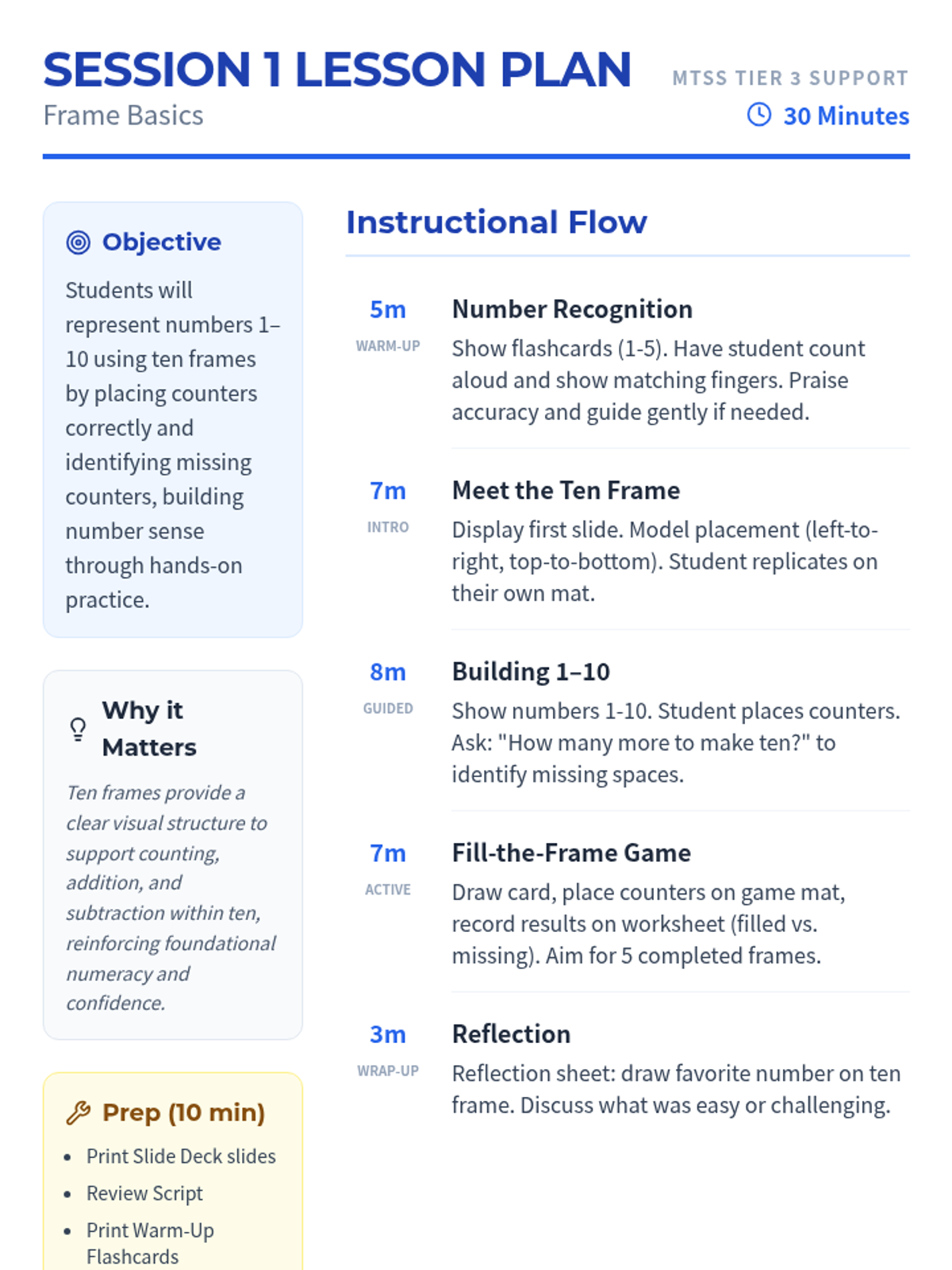 A two-session mini-unit designed for 2nd grade EC students to master the ten frame. Students build foundational number sense, subitizing skills, and early addition and subtraction fluency through hands-on practice.