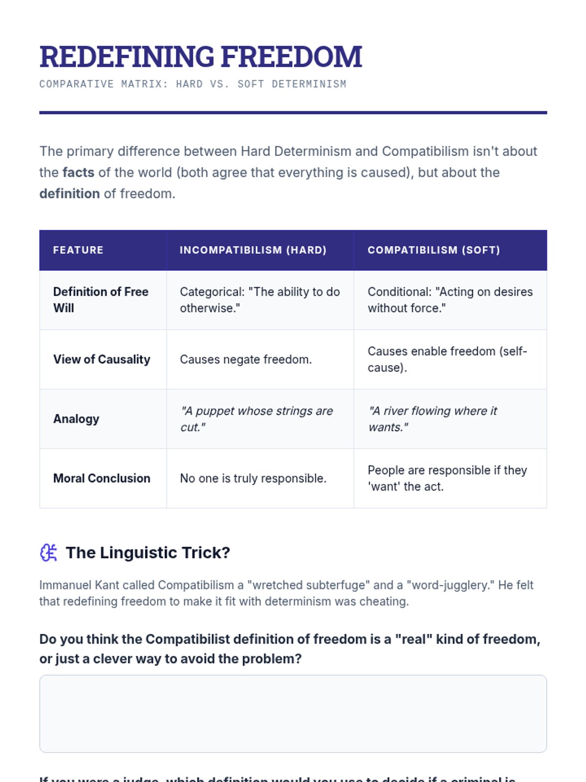This sequence explores the metaphysical and ethical dimensions of the free will debate, moving from hard determinism to compatibilism, libertarianism, and the implications of neuroscience on moral responsibility.
