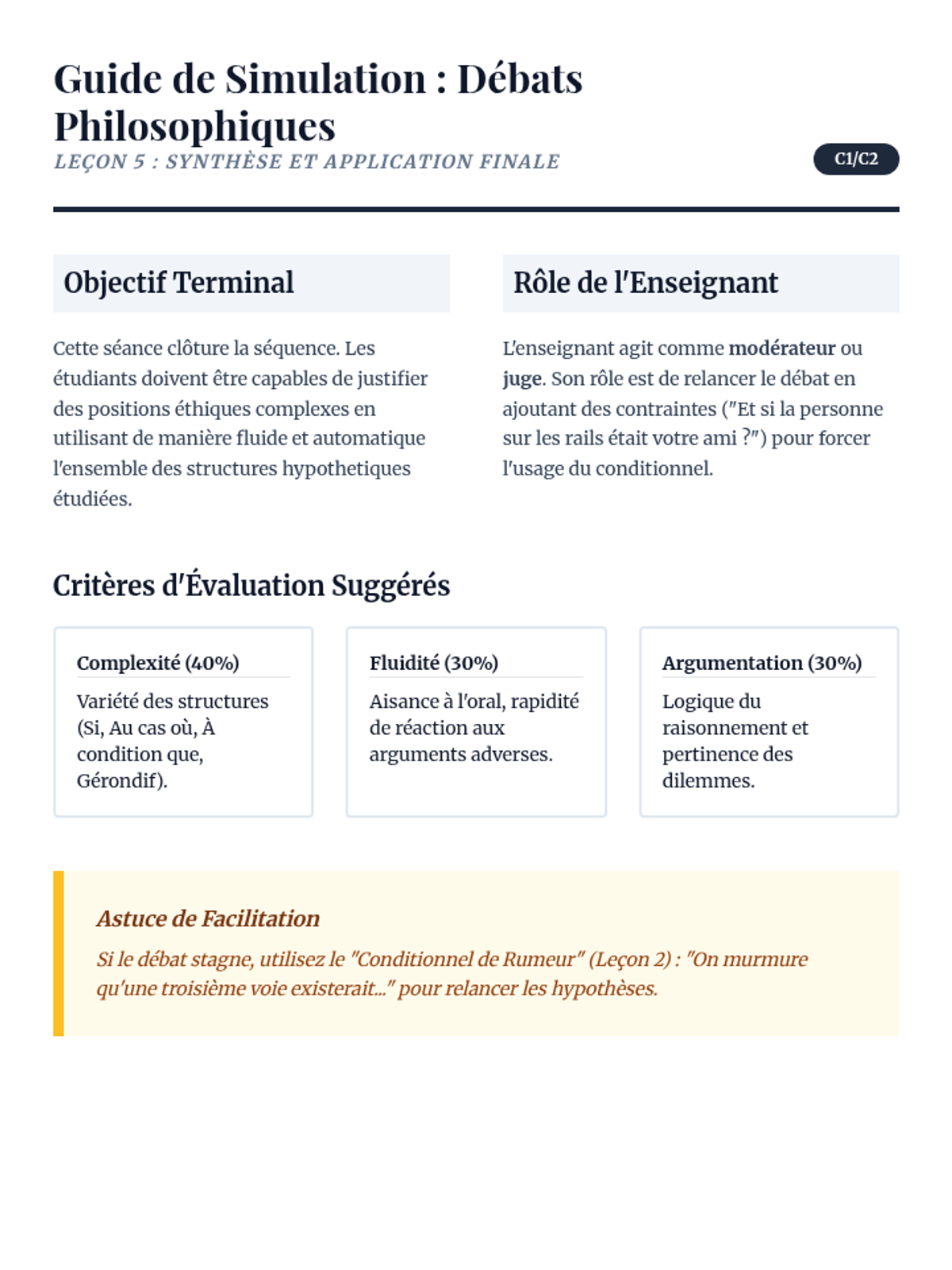 A comprehensive exploration of hypothetical structures in French, moving from basic 'si' clauses to complex expressions of regret, media nuance, and formal conditions. Designed for undergraduate students to master the nuances of causality and abstract reasoning.
