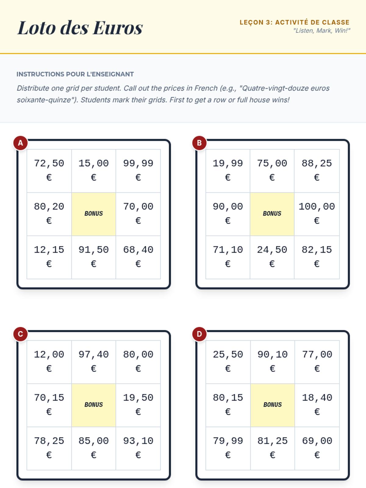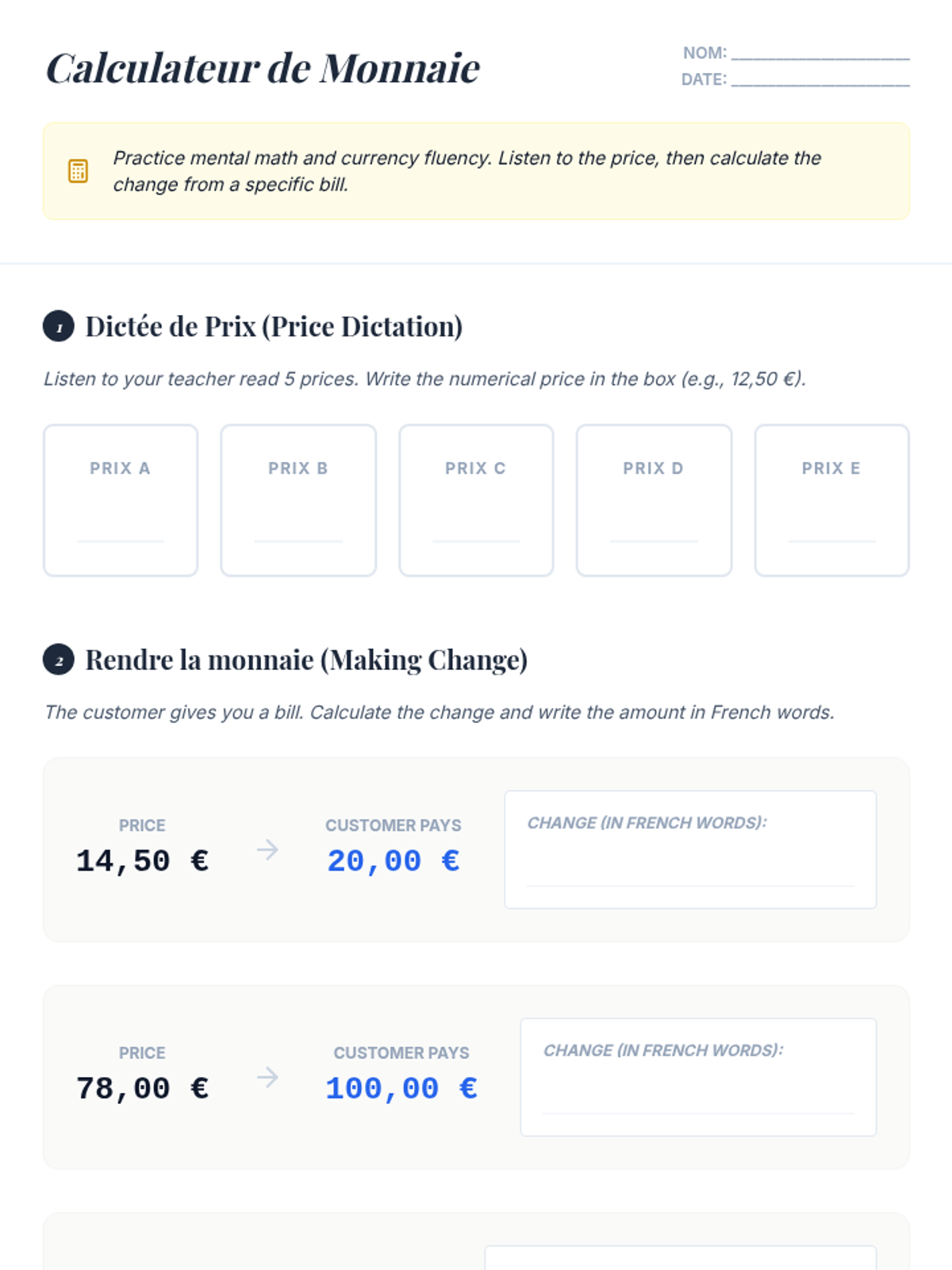 This sequence guides beginner French students through the pragmatic language of commerce, focusing on café and market interactions. Students progress from vocabulary and grammar basics to complex role-plays involving cultural politeness scripts and problem-solving.