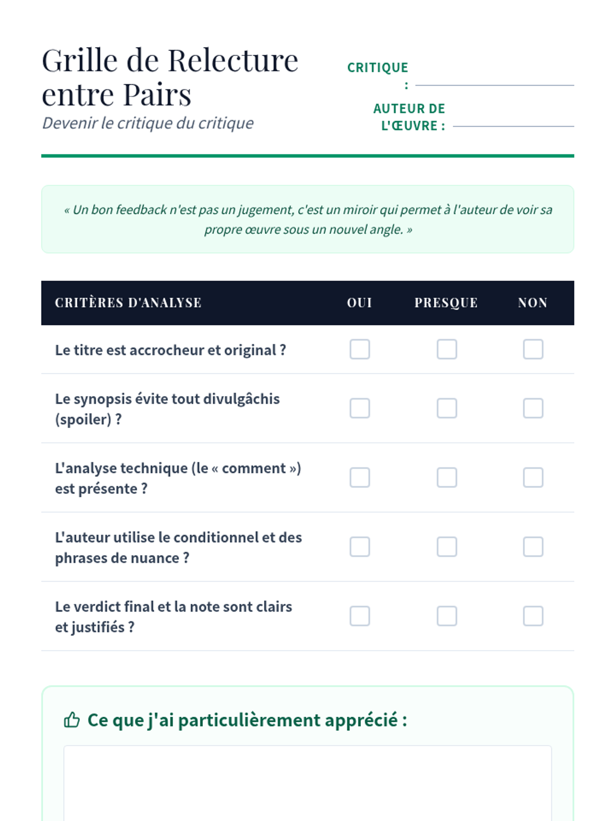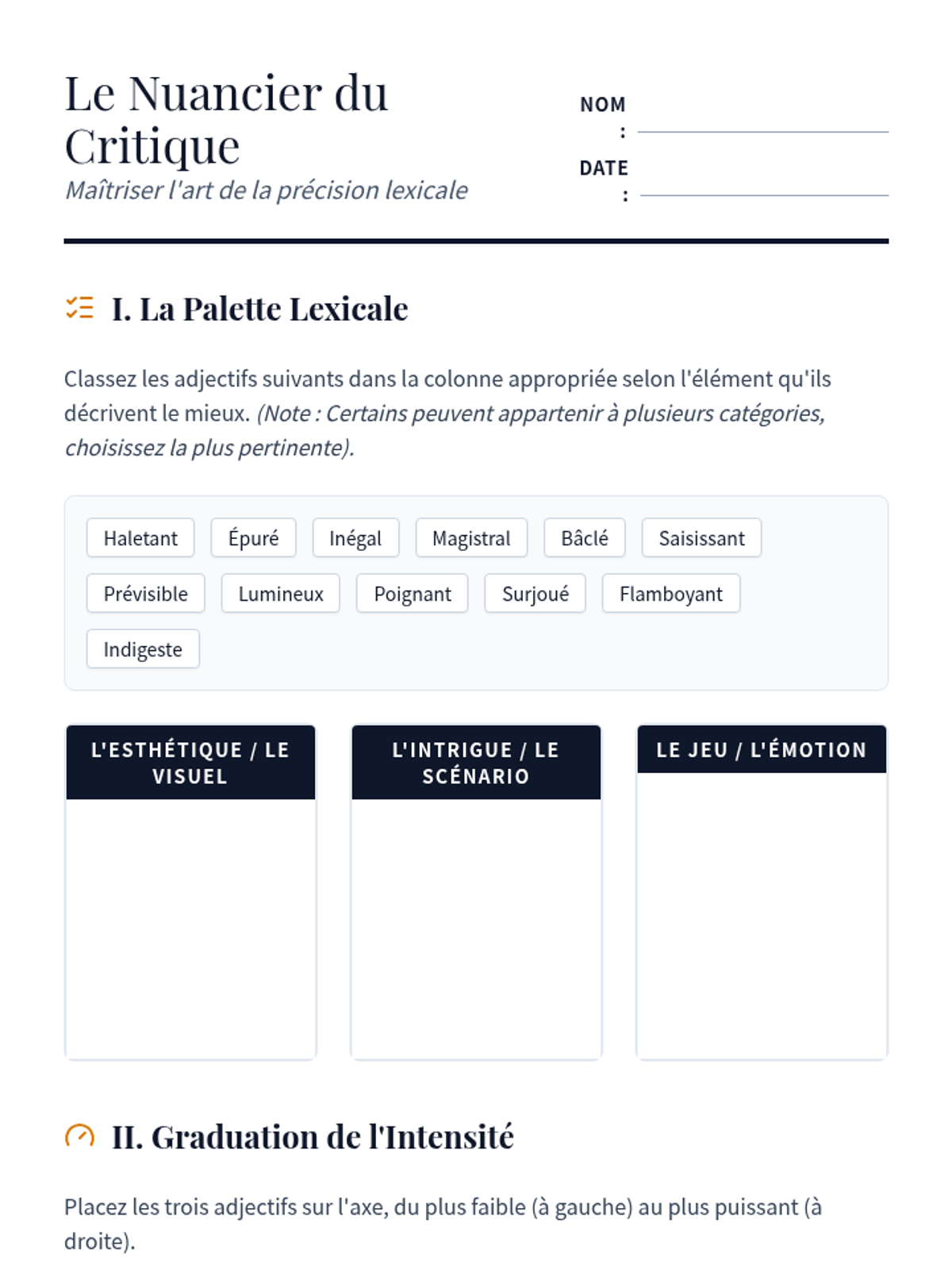 A comprehensive sequence for advanced French students to master the art of critical review and cultural analysis. Students move from basic vocabulary to sophisticated structural and grammatical techniques for critiquing film, literature, and art.
