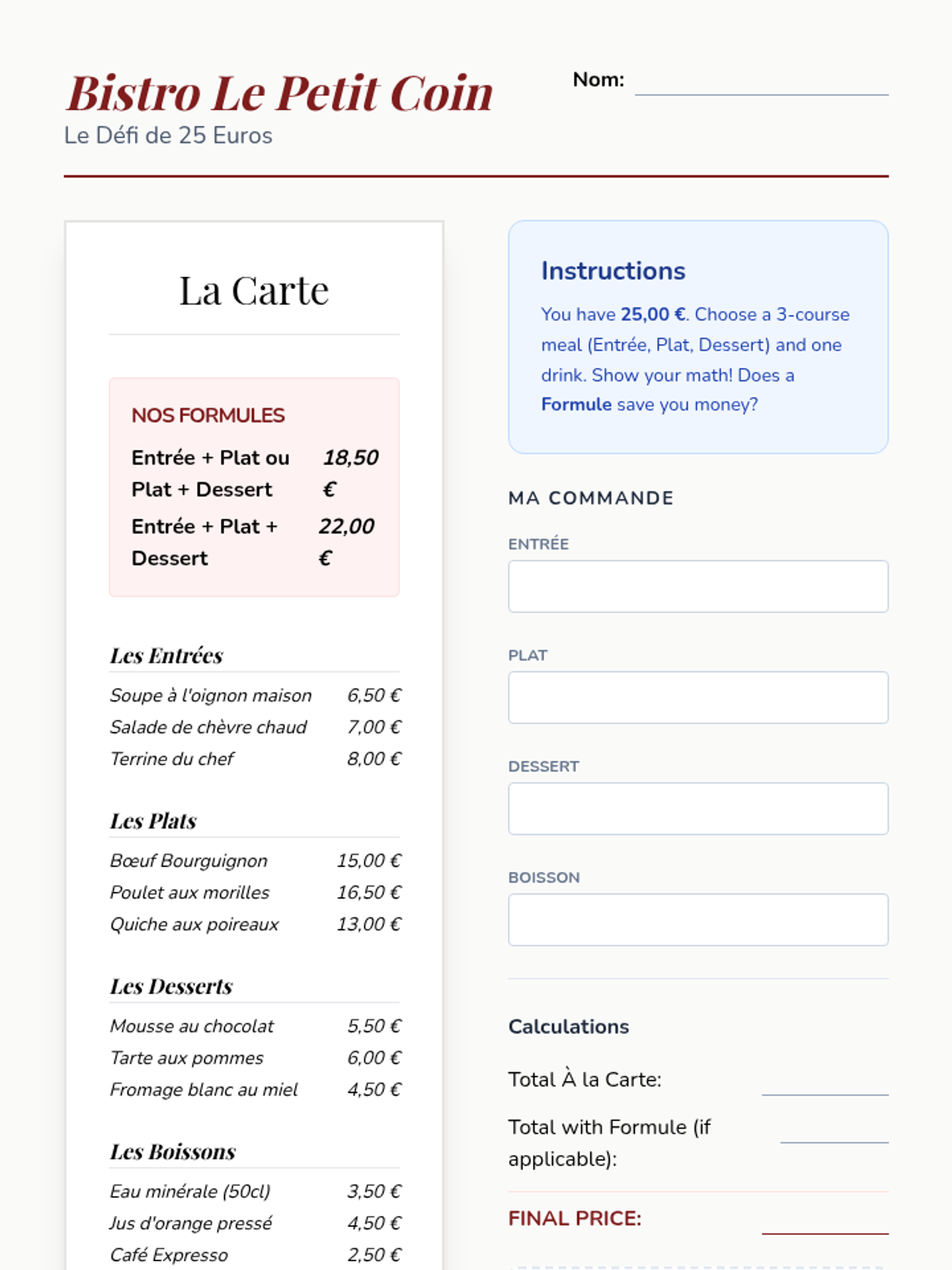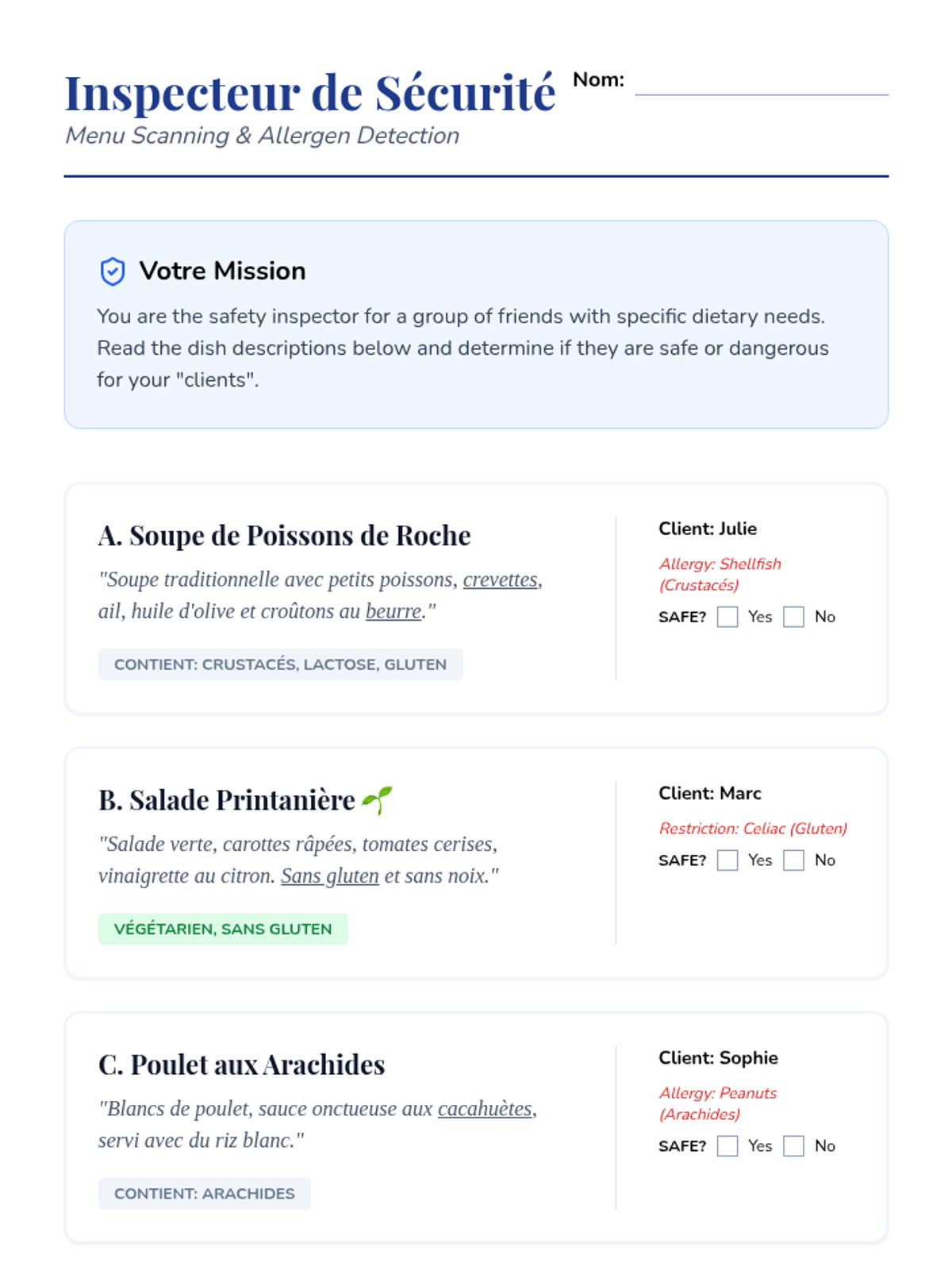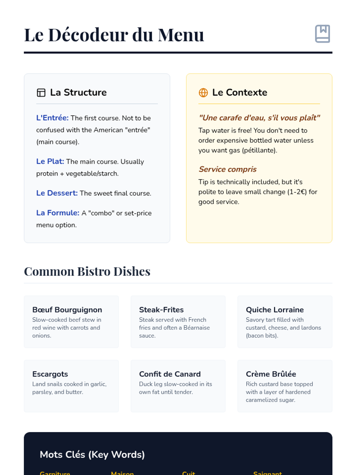 A cultural literacy sequence for beginner French students focusing on navigating the culinary world of France through text, from market lists to restaurant reviews. Students develop reading skills while exploring cultural norms around food and dining.