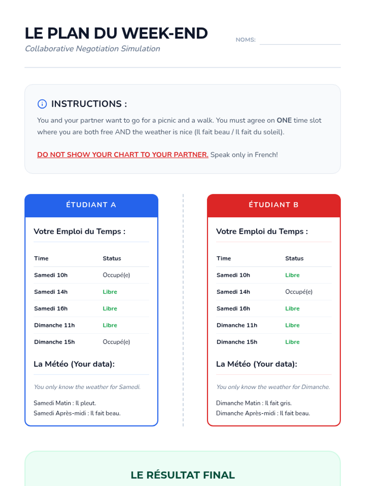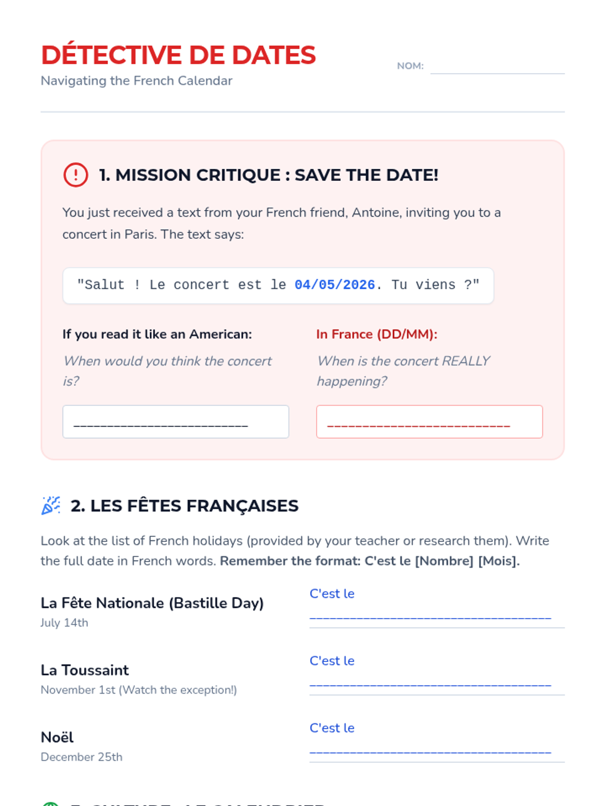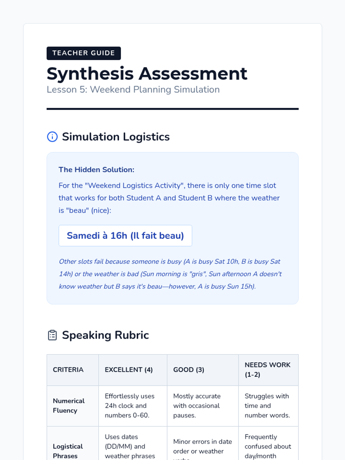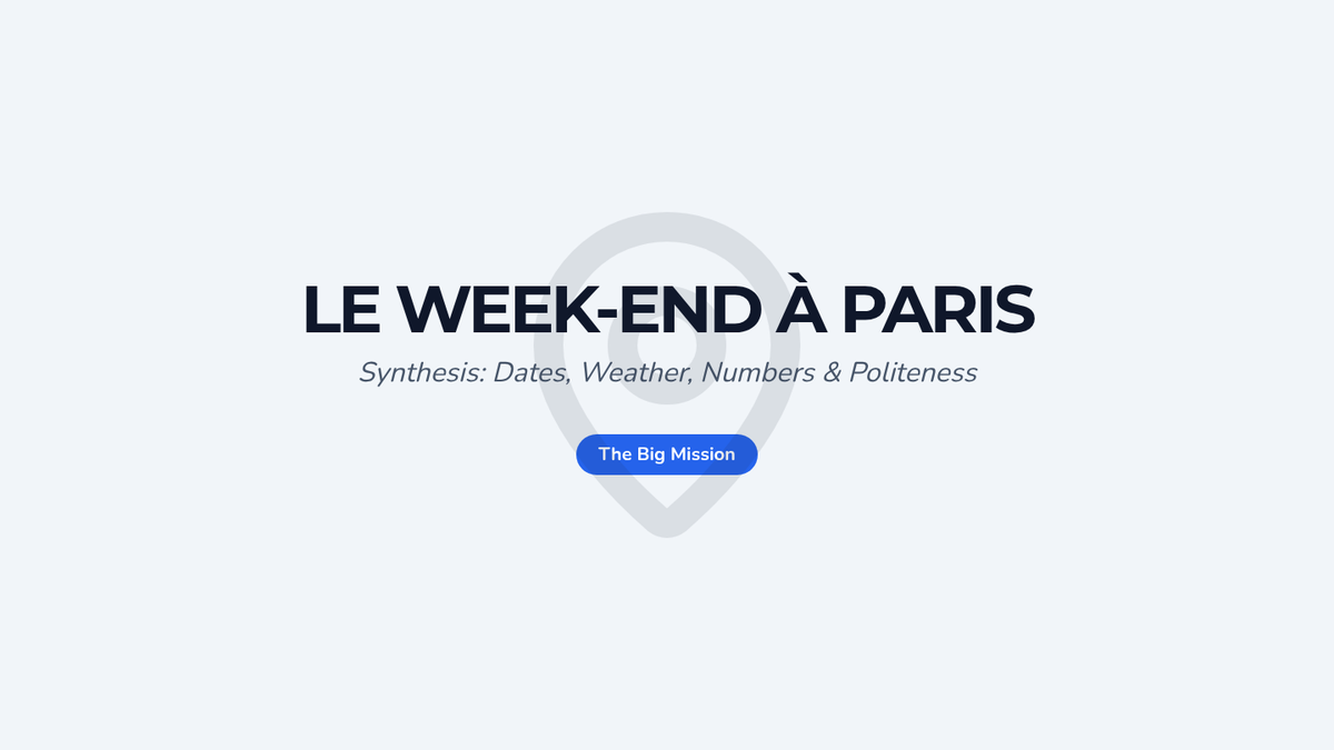 A beginner French sequence for 10th graders focusing on essential 'survival' skills: numbers, currency, dates, weather, and polite social interactions. Students build toward a real-world simulation of negotiating plans with a friend.