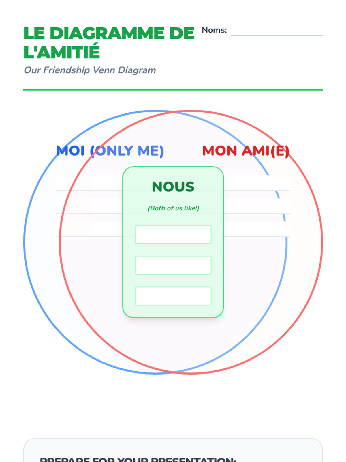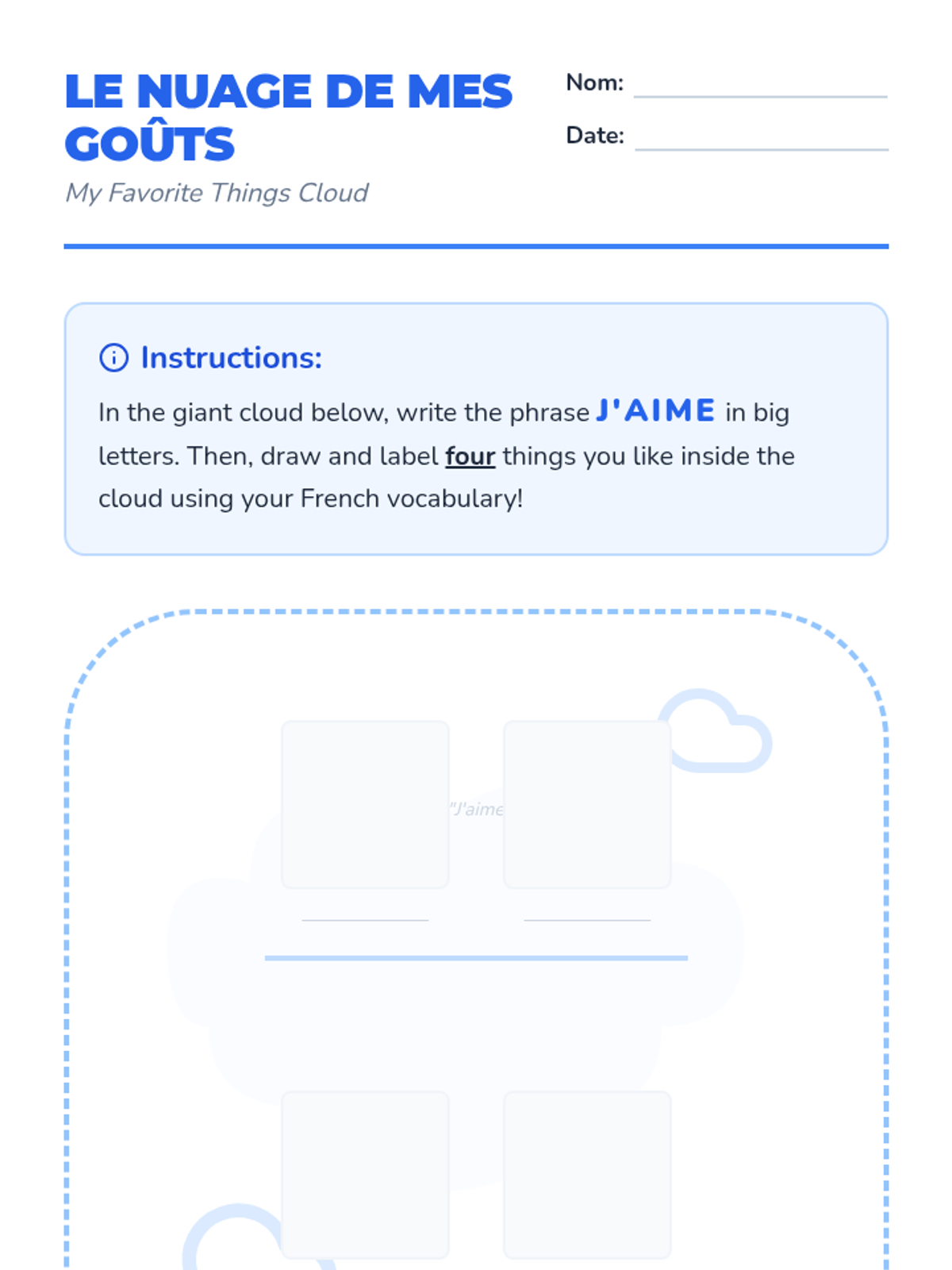 Students move beyond simple introductions to expressing personal identity, preferences, and traits using the verbs 'être' and 'aimer'. The project-based learning arc culminates in the creation of a 'Star Student' poster where students present who they are in French.