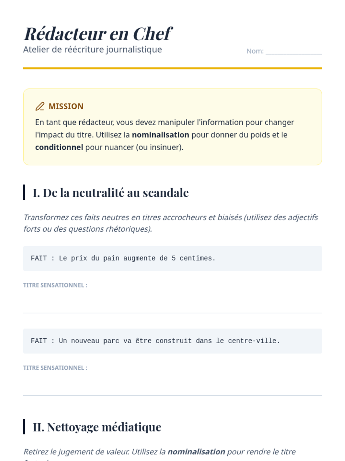 This sequence immerses graduate students in the landscape of contemporary French journalism, focusing on current events and social debates. Students move from identifying the structural components of news articles to analyzing complex opinion pieces and synthesizing multiple perspectives on sensitive topics like secularism.