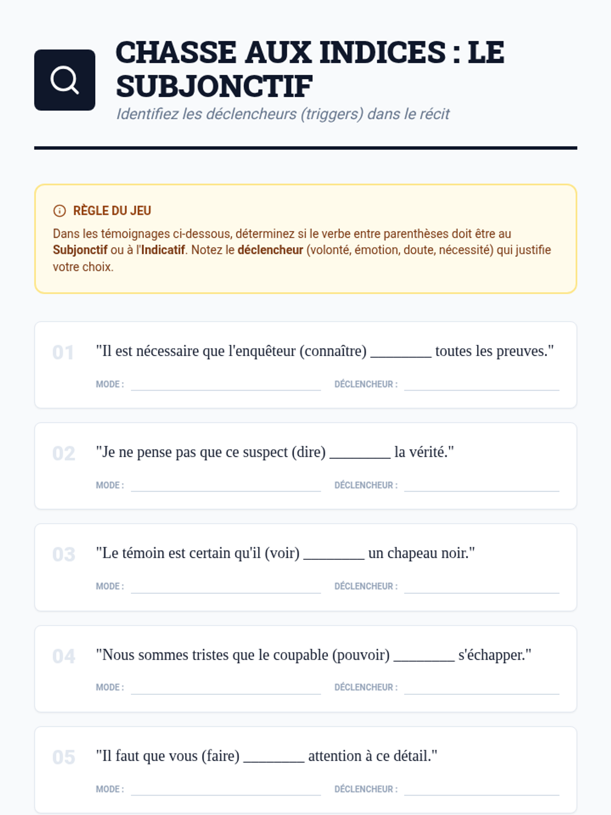 This project-based workshop guides advanced Spanish students through compound tenses by constructing a multi-layered narrative. Students master the present perfect, pluperfect, conditional perfect, and future perfect to articulate complex temporal relationships.