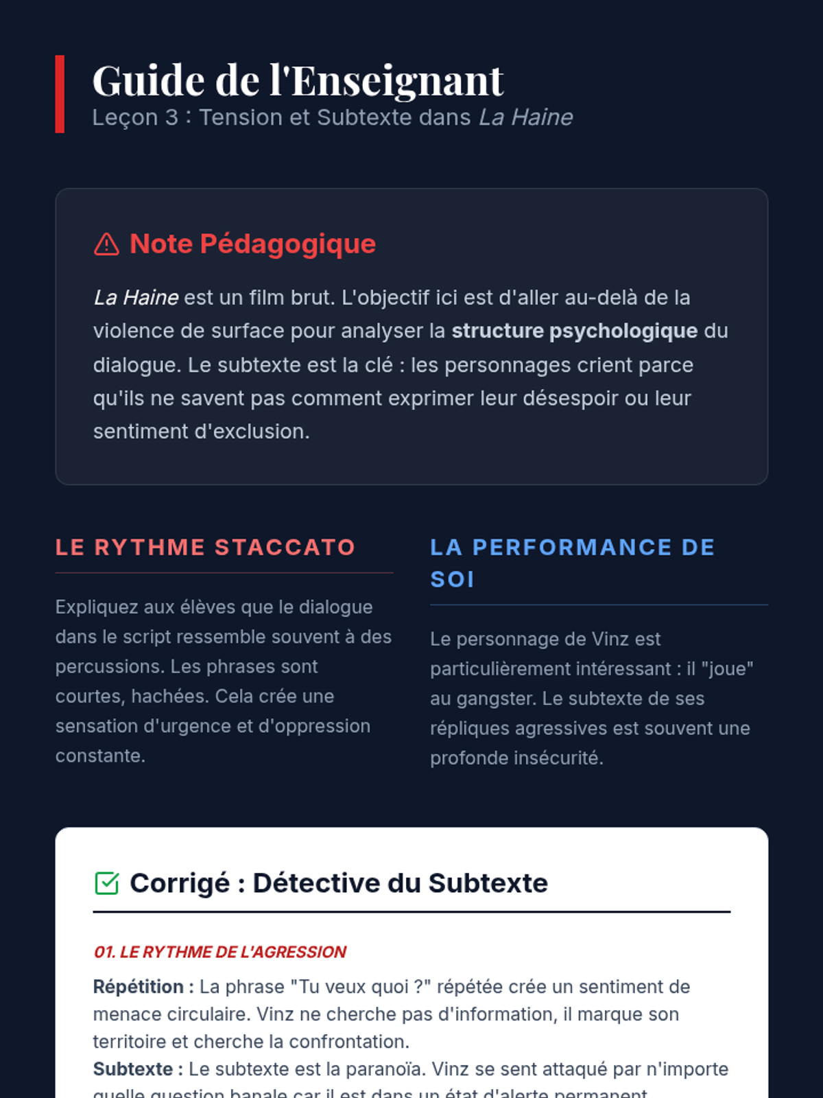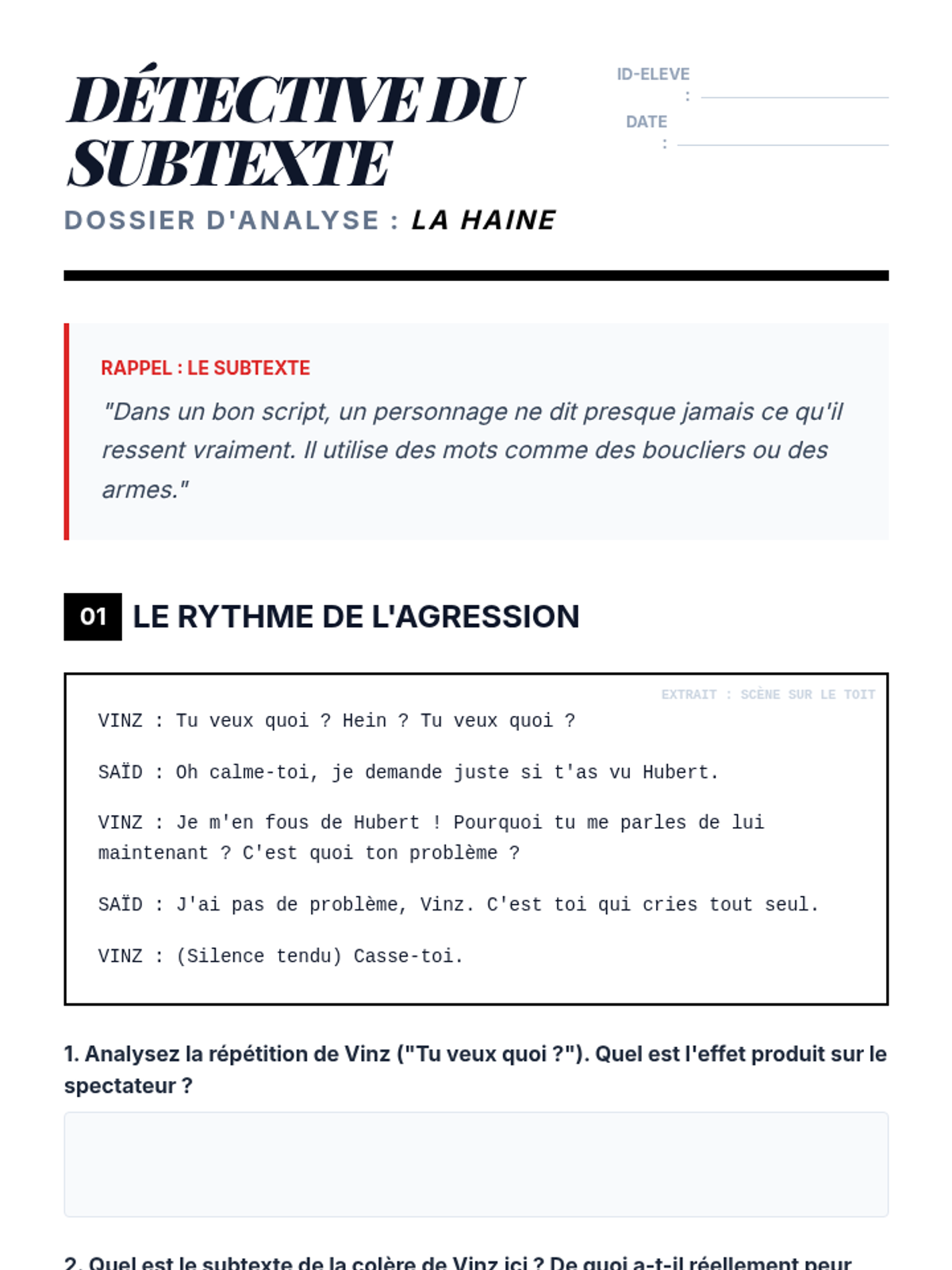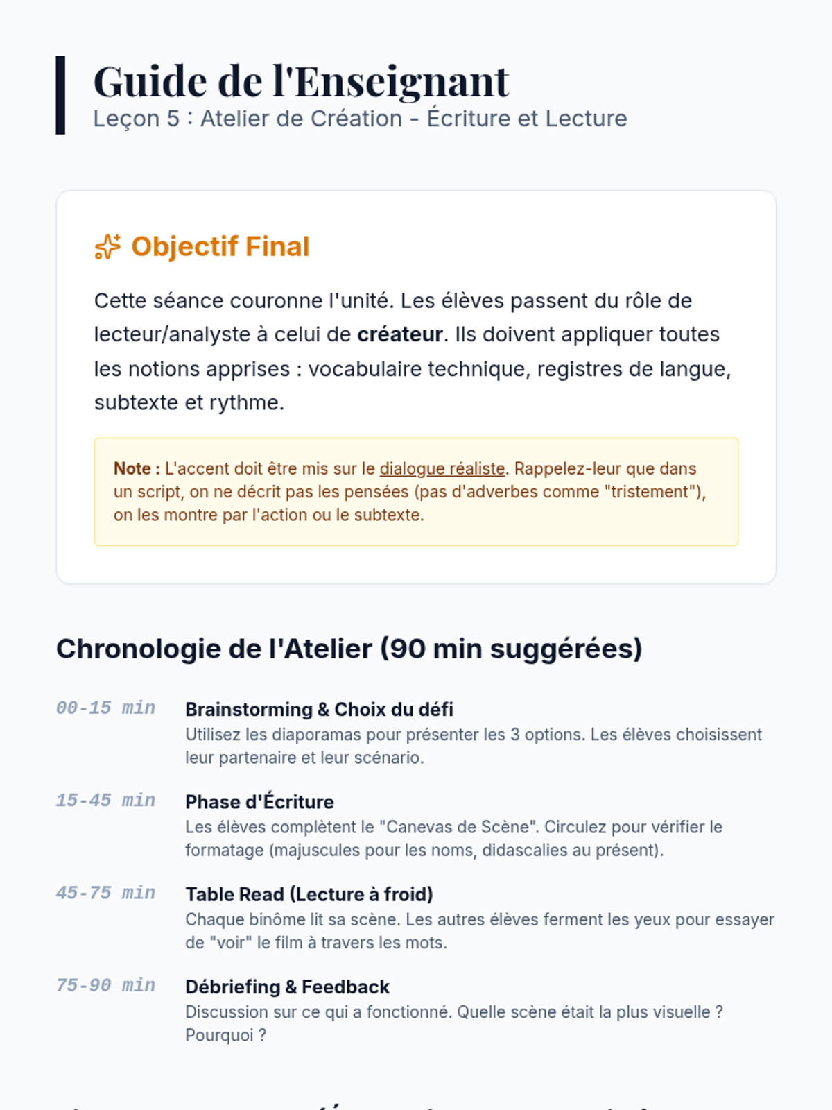 An advanced French reading unit exploring the literary power of screenplays. Students analyze dialogue, subtext, and cultural nuance in iconic French films, bridging the gap between written text and visual storytelling.