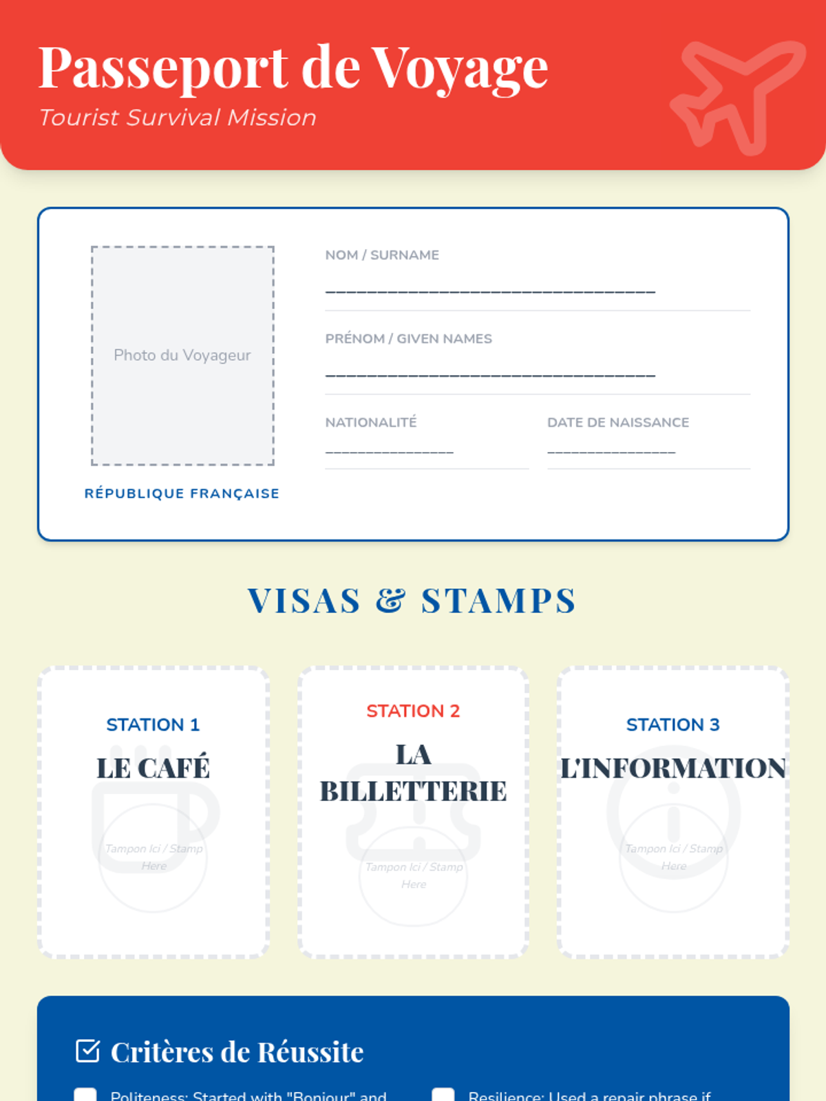 An immersive intermediate French sequence where students navigate travel scenarios in Paris, Dakar, and Montreal, mastering future, past, and conditional tenses through simulated real-world interactions.