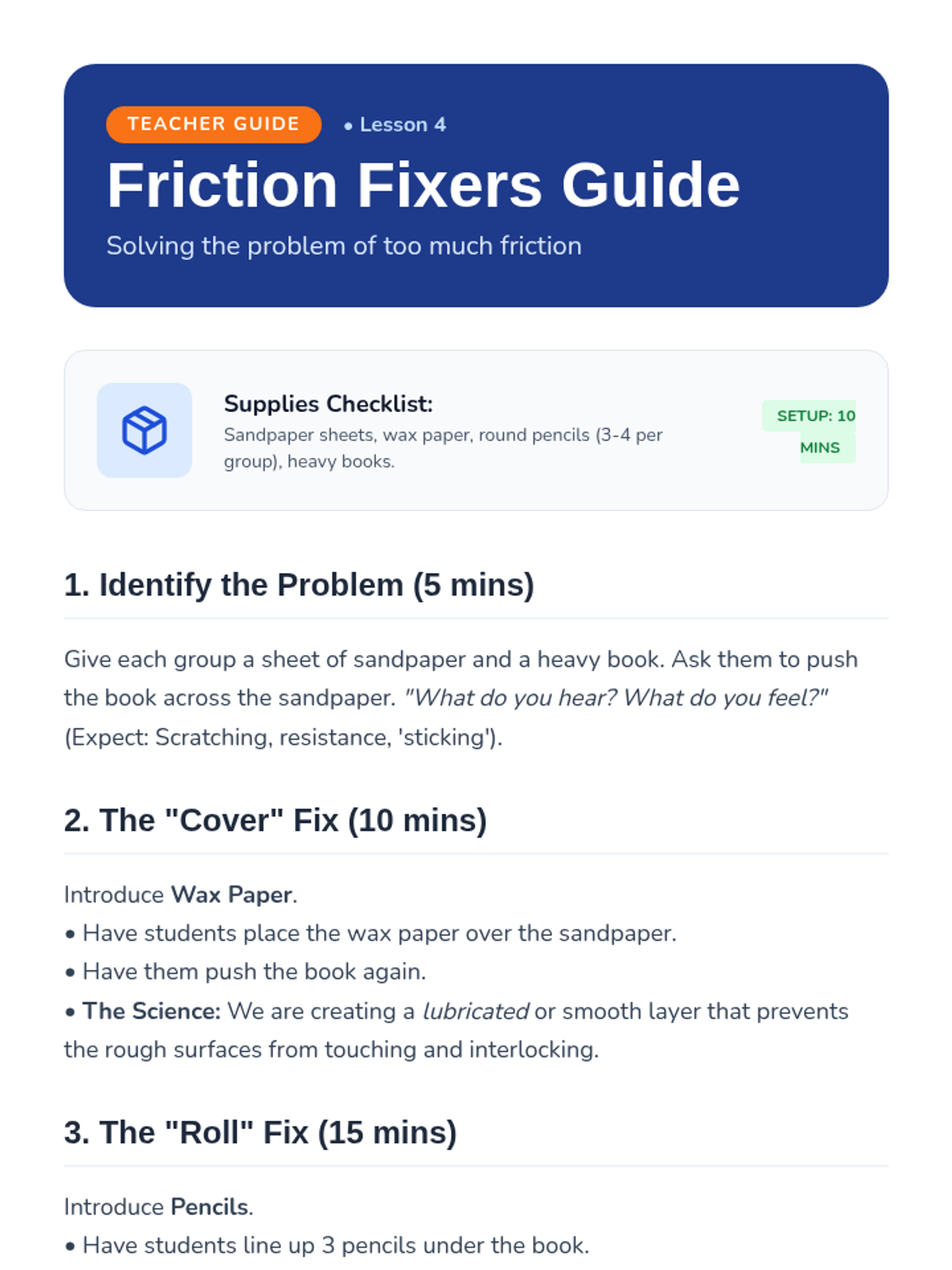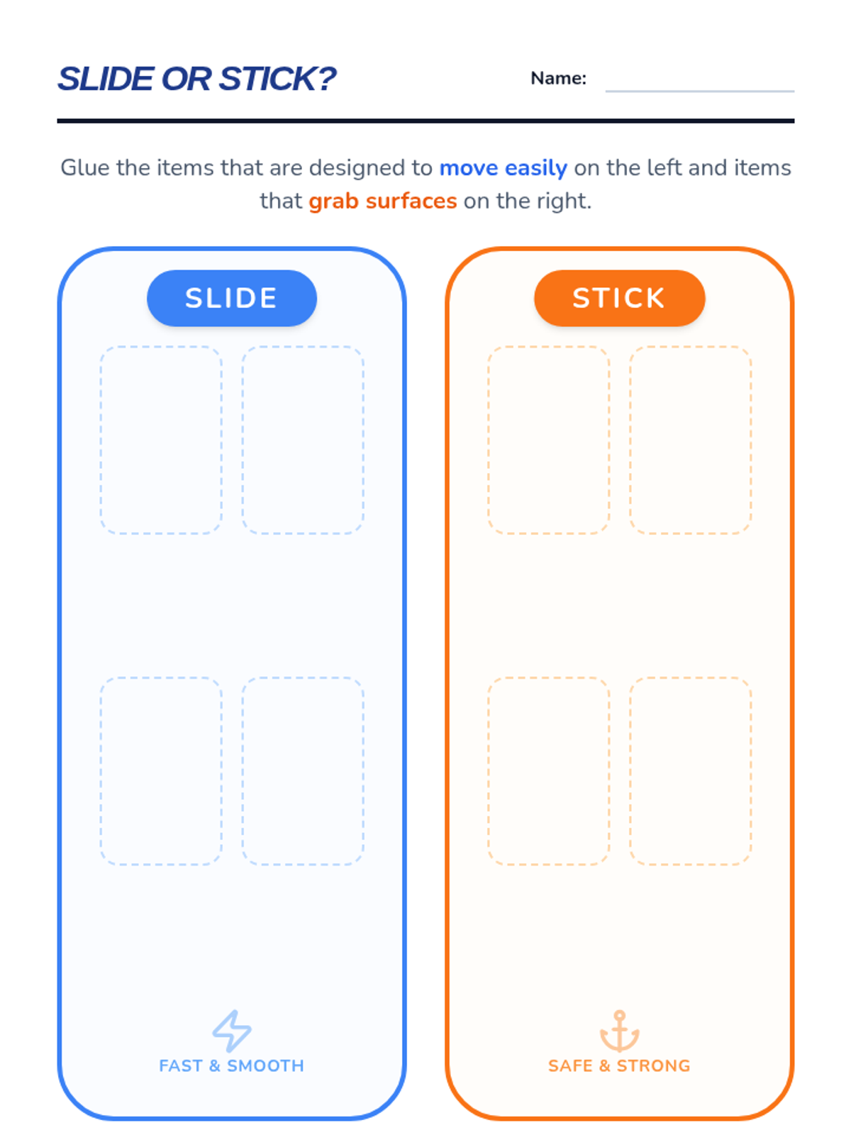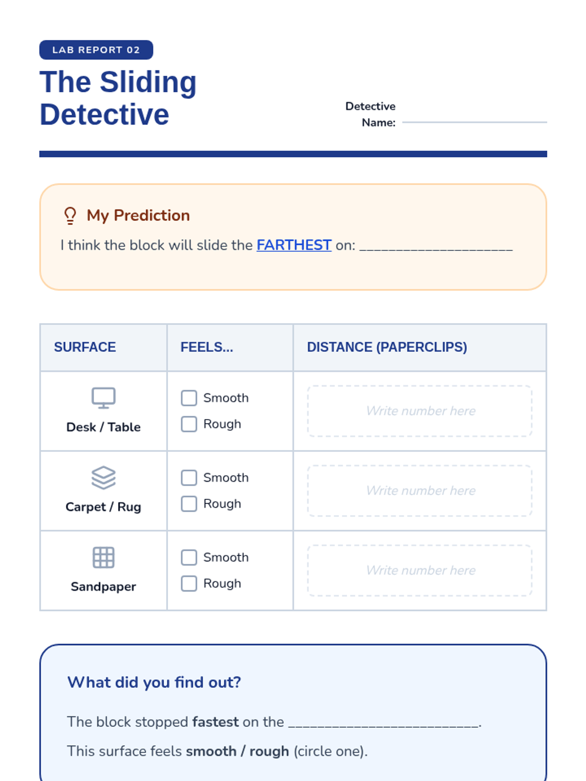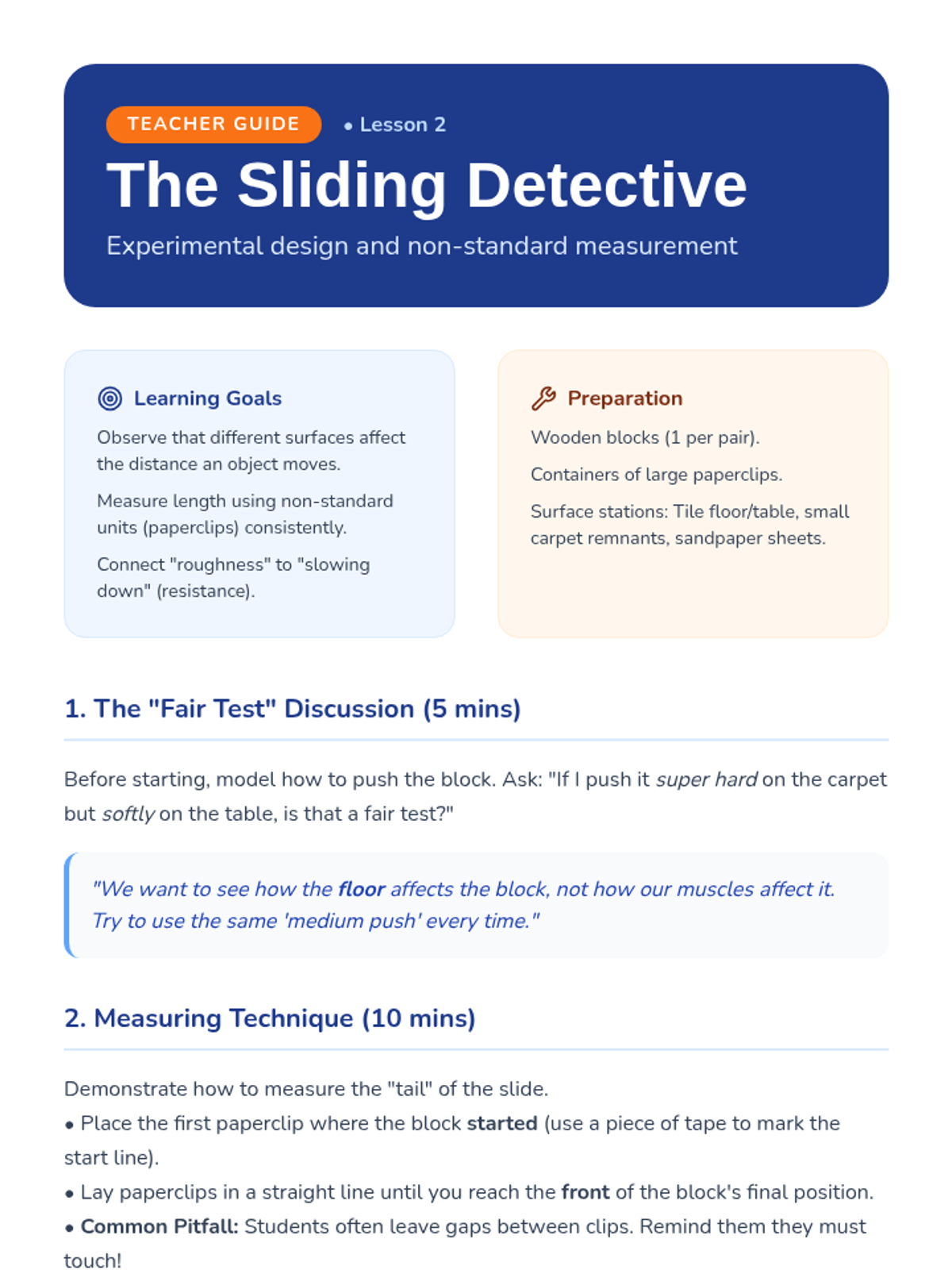 A game-based investigation into friction and surface texture for 1st-grade students. Students explore how different materials affect motion through sensory exploration, experimentation, and real-world application.