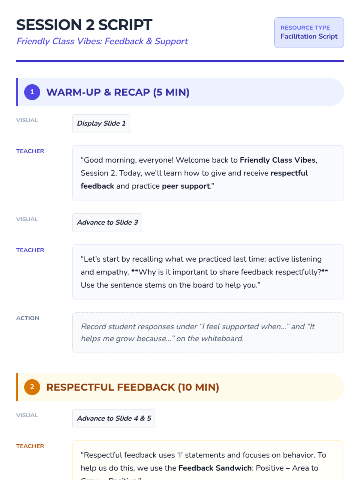 A series of lessons focused on developing essential social-emotional skills for classroom success, including conflict resolution and respectful communication.