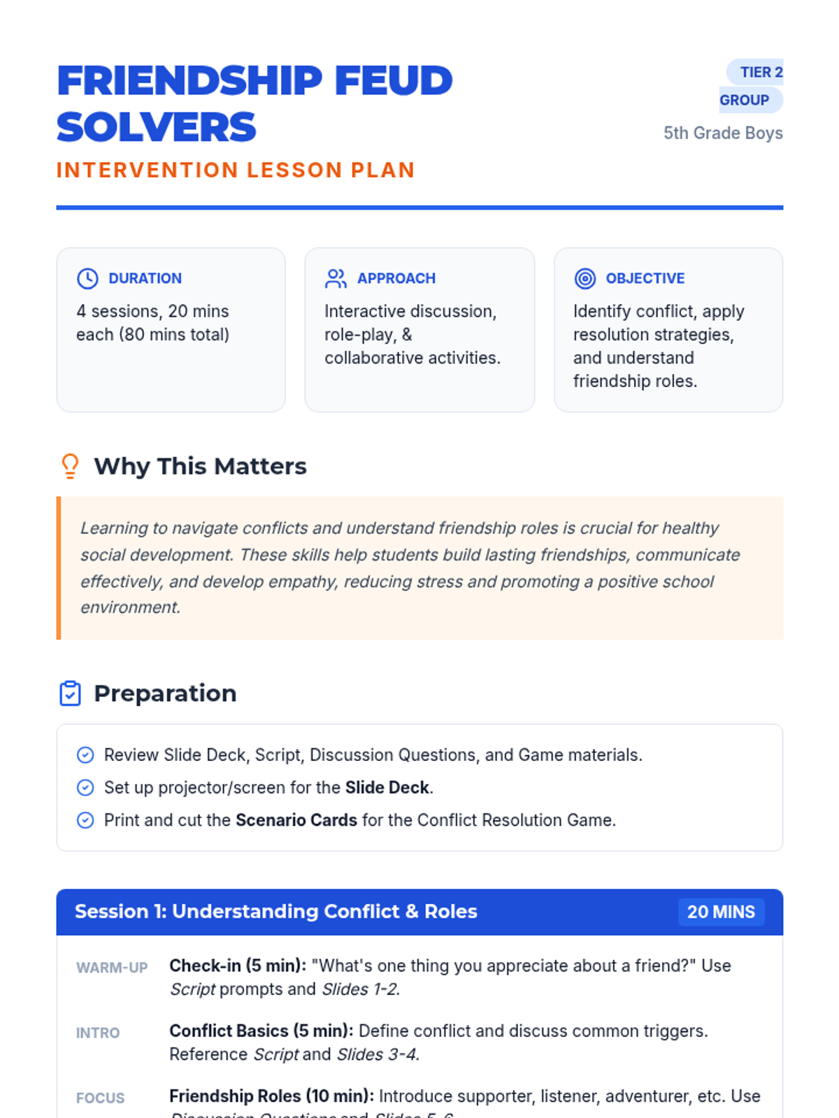 A comprehensive small-group intervention sequence designed to help students develop essential skills for navigating conflicts with friends while fostering strong, supportive relationships.