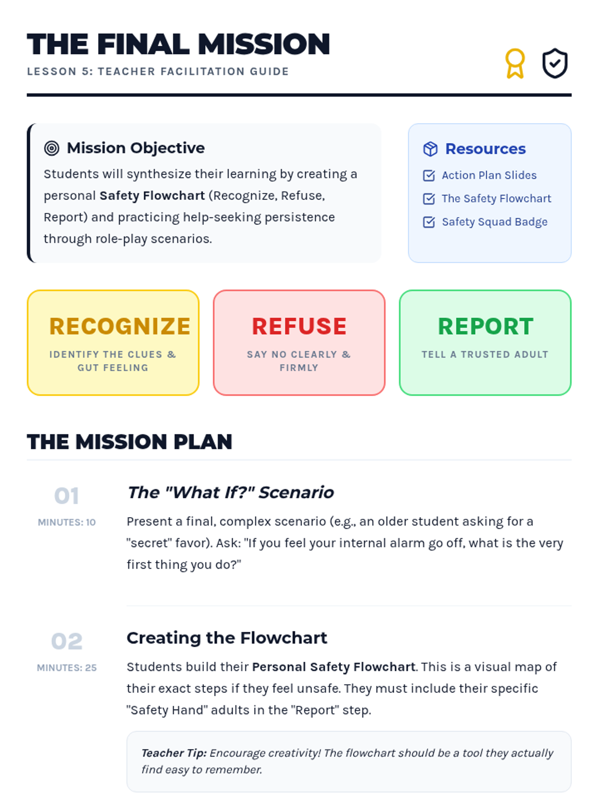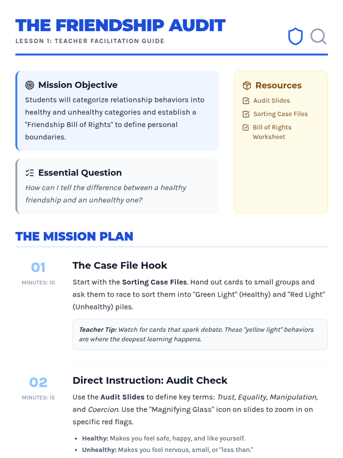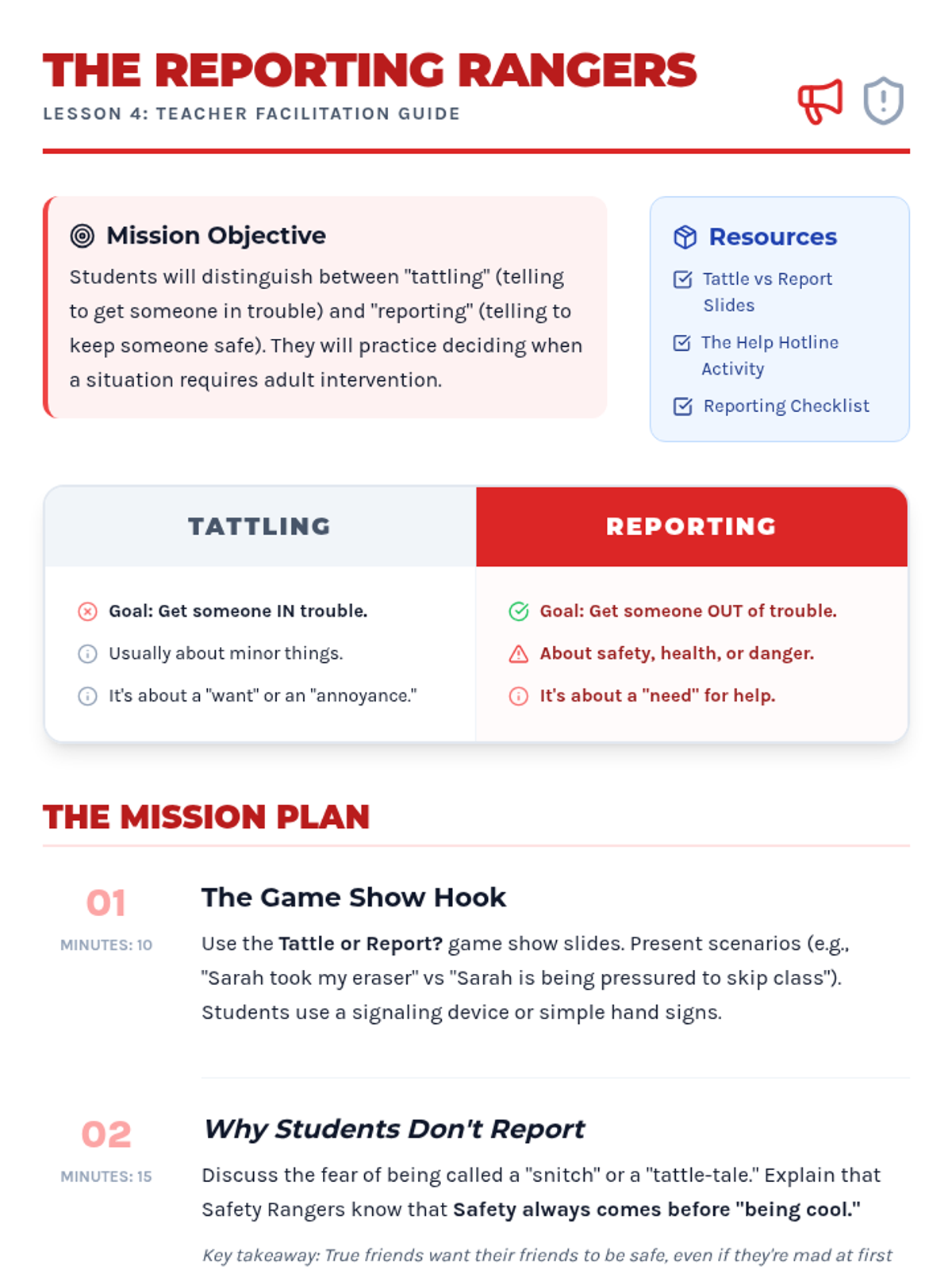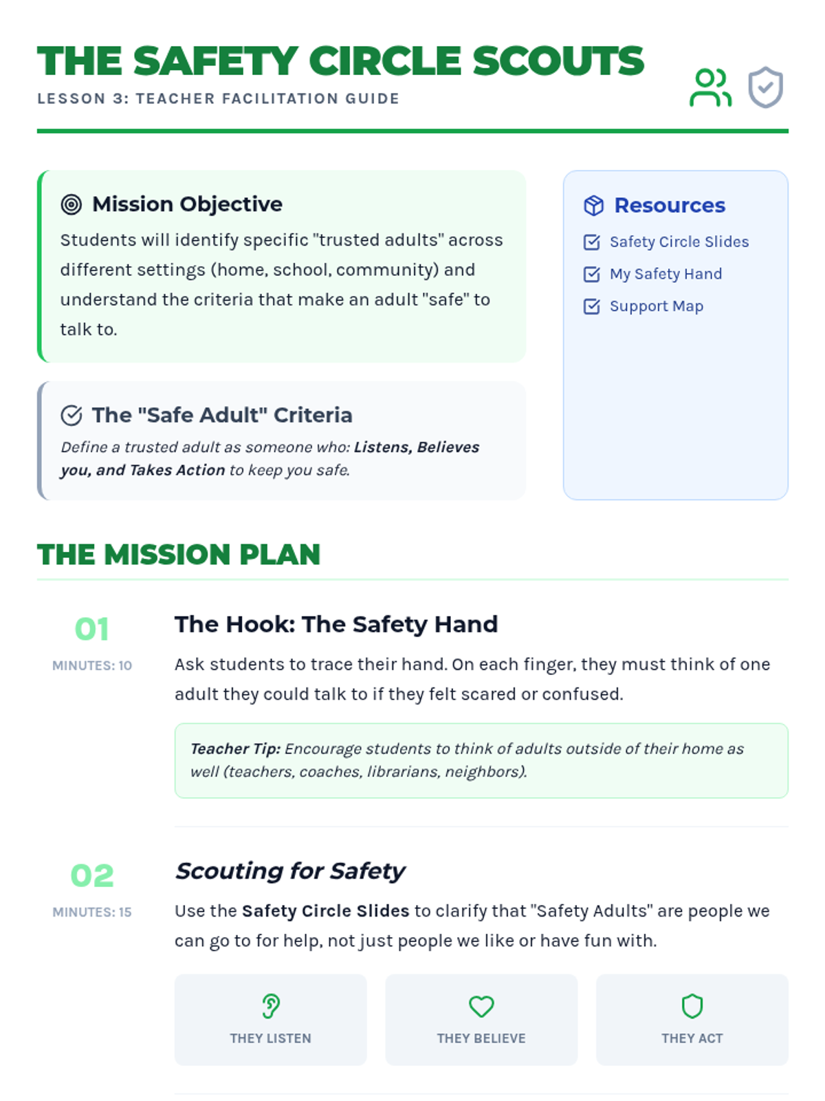 A comprehensive sequence for 4th graders to distinguish between healthy and unhealthy relationships, identify trusted adults, and develop a concrete plan for seeking help in unsafe situations.
