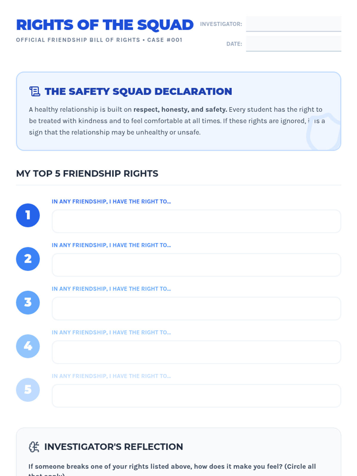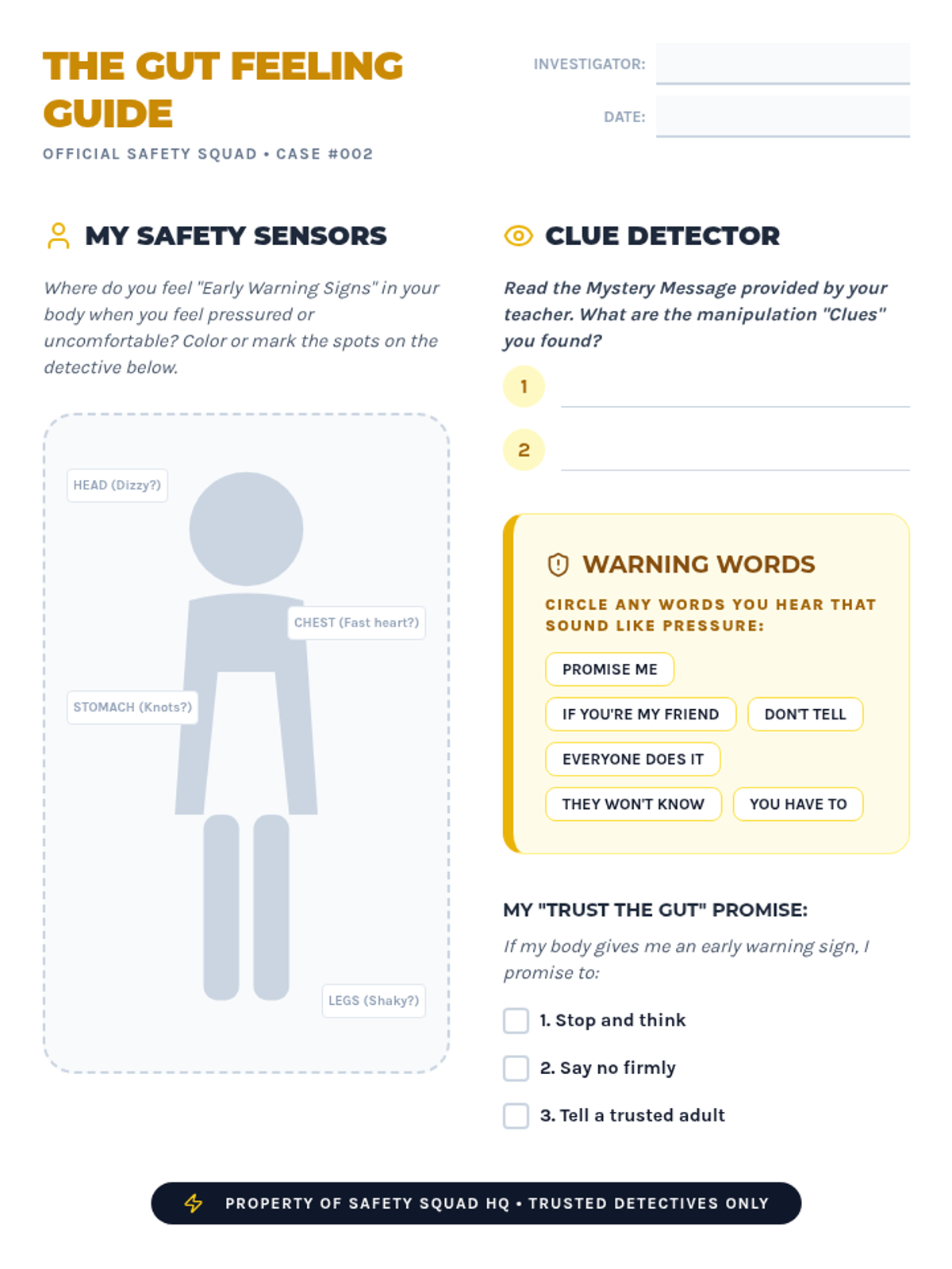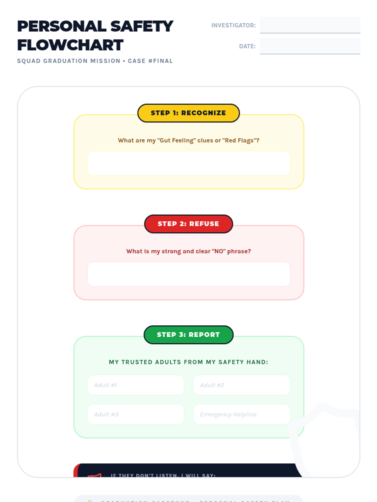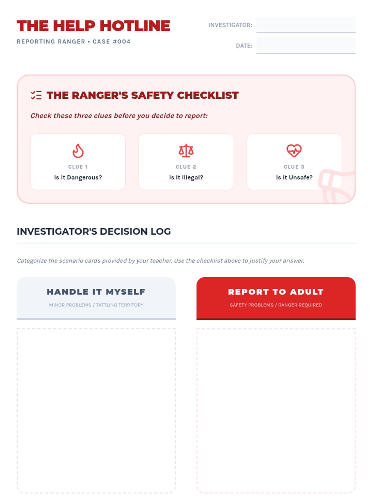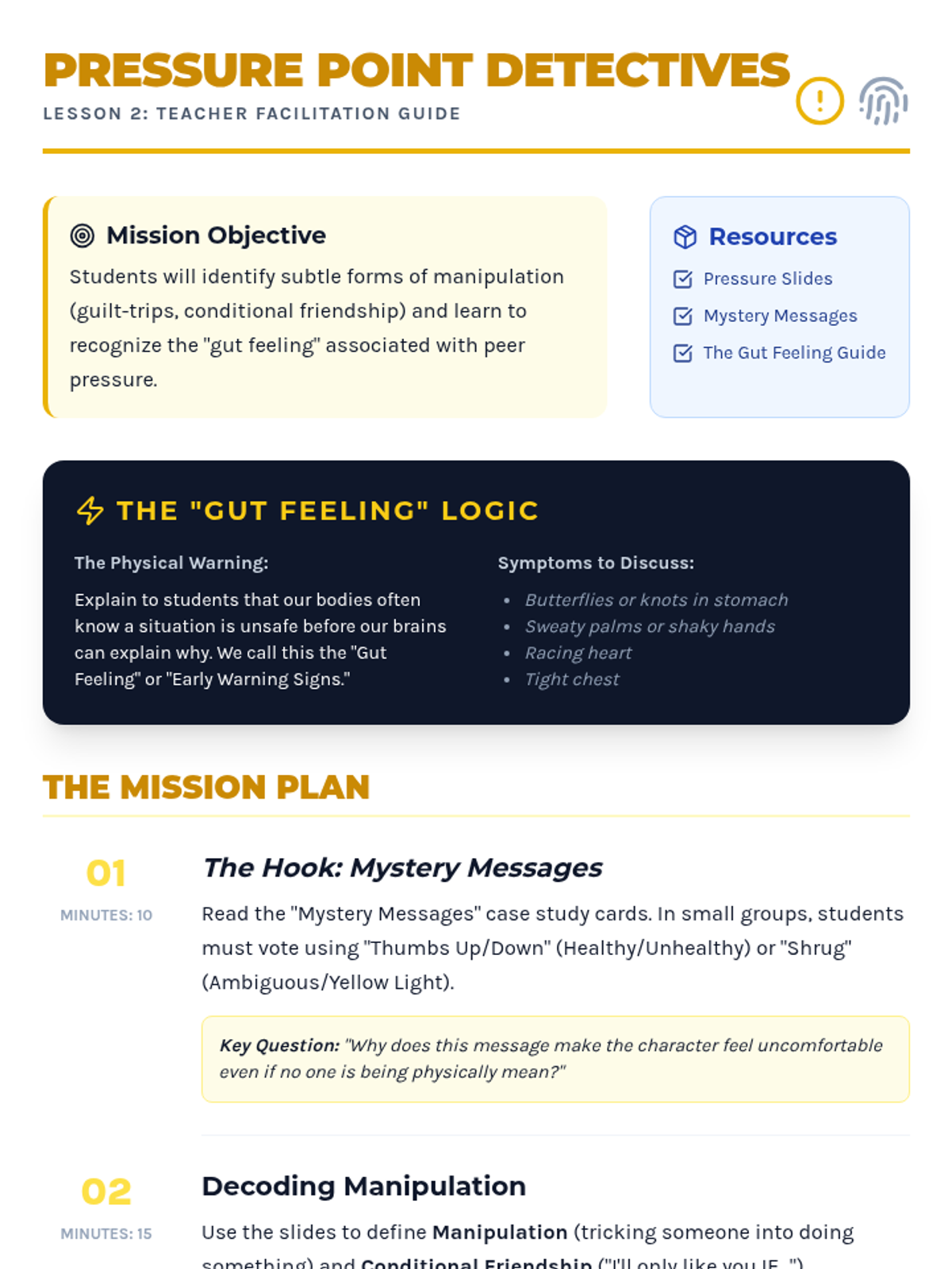 A comprehensive sequence for 4th graders to distinguish between healthy and unhealthy relationships, identify trusted adults, and develop a concrete plan for seeking help in unsafe situations.