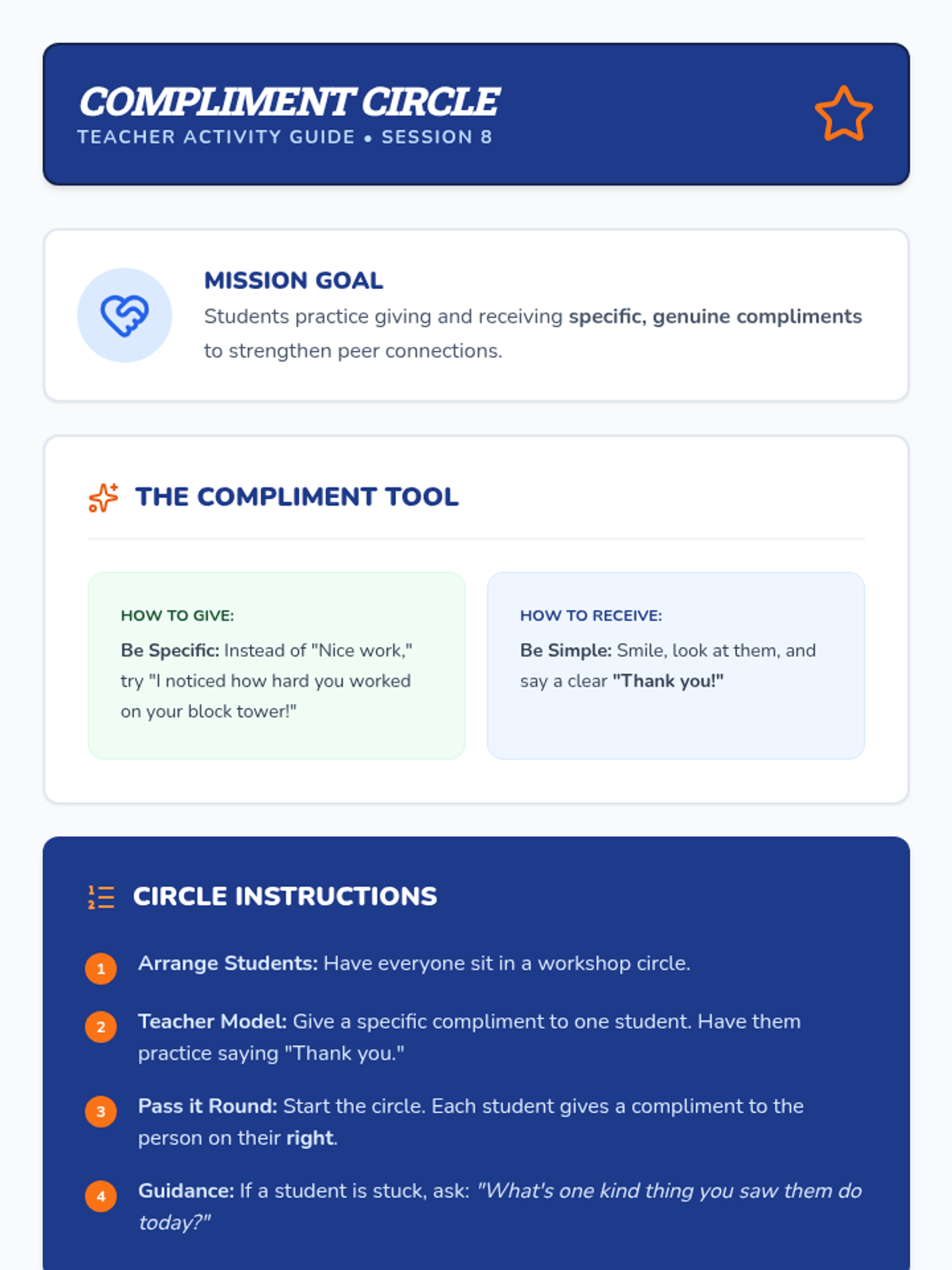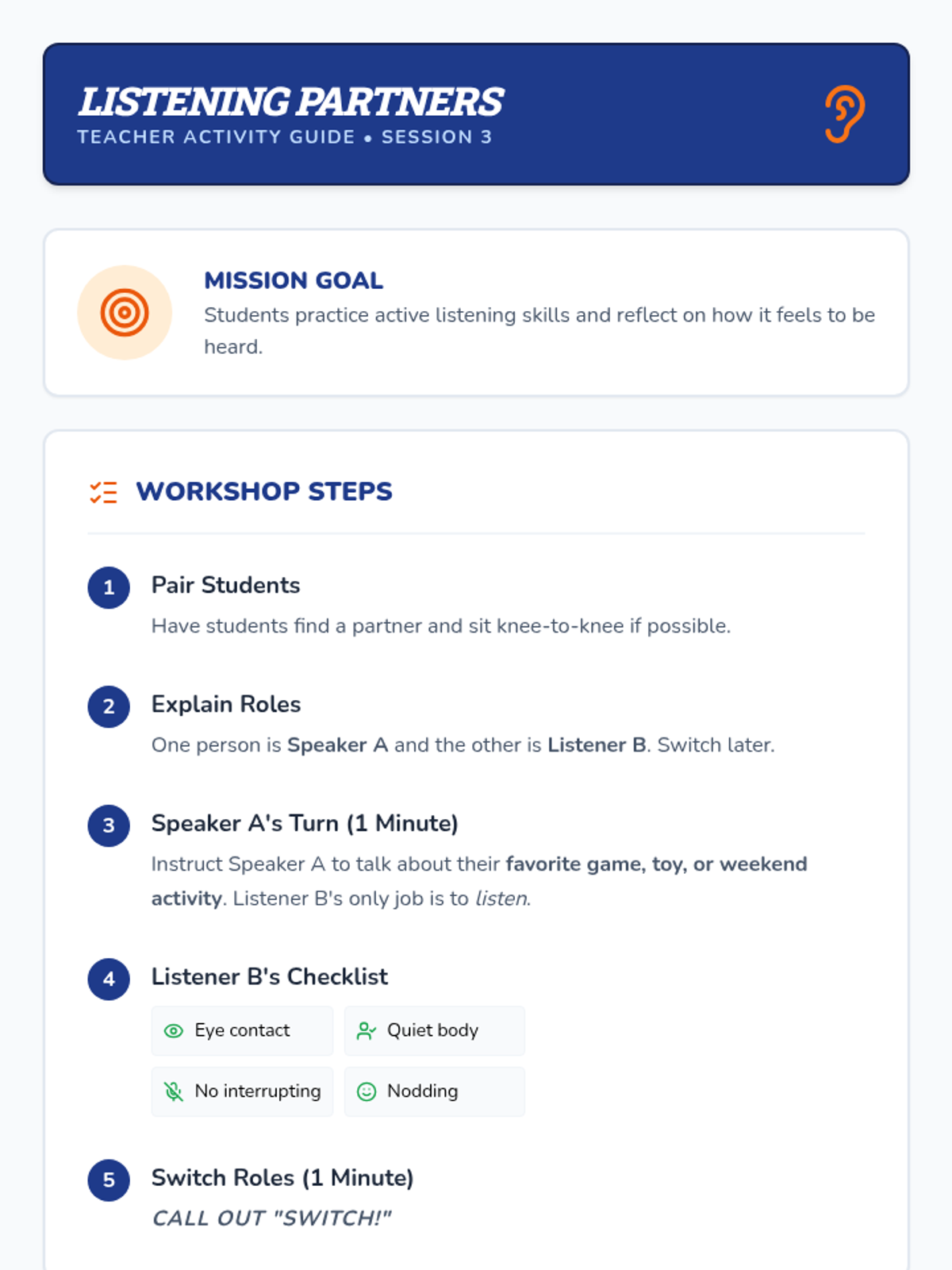 A comprehensive 4-day small group program focusing on essential social-emotional skills including emotional regulation, active listening, friendship building, and conflict resolution.