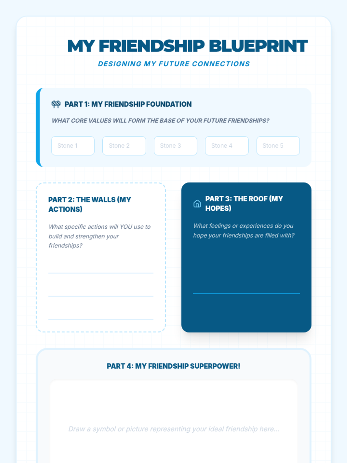 A 5-part journey into building positive mental habits, focusing on gratitude, mindfulness, and kindness through an architectural lens. Students act as 'Joy Architects' to design their own daily well-being routines.