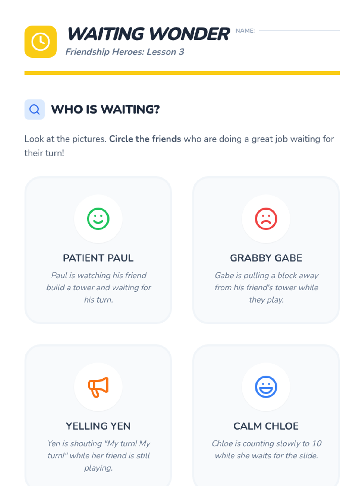 A social-emotional learning unit that progresses from basic identification of kind behaviors to understanding complex social cues and the lasting impact of empathy.