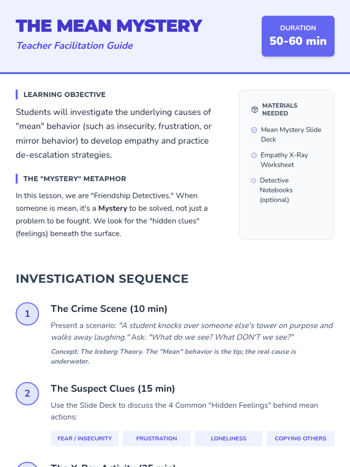 A multi-lesson unit designed to help students build strong friendship skills, practice intentional kindness, and develop empathy by understanding the root causes of unkind behavior.